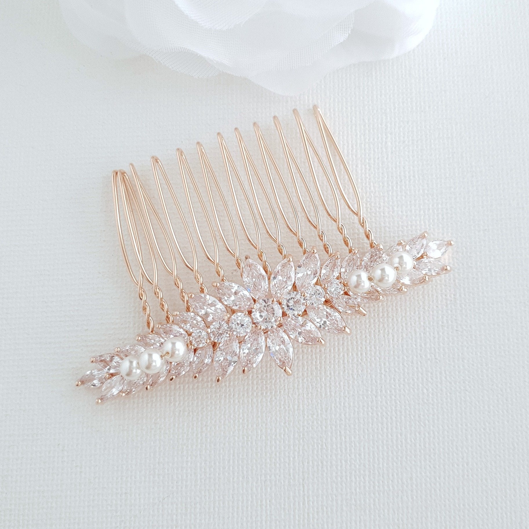 This sleek and elegant marquise bridal hair comb can be used with a veil or on the side. if you like this rose gold hair comb design you can also choose a silver and rose gold finish to match your style. we also offer with or without pearls on the hair comb, if you need pearls, choose white or cream color pearl to match your wedding theme and dress.