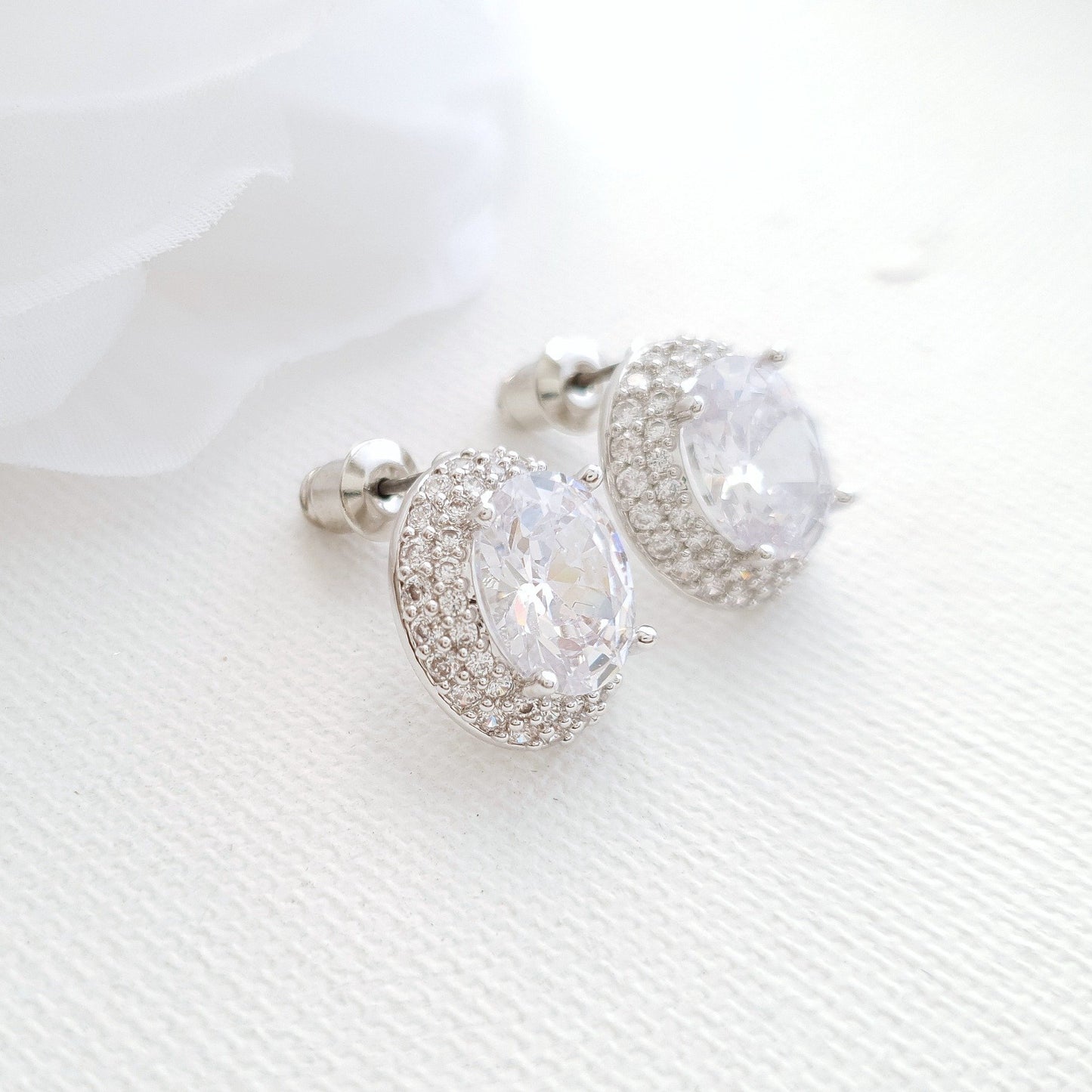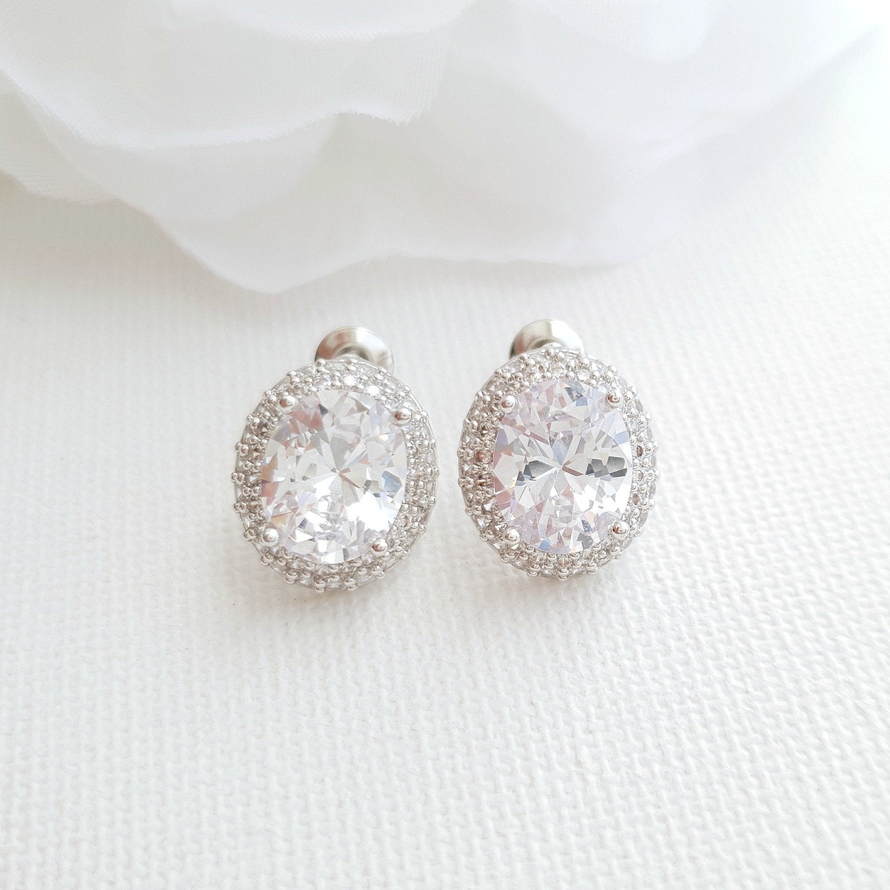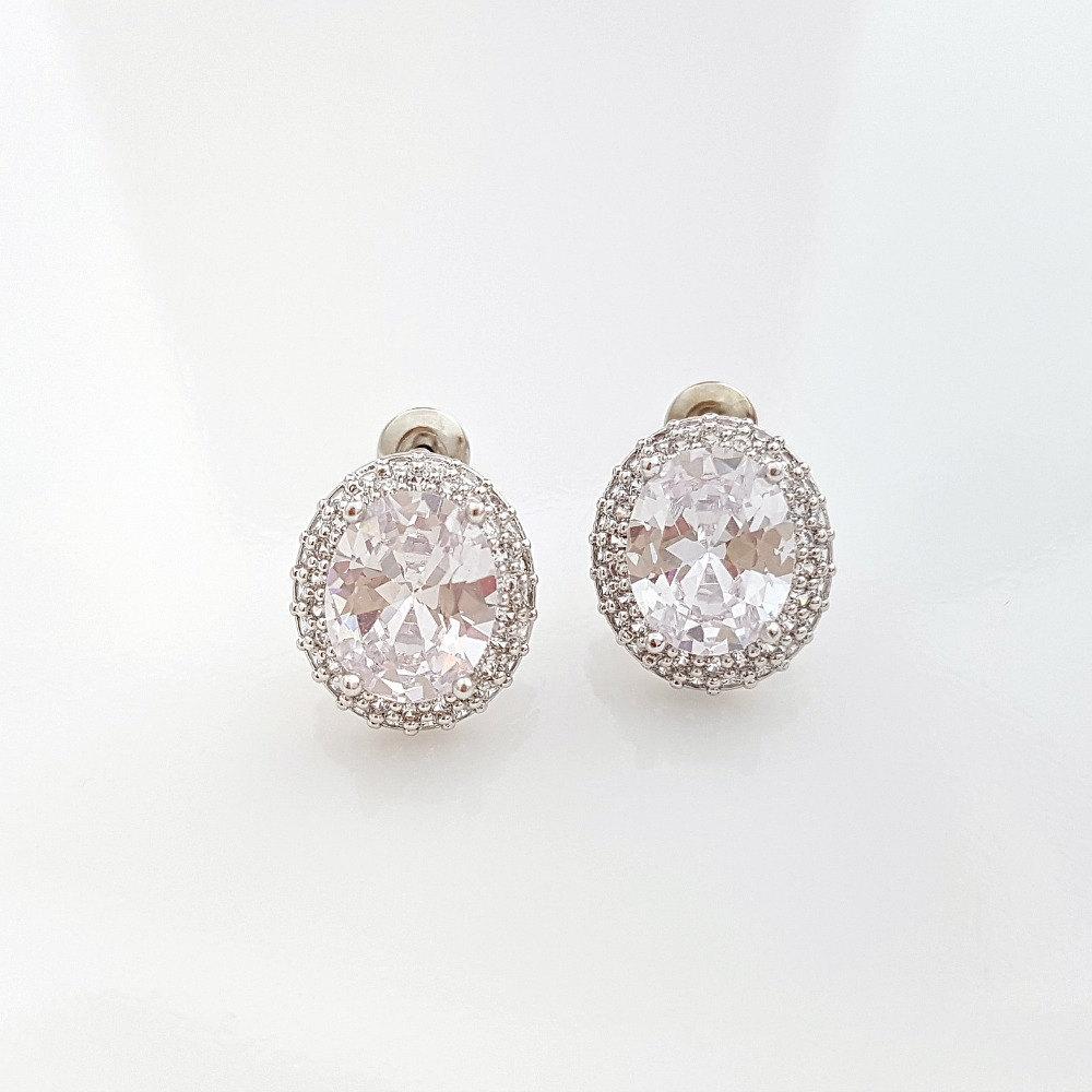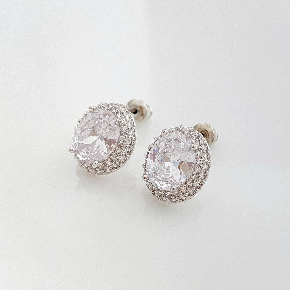 Oval Cubic Zirconia Wedding Stud Earrings- Emily