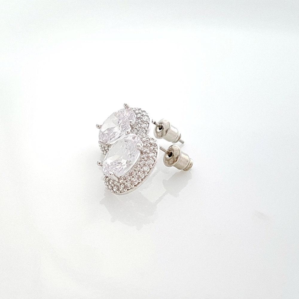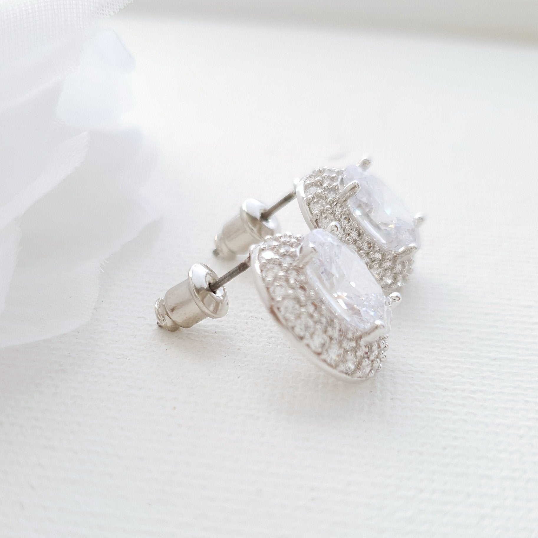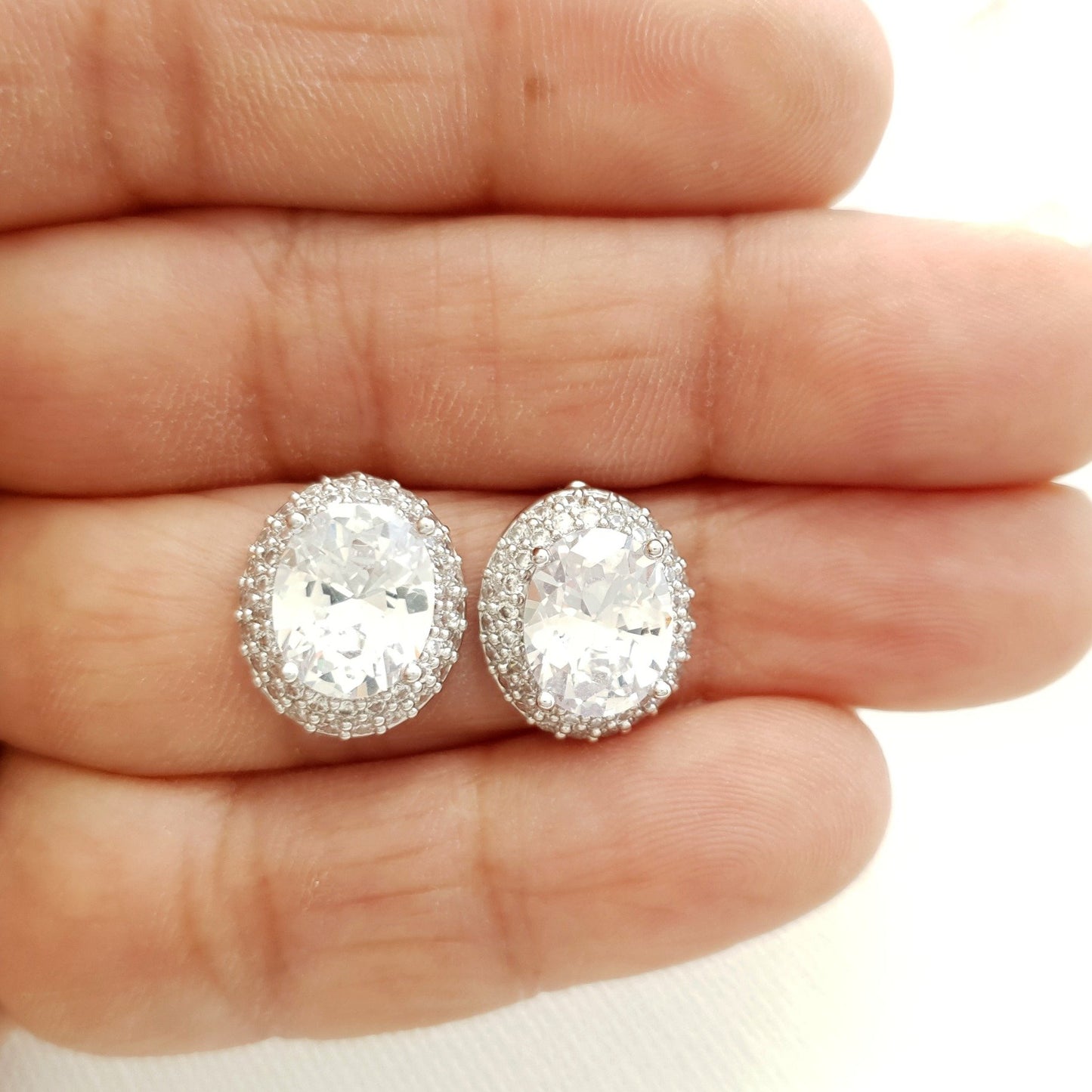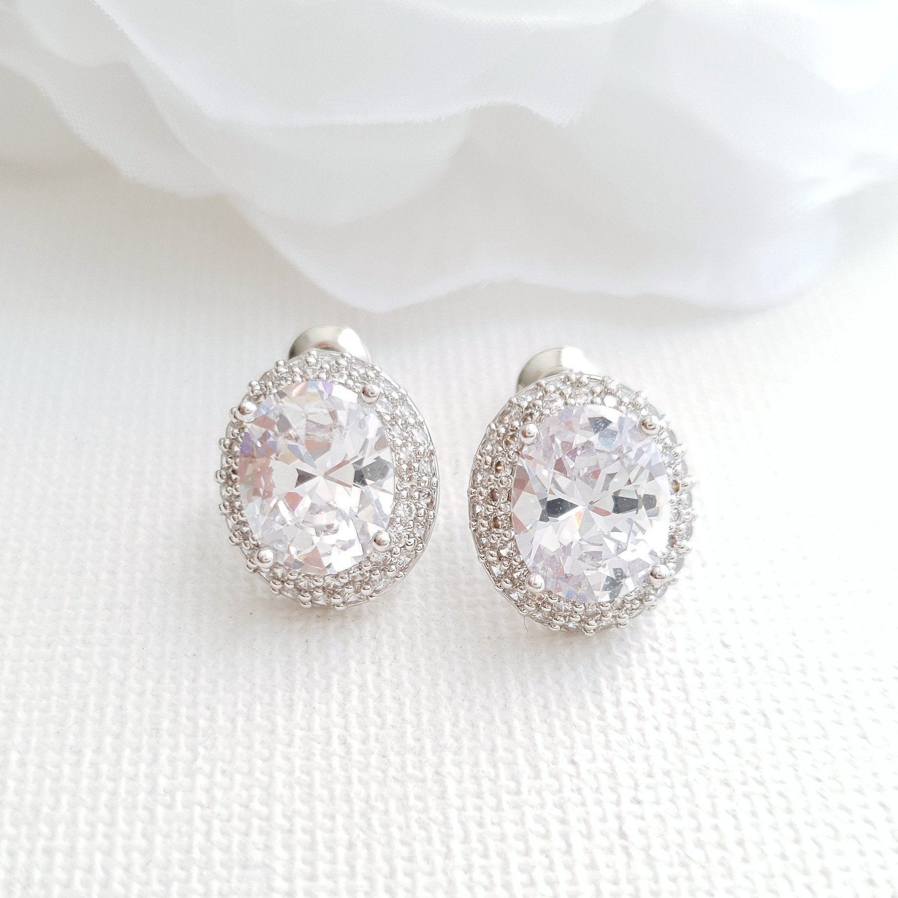 Oval Cubic Zirconia Wedding Stud Earrings- Emily