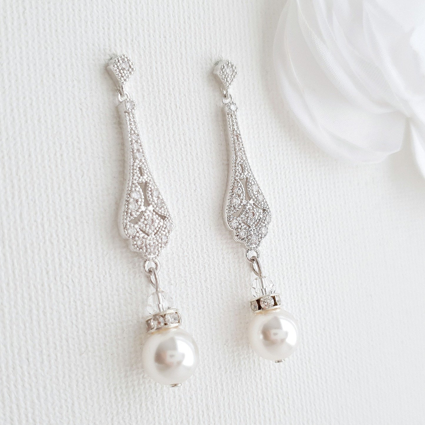 Vintage Style Round Pearl Drop Earrings for Weddings