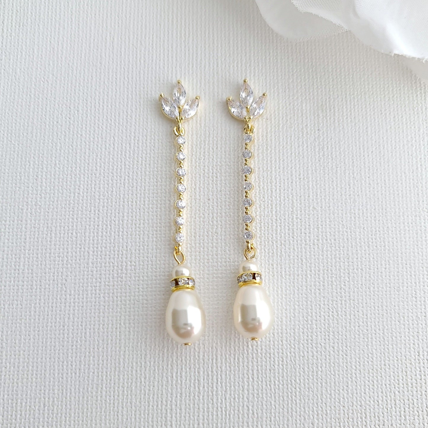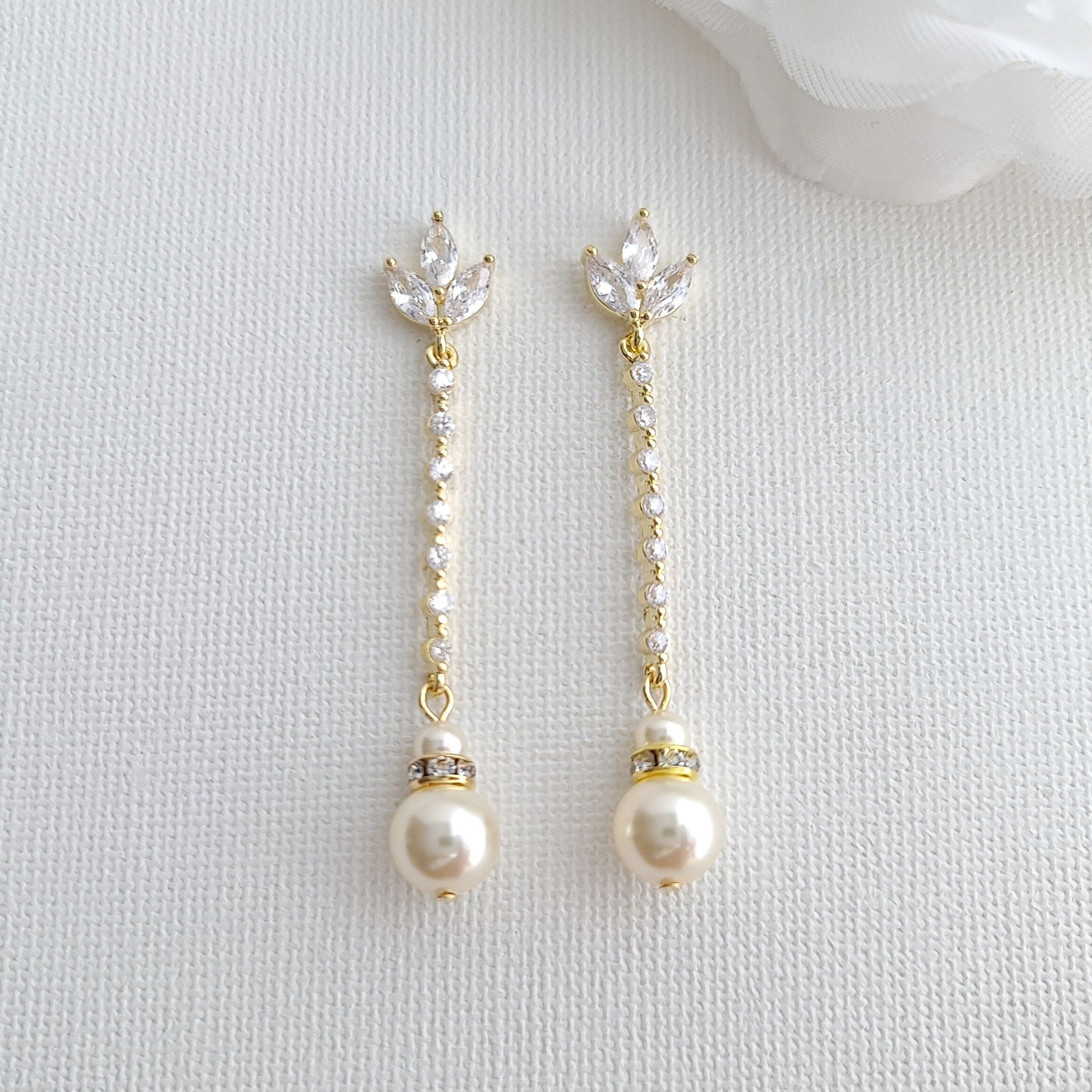Sleek Pearl Drop Gold Earrings for Brides & Bridesmaids
