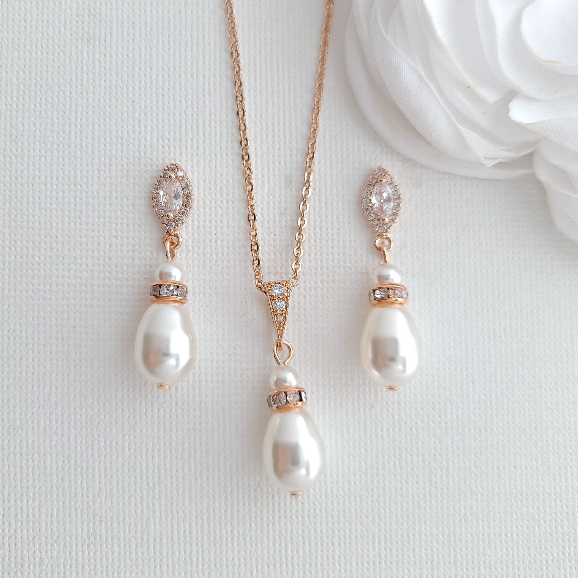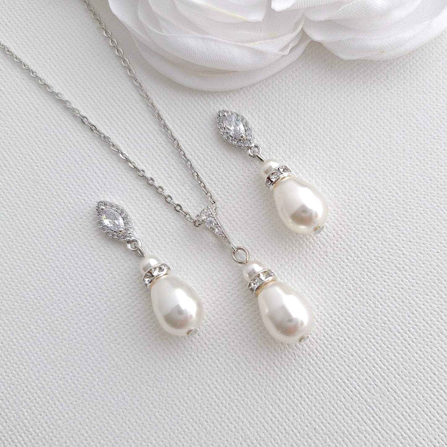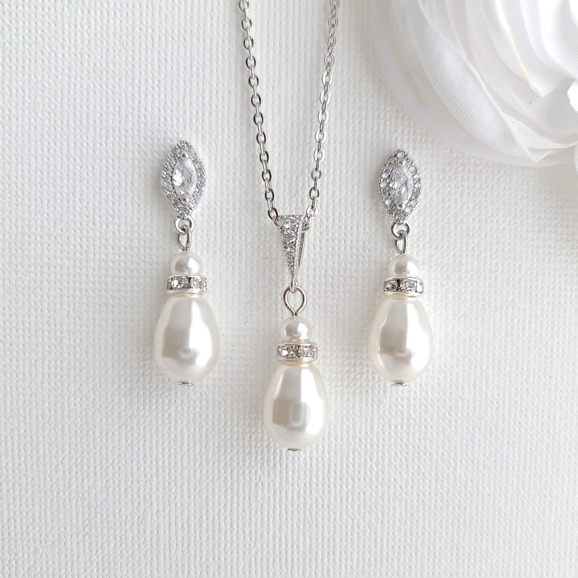 Pearl Jewelry Set with Teardrop Pearl Pendant and Earrings for Brides- Ella