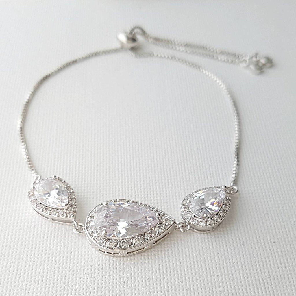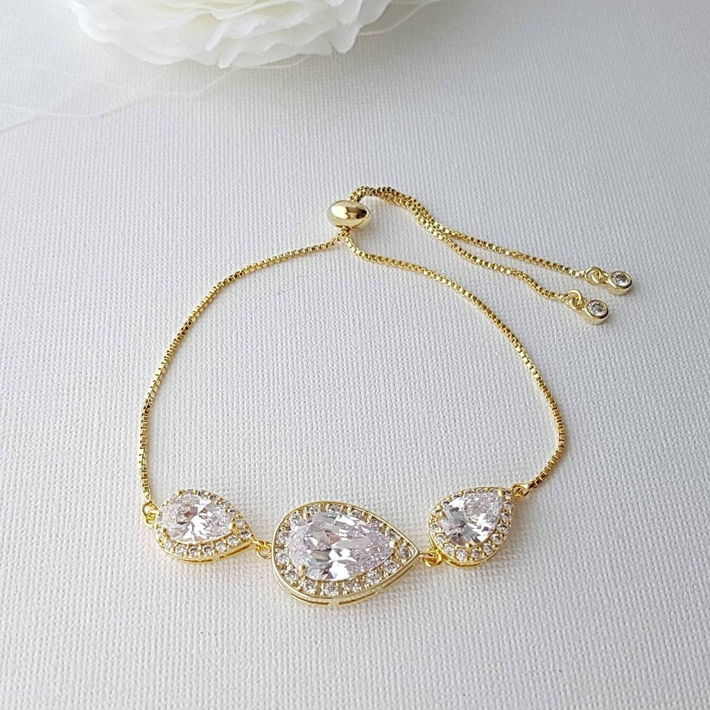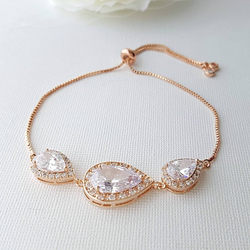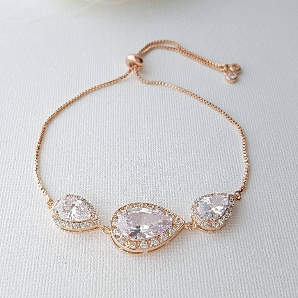 Pink Gold Teardrop Slider Bracelet for Brides Bridesmaids-Evelyn