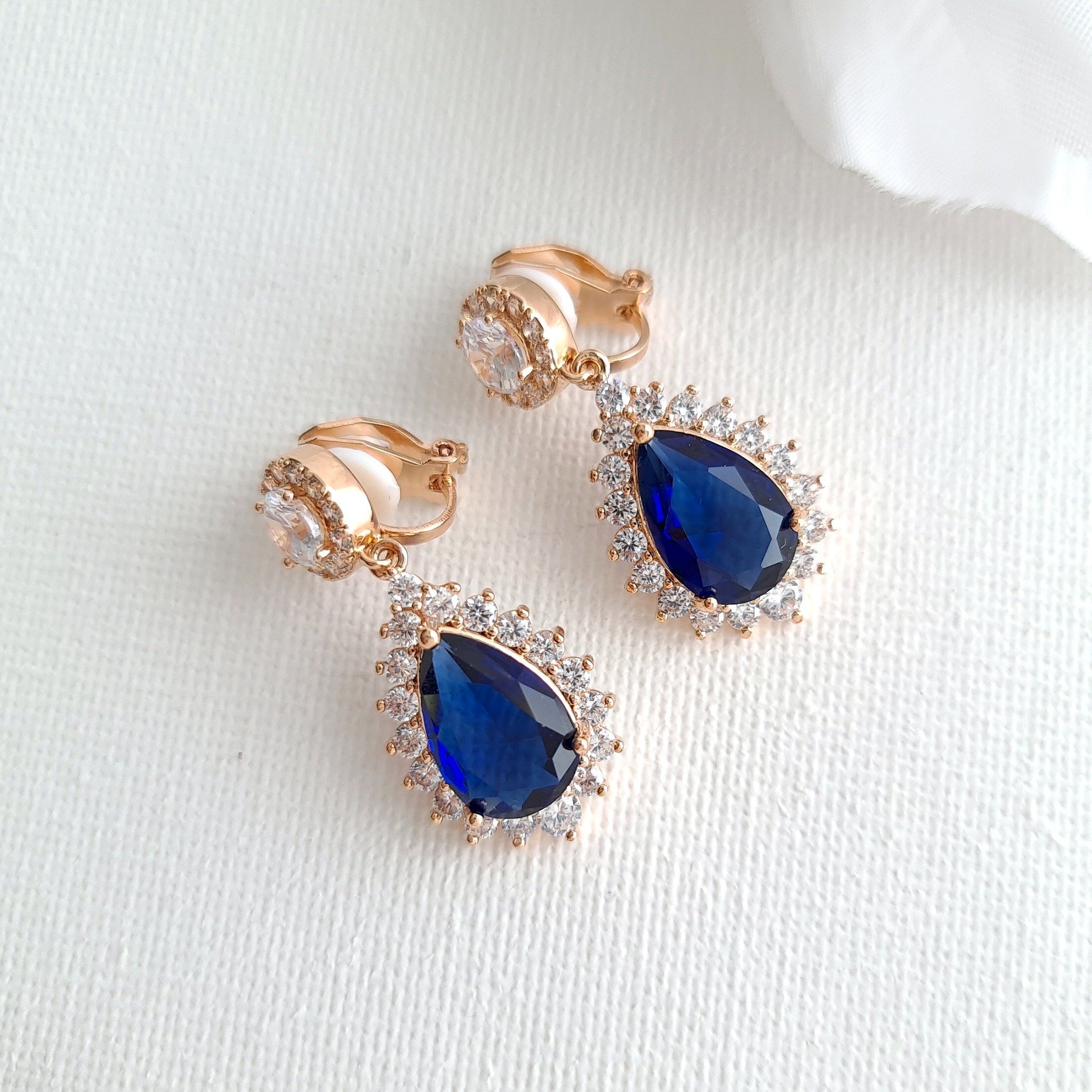 Rose Gold and Blue Wedding Earrings with Clip On's