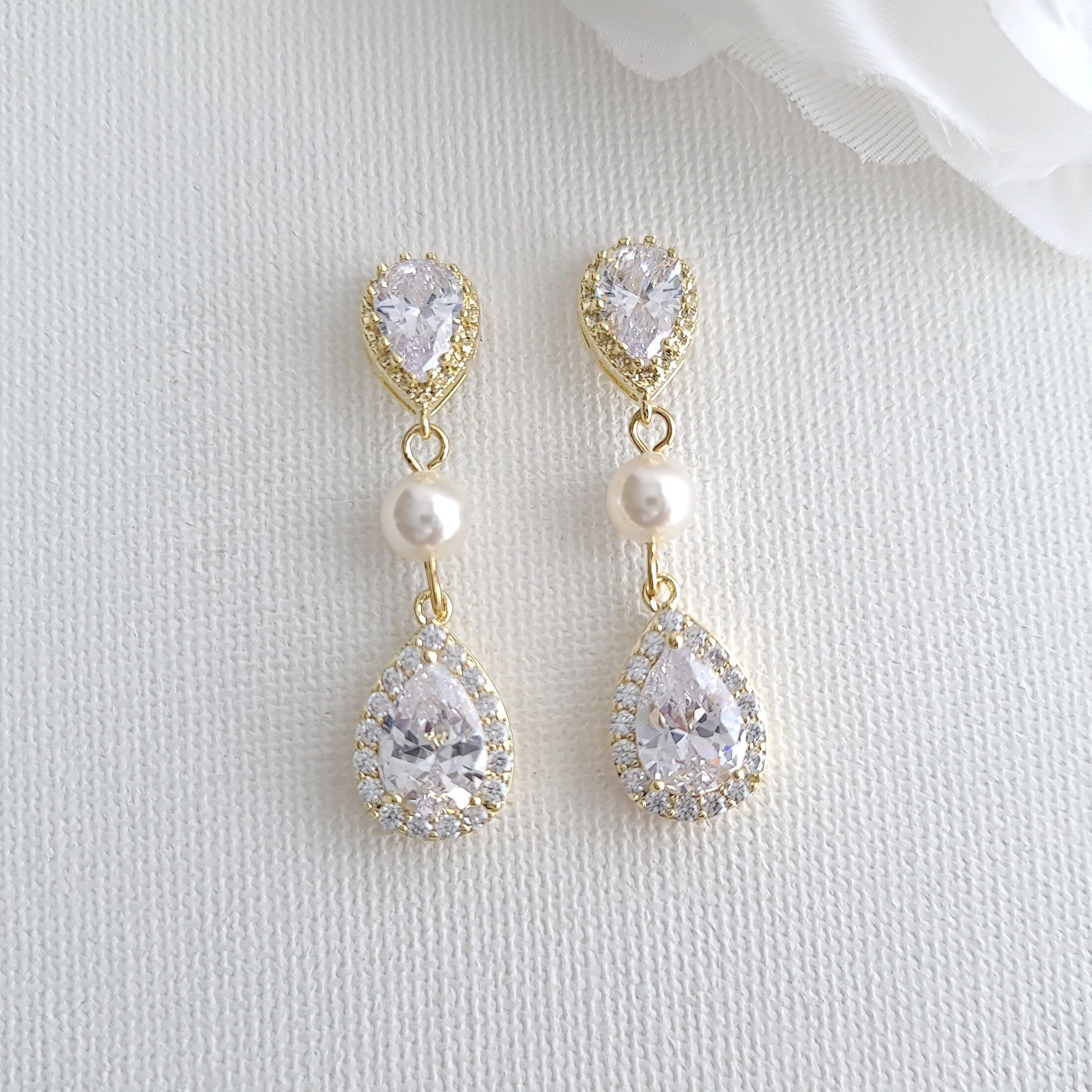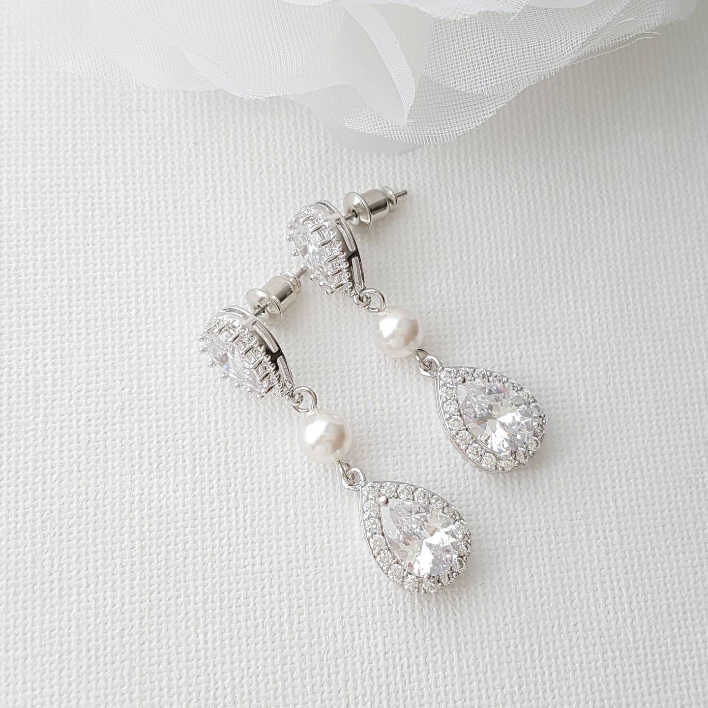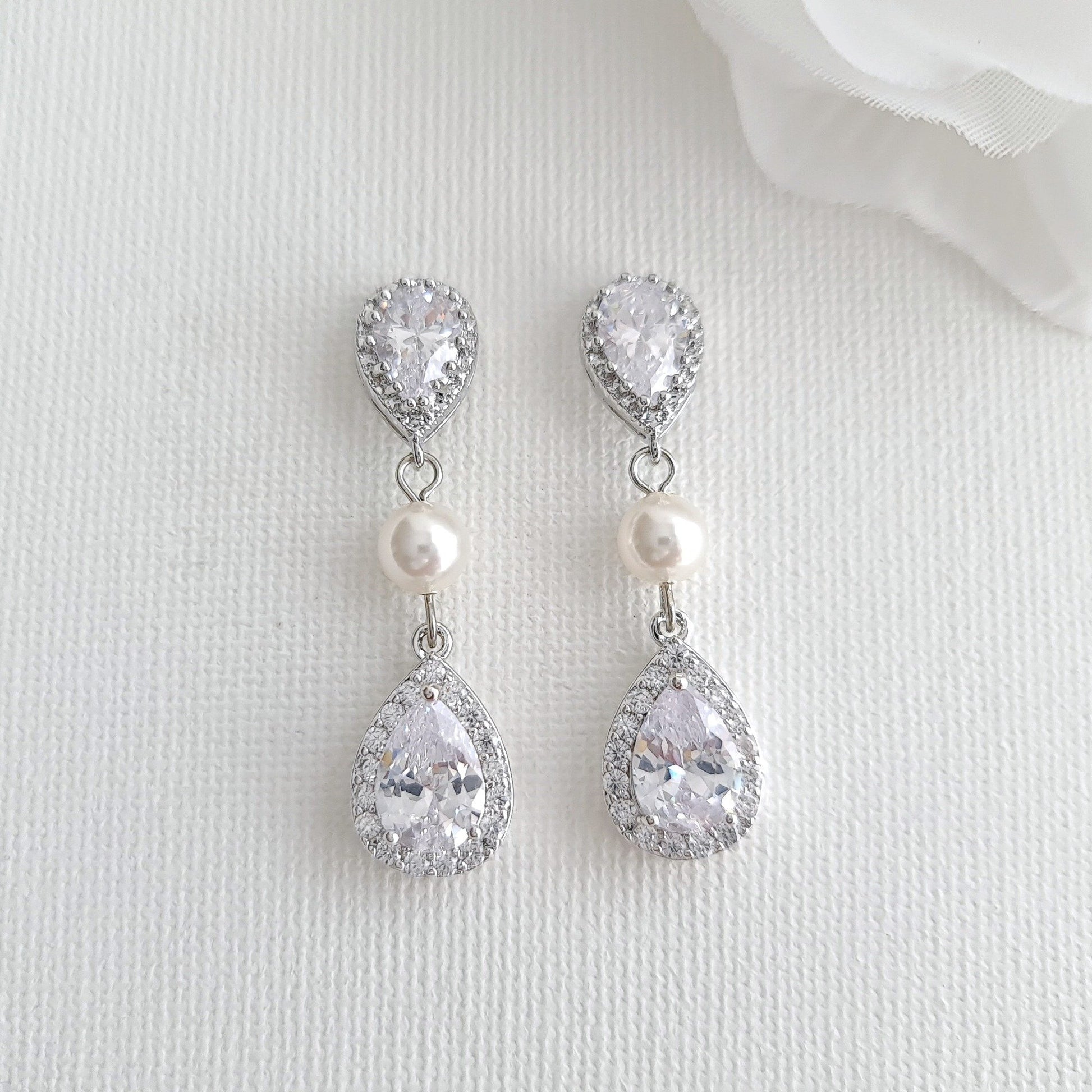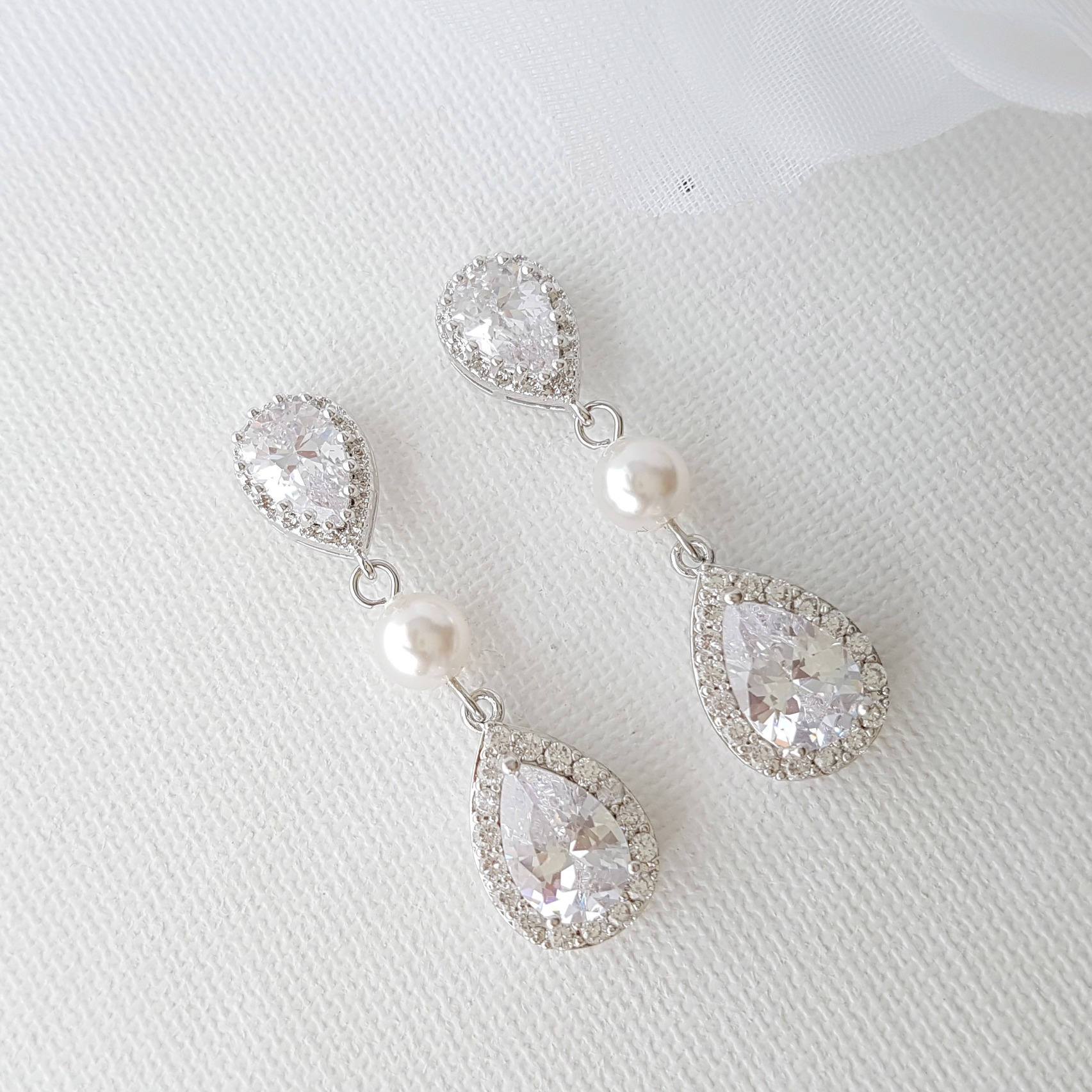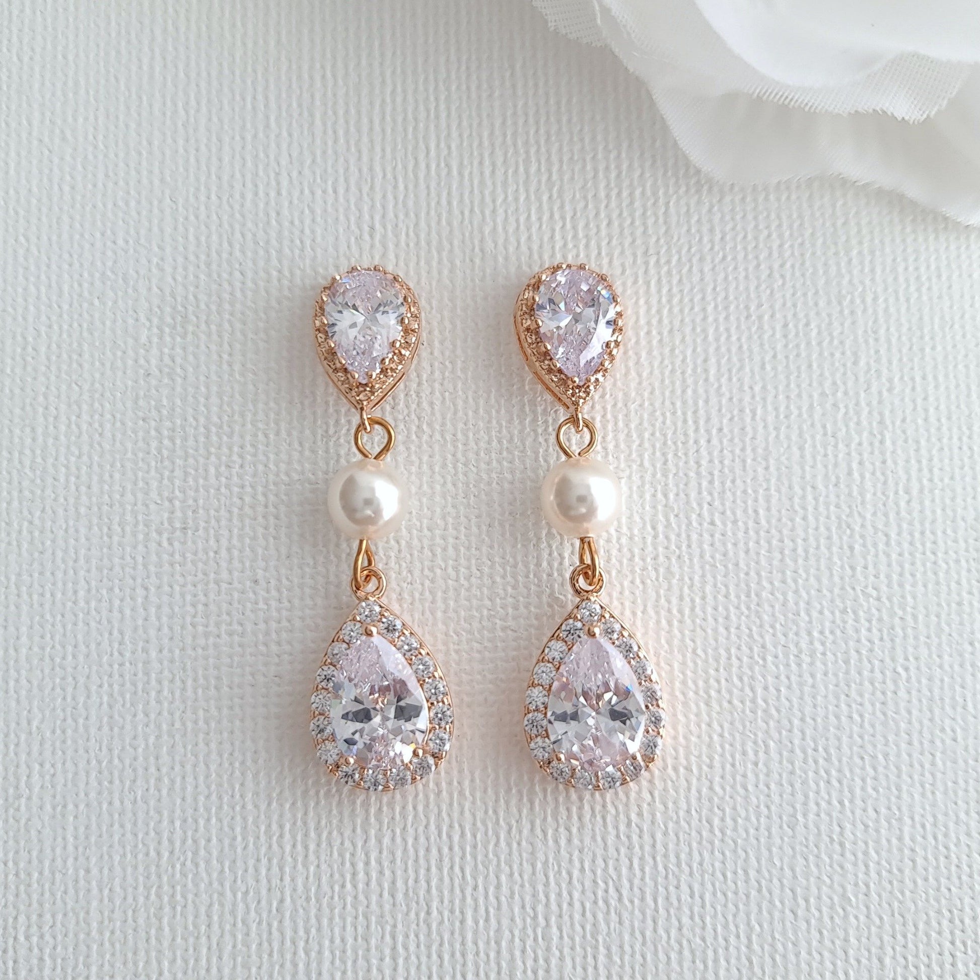 Rose Gold and Pearl Earrings with Teardrop Cubic Zirconia for Brides & Bridesmaids