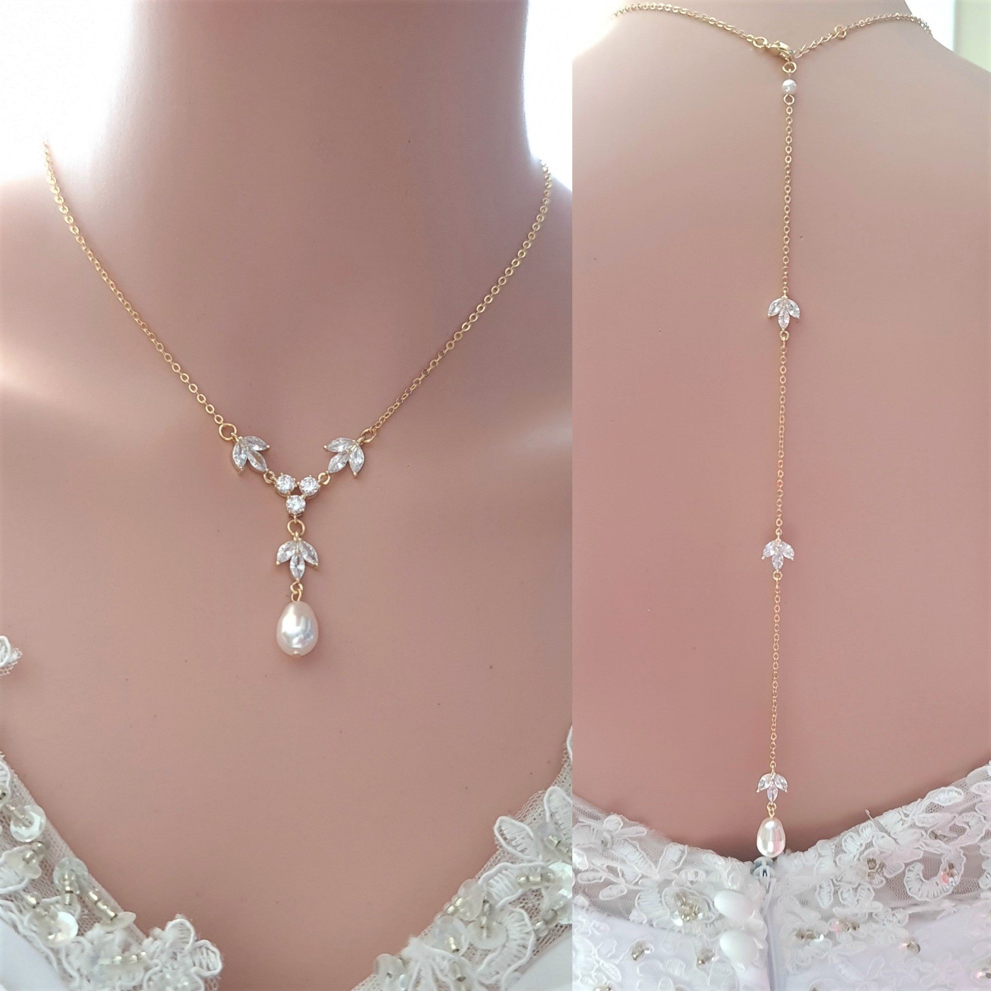 Rose Gold Bridal Backdrop Necklace, Rose Gold Back Necklace, Rose Gold Wedding Jewelry, Crystal Back Necklace, Bridal Jewelry, Leila
