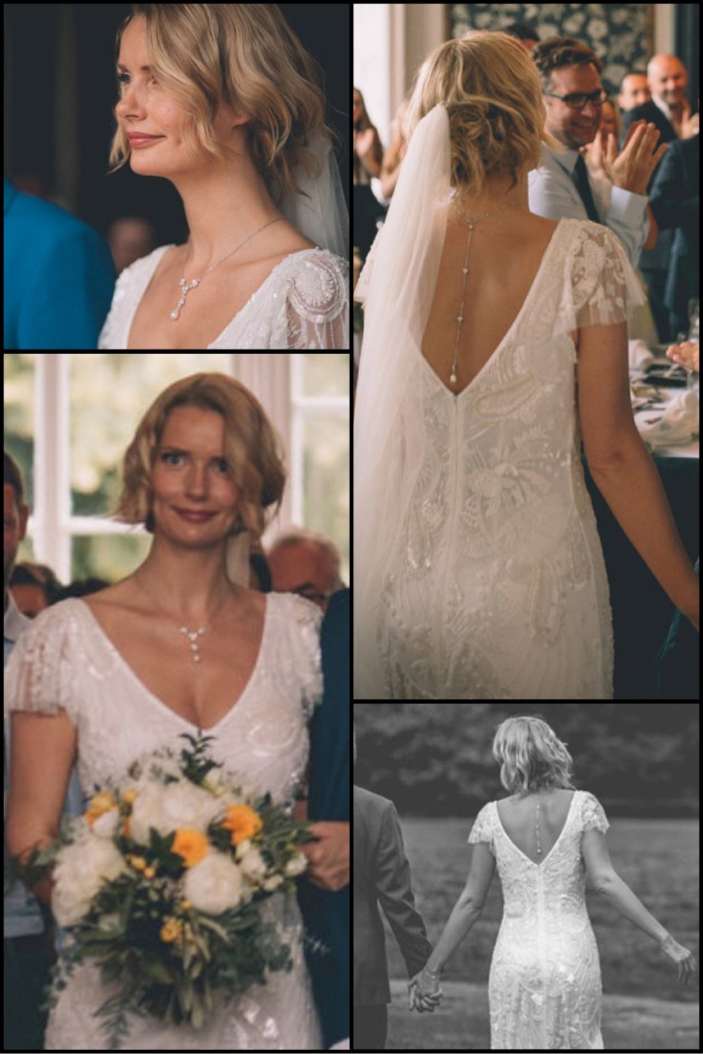 I have designed this lovely necklace to match the rose Gold Leila Earrings. Simple and elegant available with a delicate backdrop. Made using cubic zirconia pendant and the soft sheen of crystal pearls. It is put onto a fine rose gold plated brass chain. Comes with a crystal and pearl backdrop. All material used is rose gold plated brass.