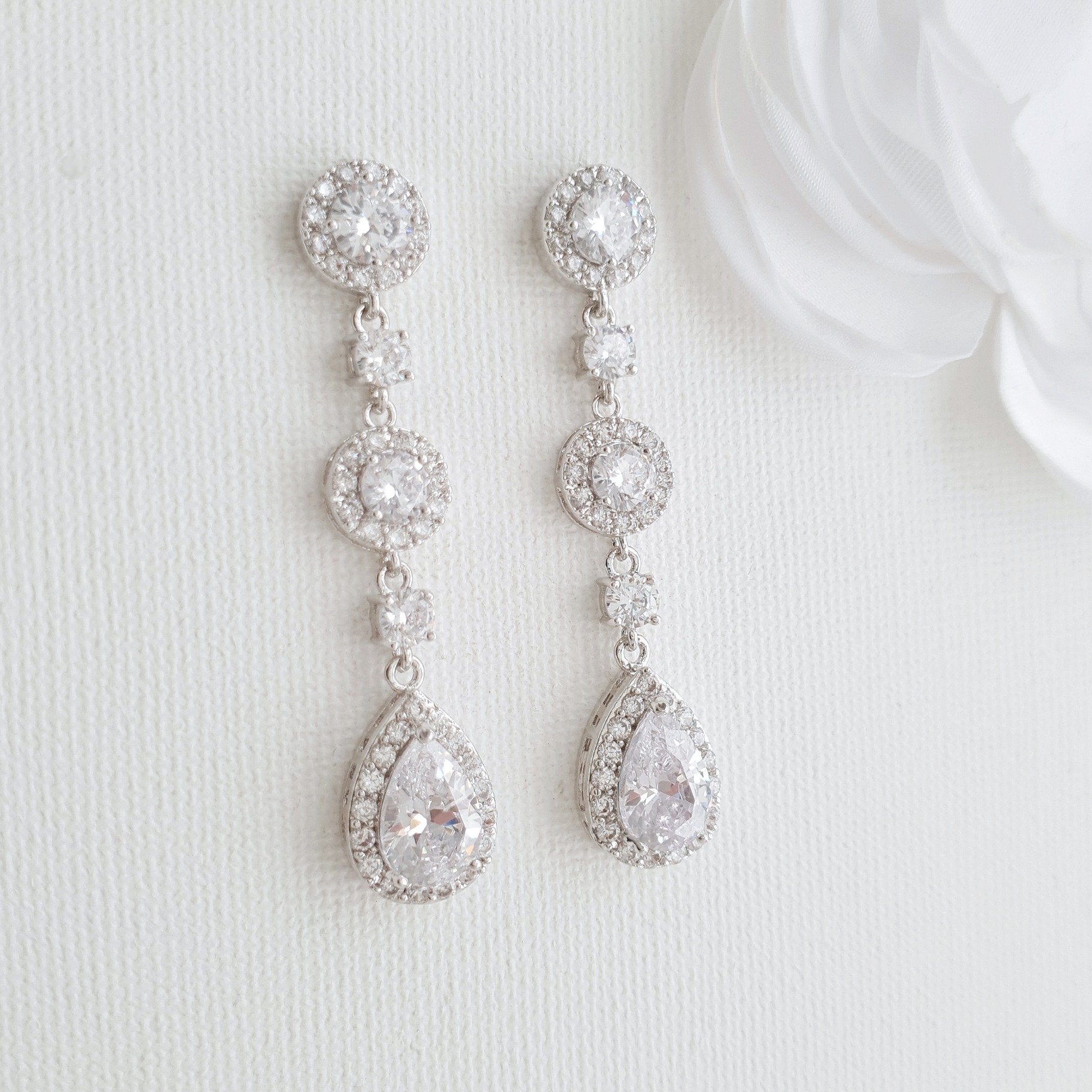 These Reagan rose gold Clip-on earrings are for brides and bridesmaids with non-pierced ears. Reagan clip-on earrings design is available in three finishes of silver, gold and rose gold.The clip on rose gold bridal earrings are slim and long and are a great addition to your rose gold wedding jewelry.