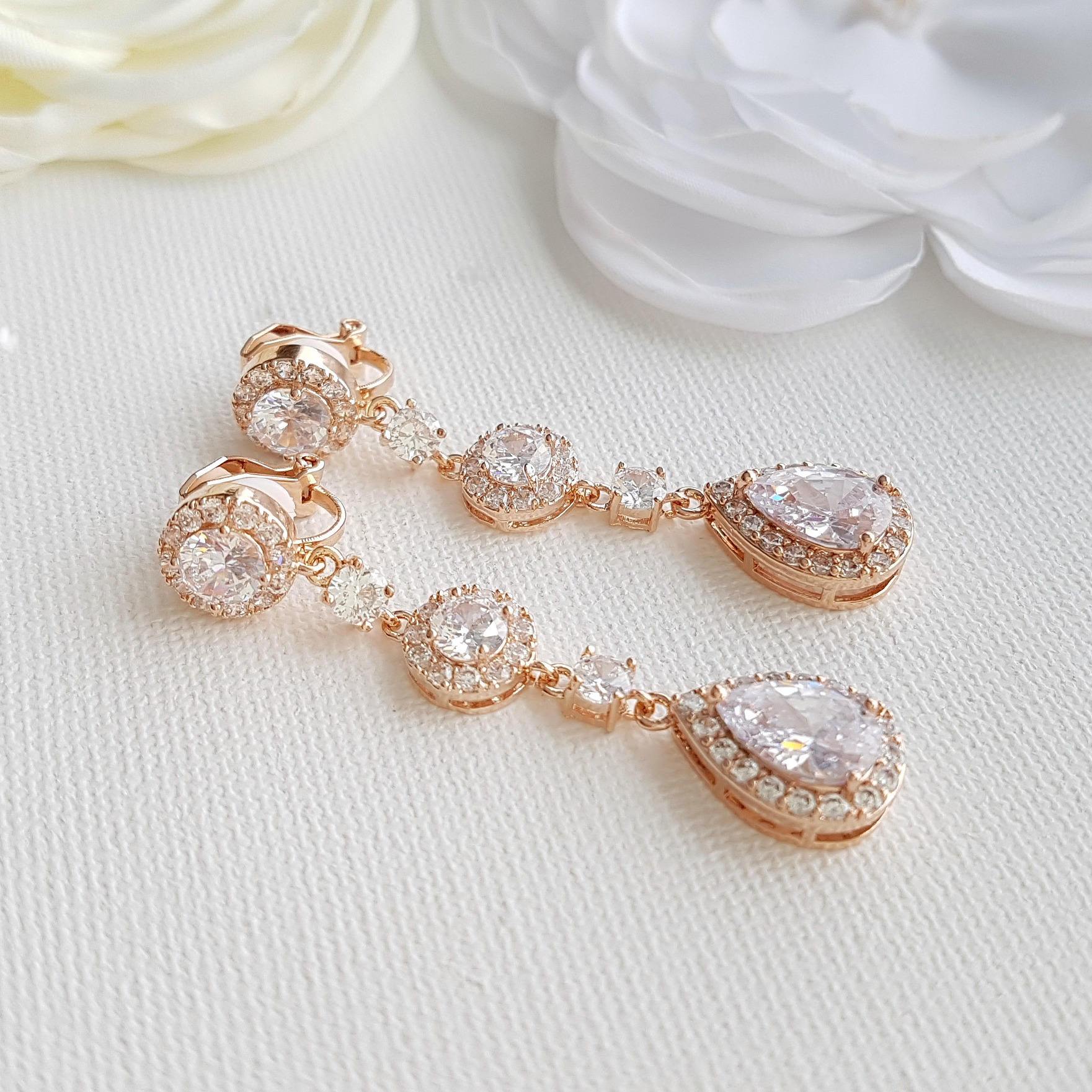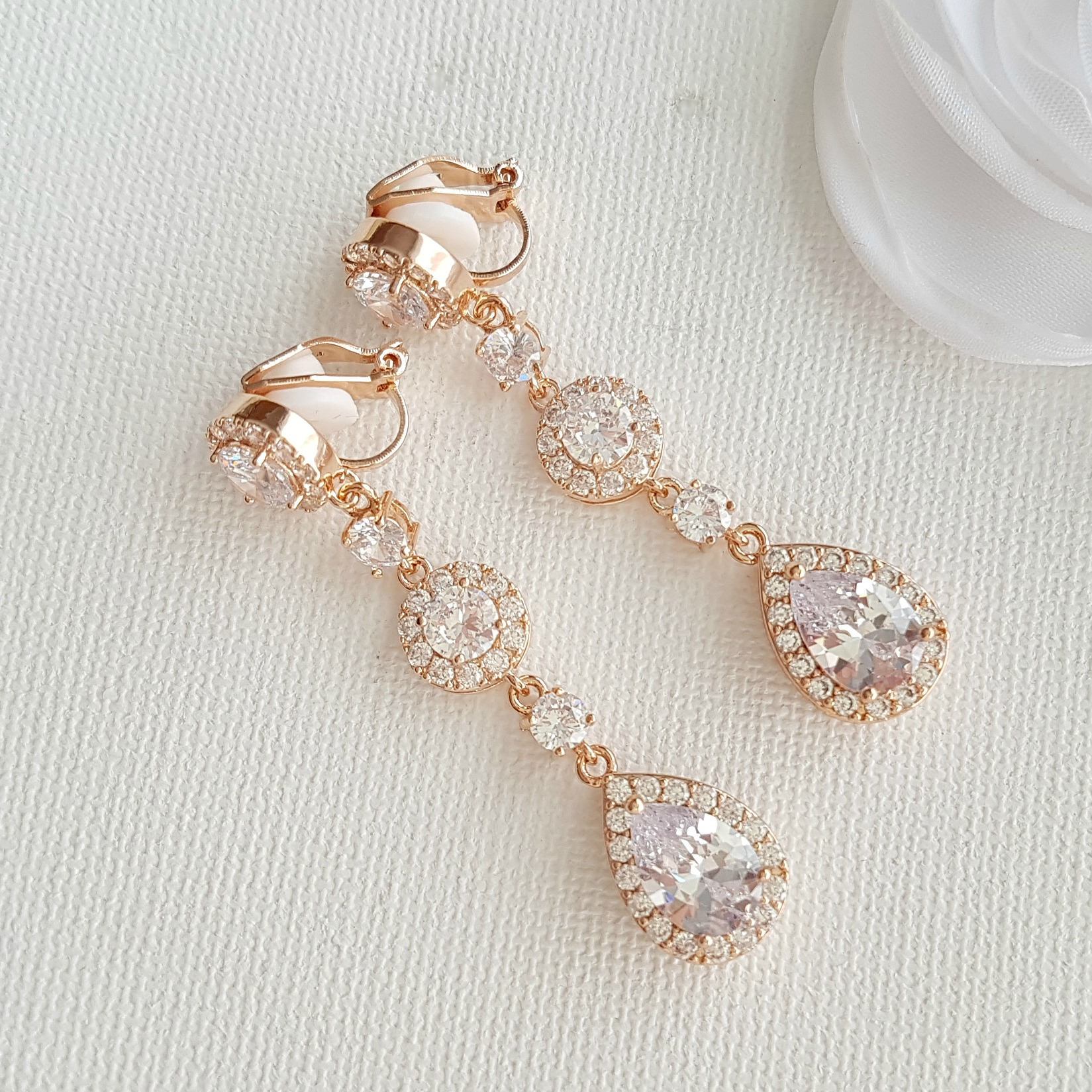 Rose Gold Clip On Bridal Earrings for Non-Pierced Ears
