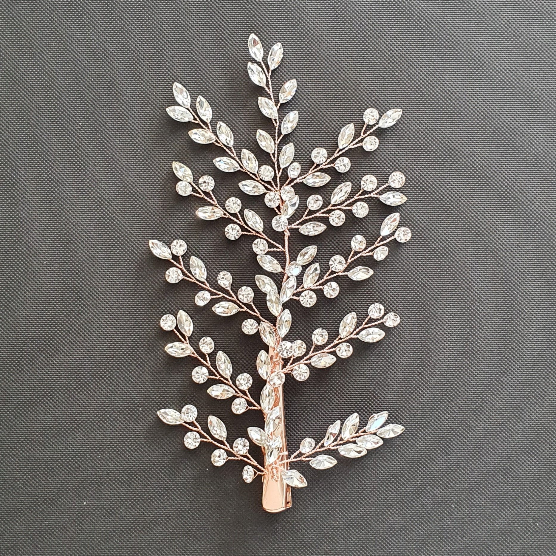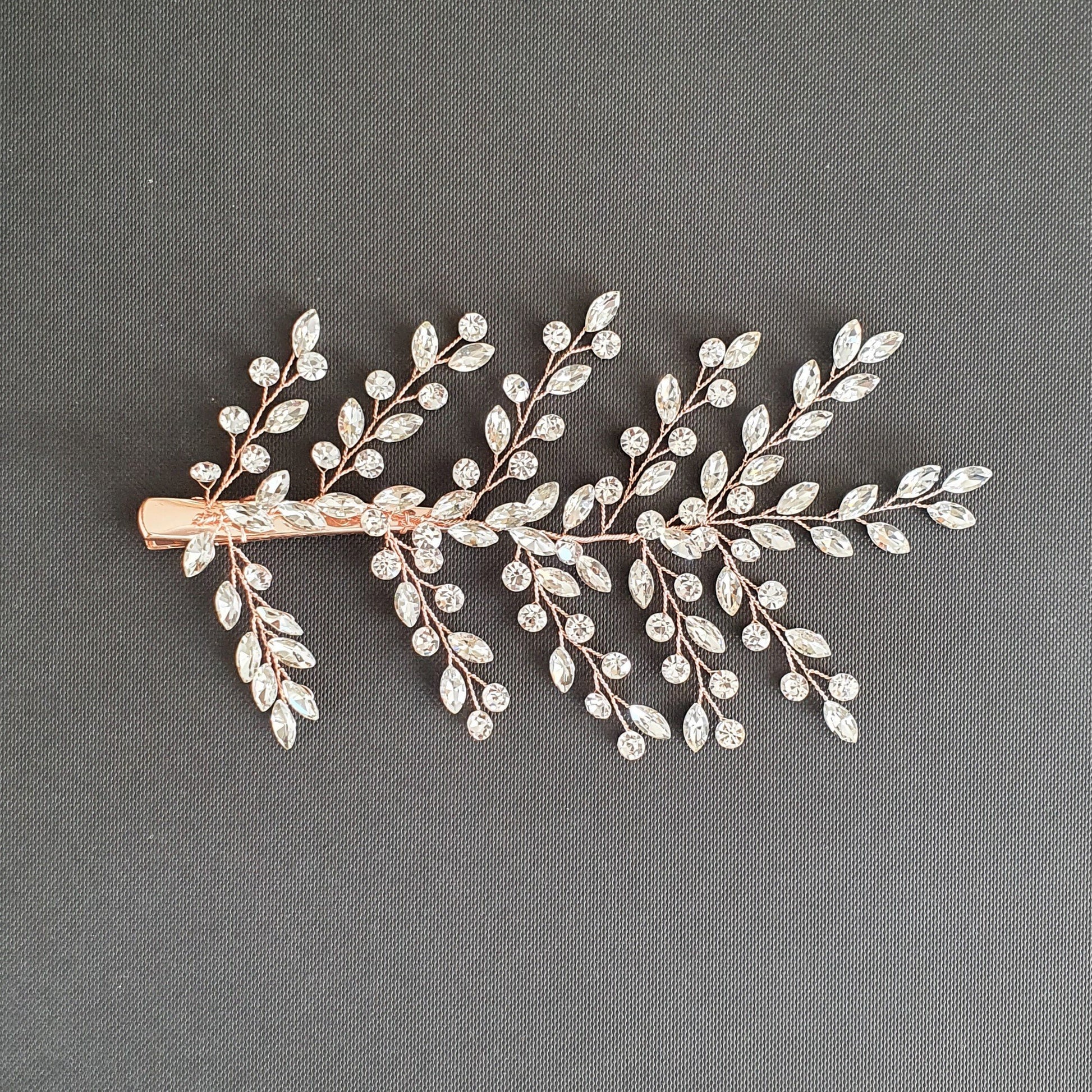 Rose Gold Crystal Hair Clip for Brides-Fern