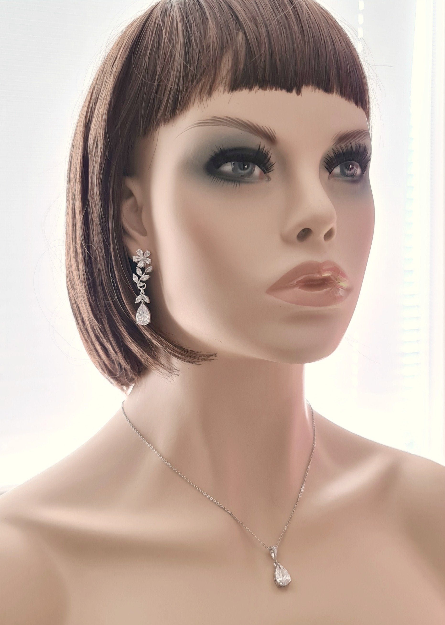This beautiful Daisy flower earring is available with a matching flower pattern bracelet,  hair comb, and necklace to add to your complete bridal jewelry set.