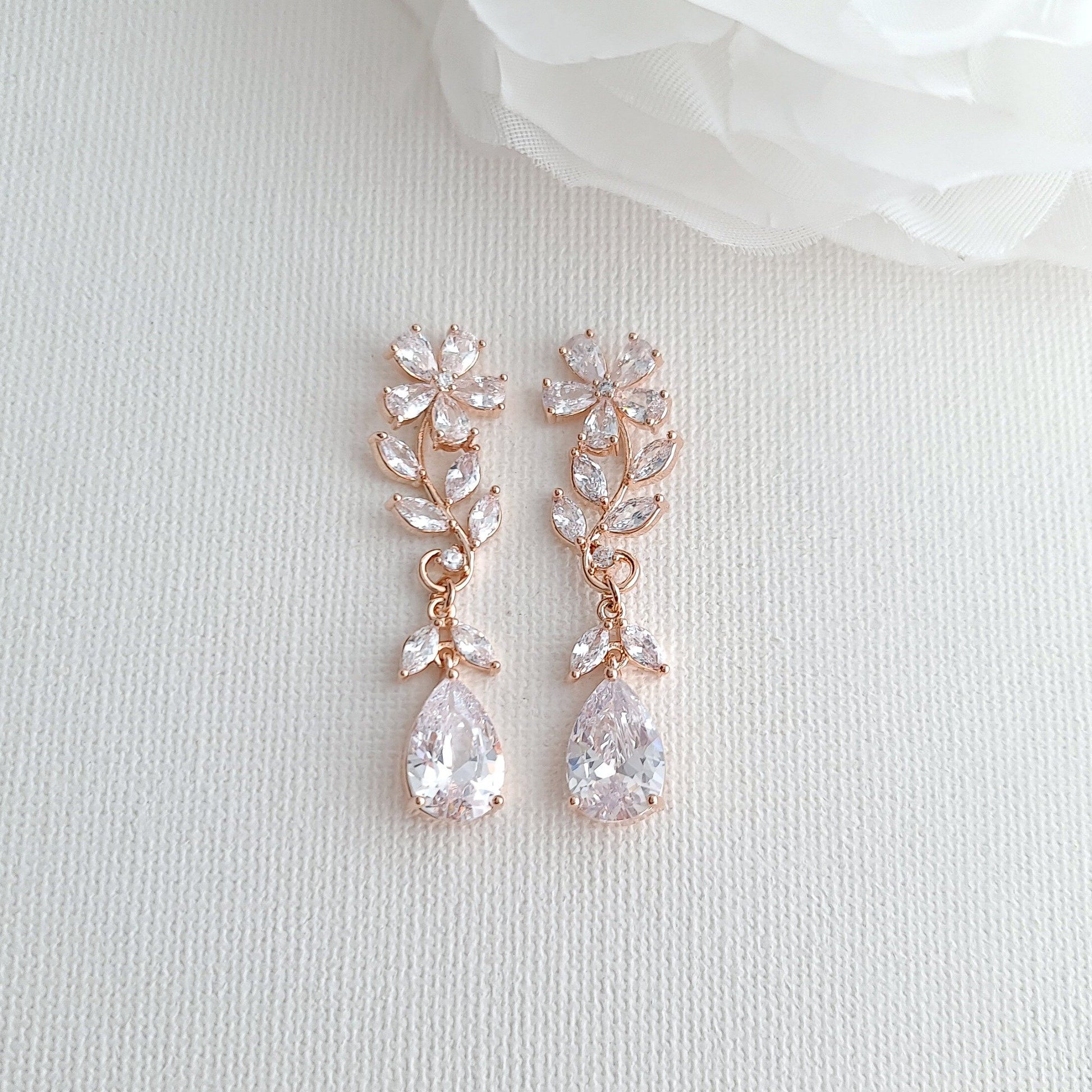 Cubic Zirconia & Rose Gold Flower Earrings for Weddings