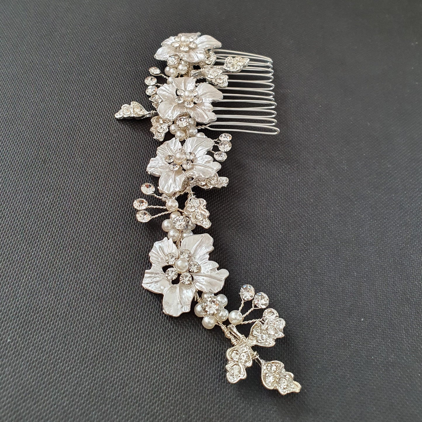 This flower and leaf hair comb is also available in gold and silver to suit your style. Lovely hair comb for short or long bridal hair.
