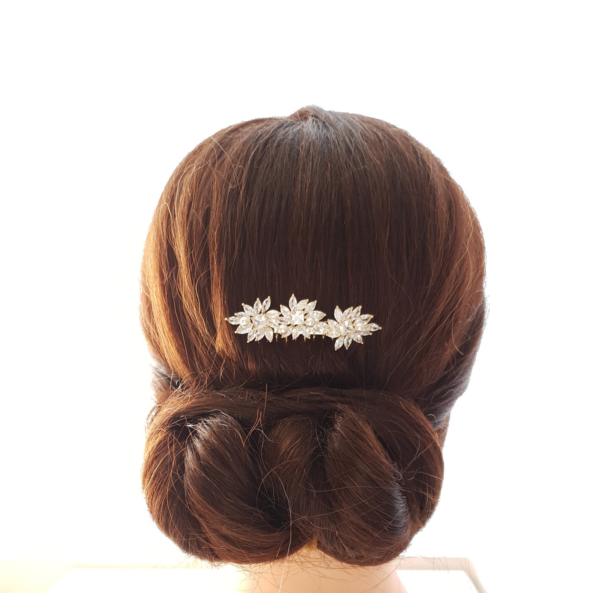 They are made with sparkly clear cubic zirconia with a touch of rose gold plating, simply elegant on every bride. The hair combs are small can be used with your veils or on their own with many hairstyles. This hair comb design is available in three finishes of gold, rose gold, silver tones and with and without pearls, so choose from.