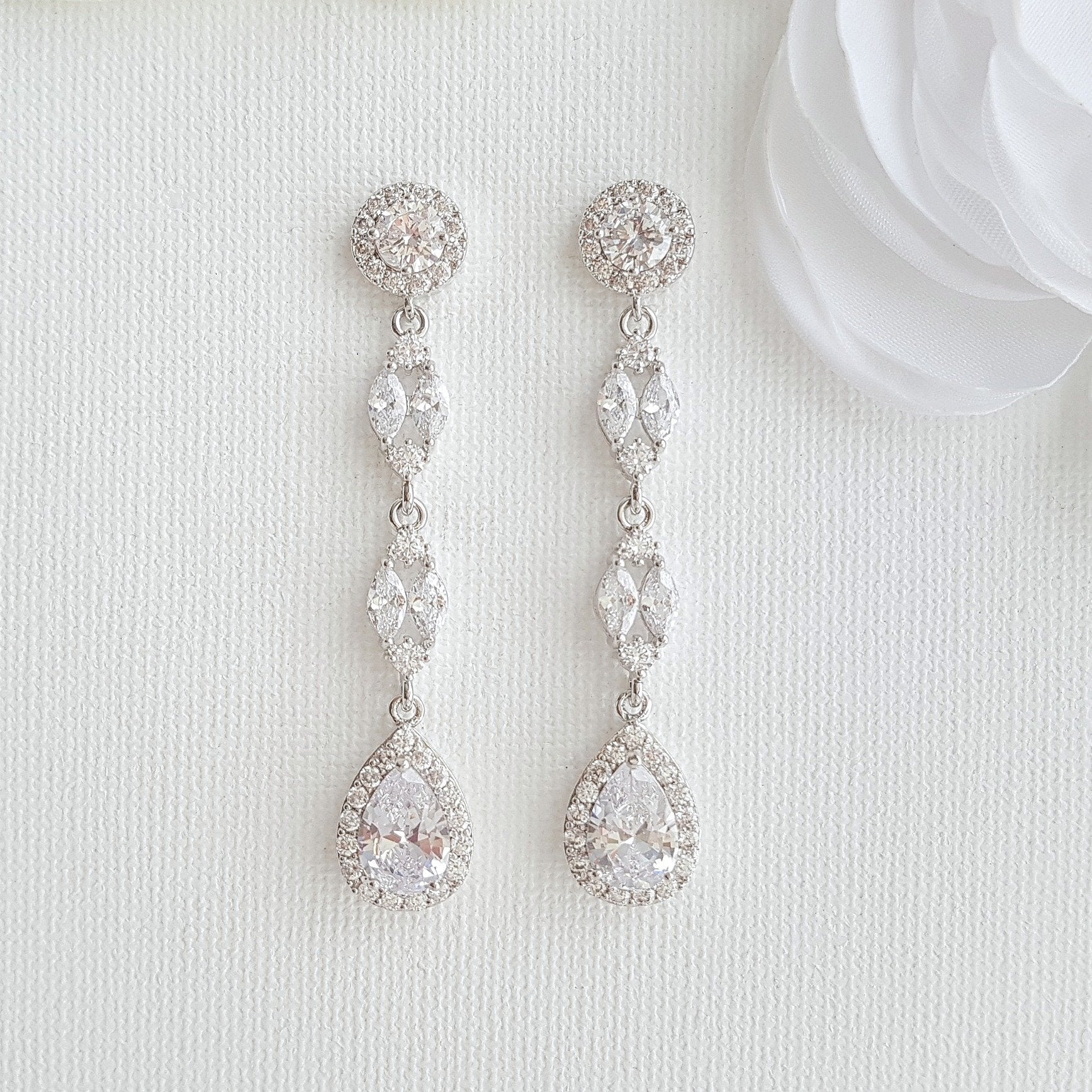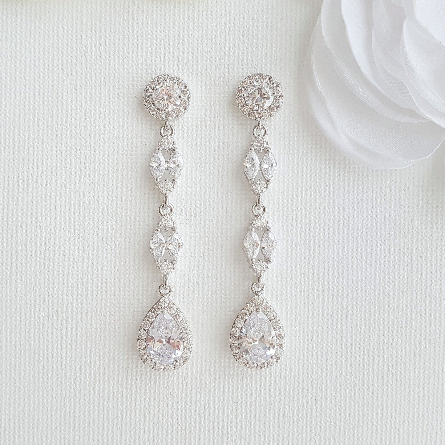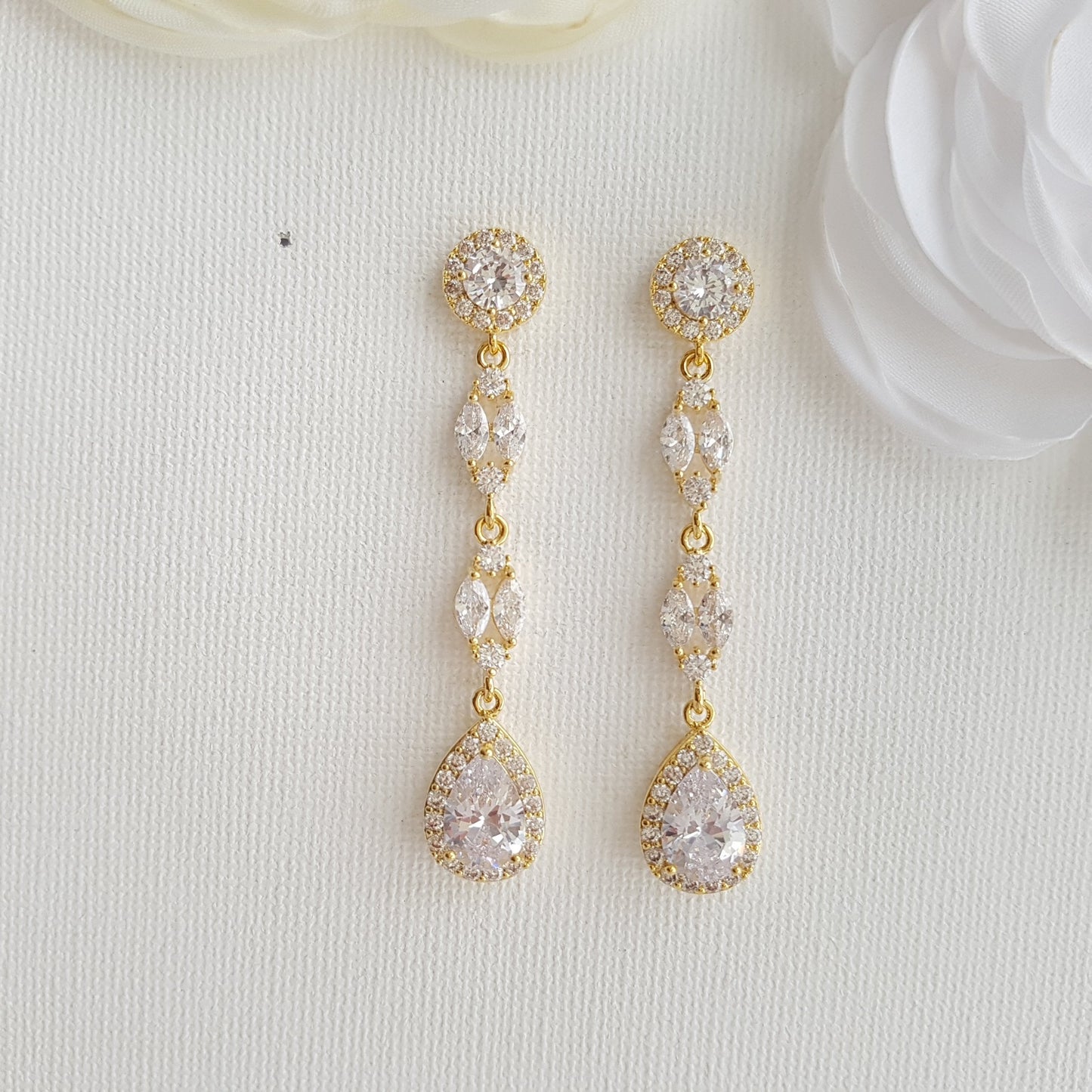 I have designed the Hayley long rose gold earrings with a combination of cubic zirconia, which is great for brides and weddings. The sparkle, shine and the warm tones of rose gold finish add some extra oomph to these long earrings.