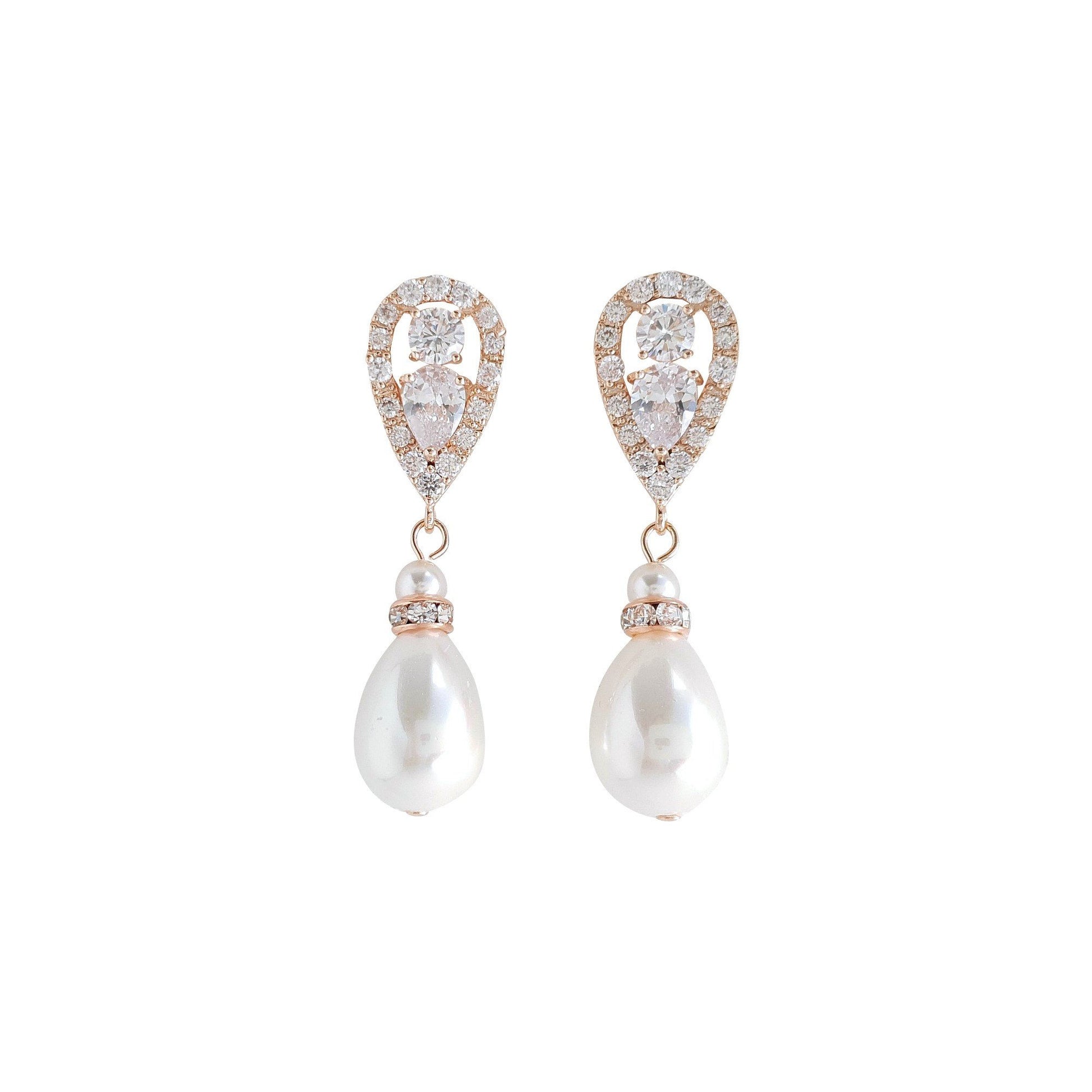 Rose Gold and Pearl Drop Earrings for Weddings