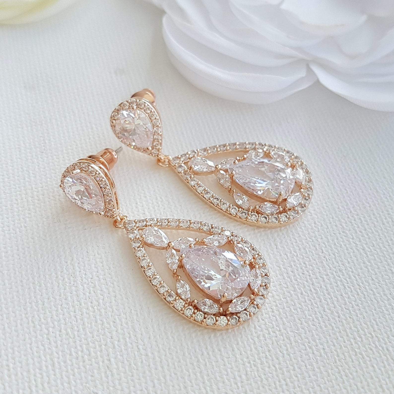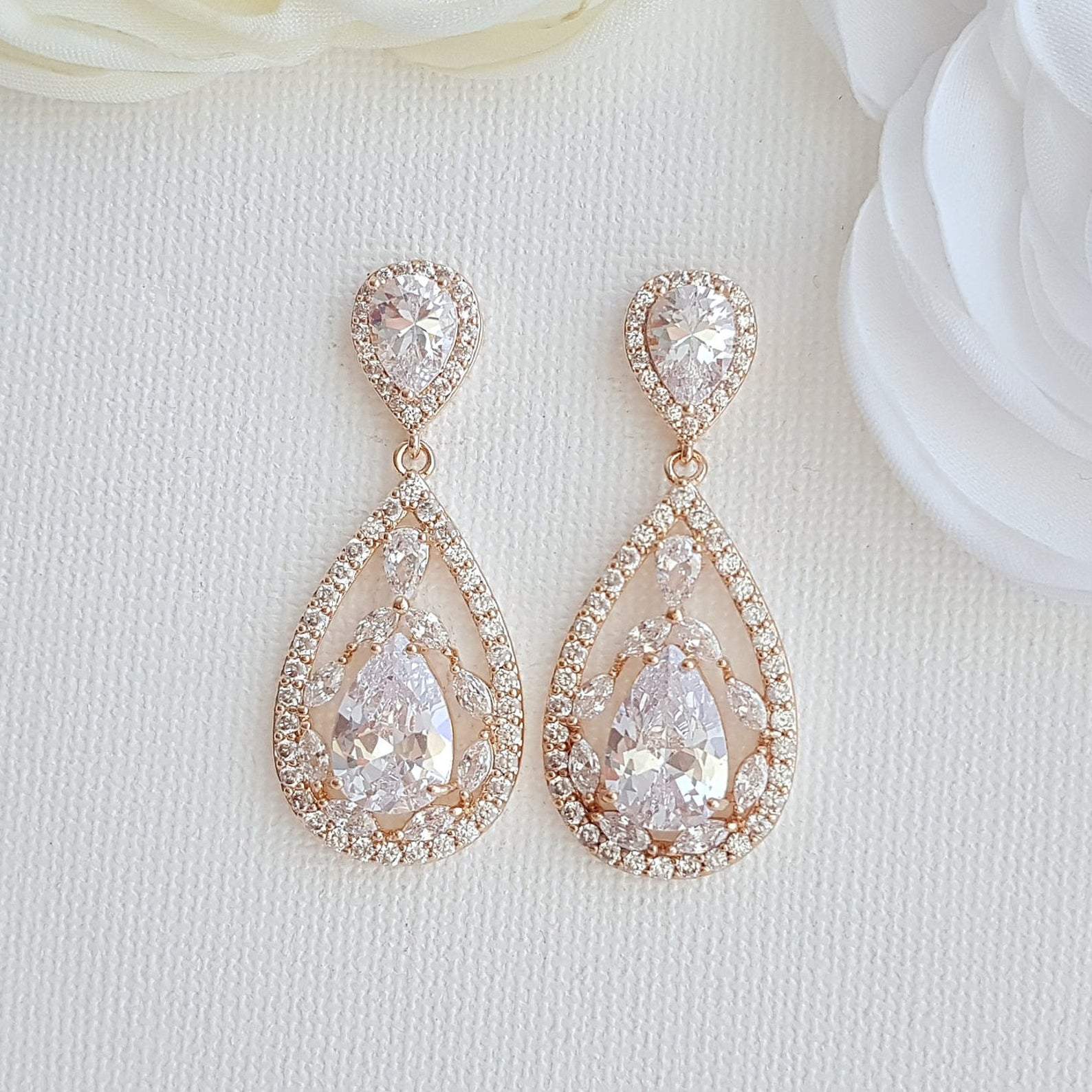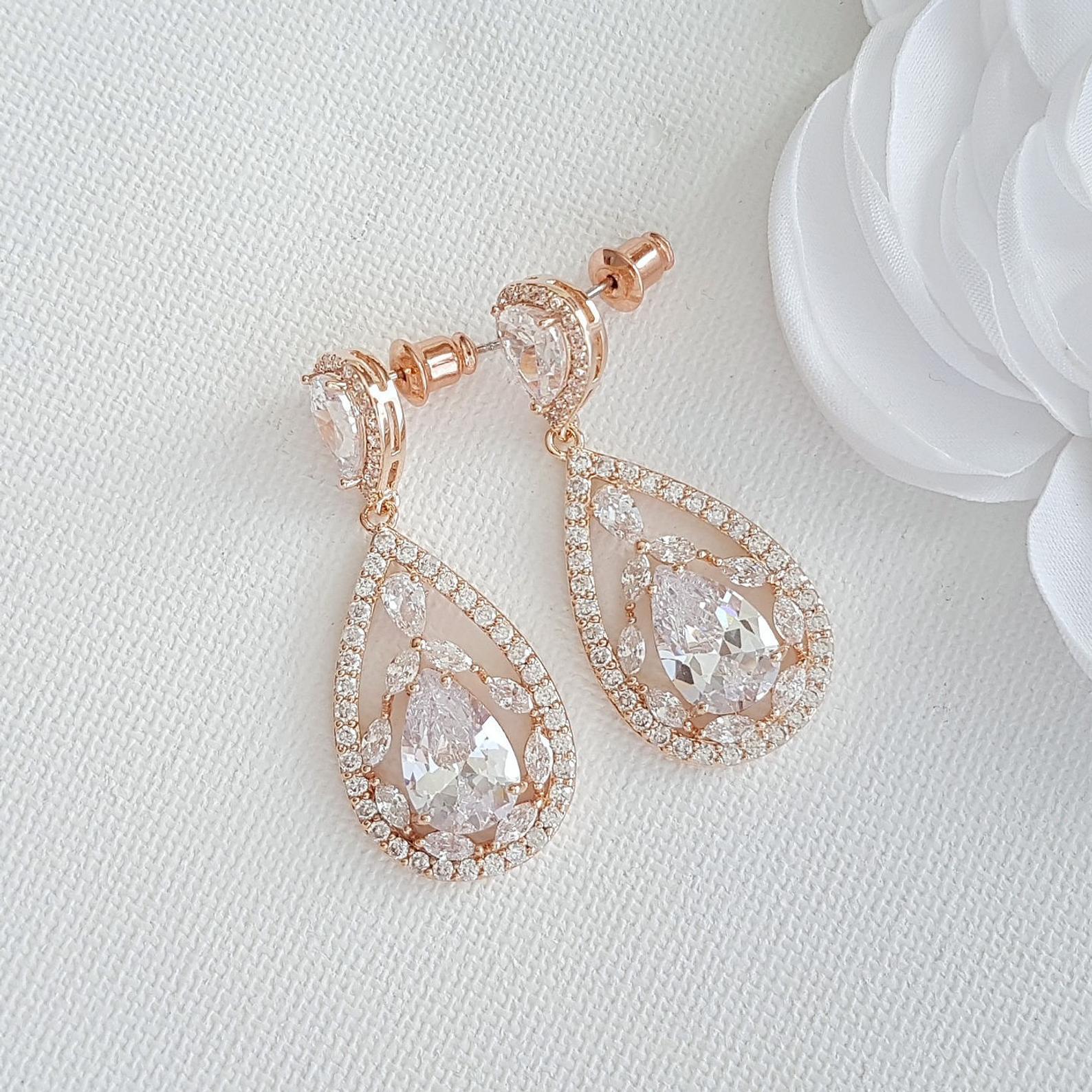 Rose gold Plated Drop Earrings for Brides-Esther