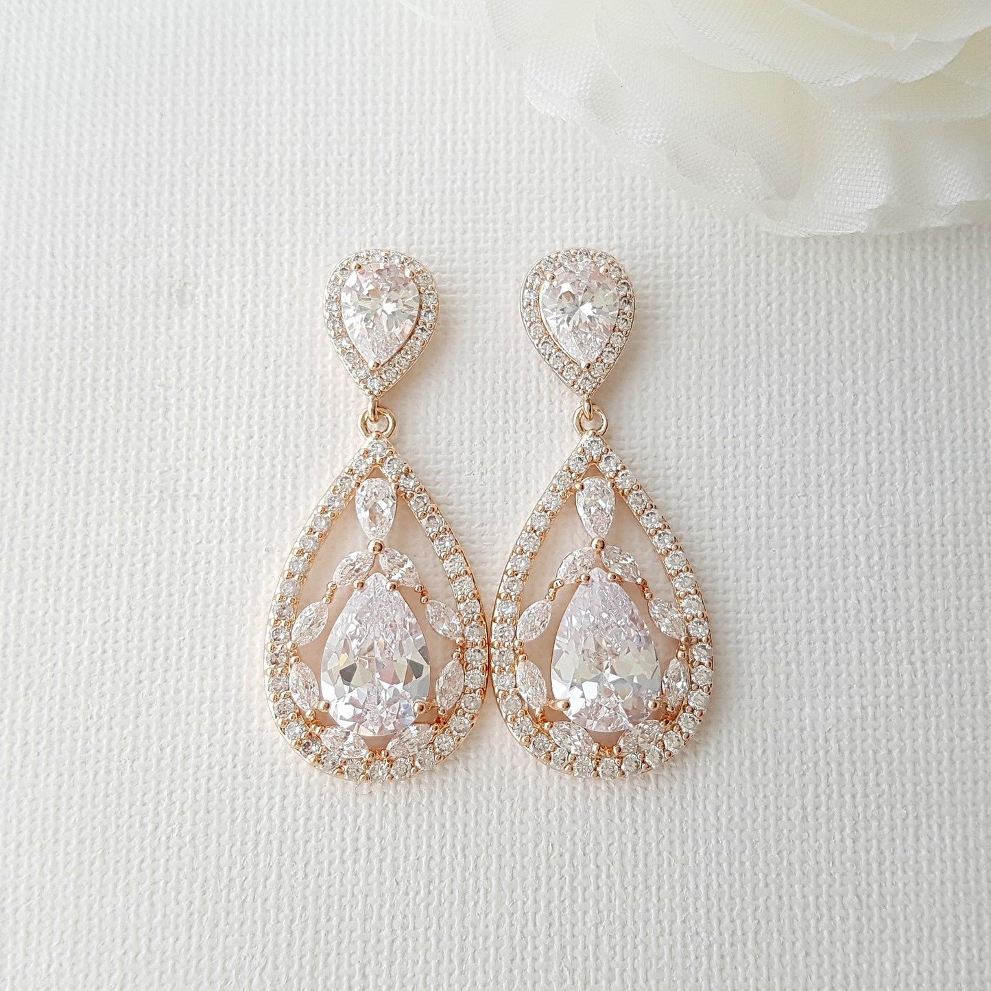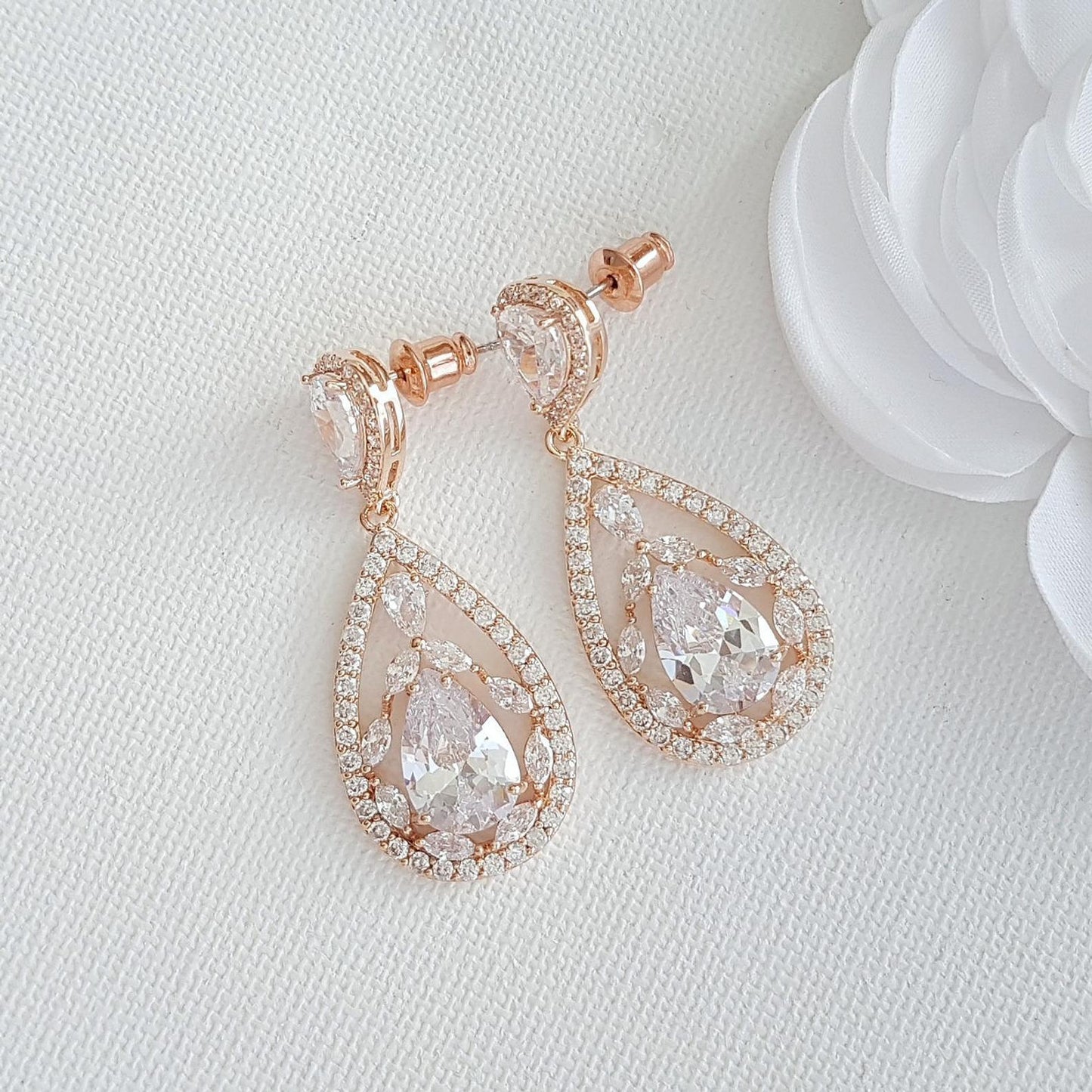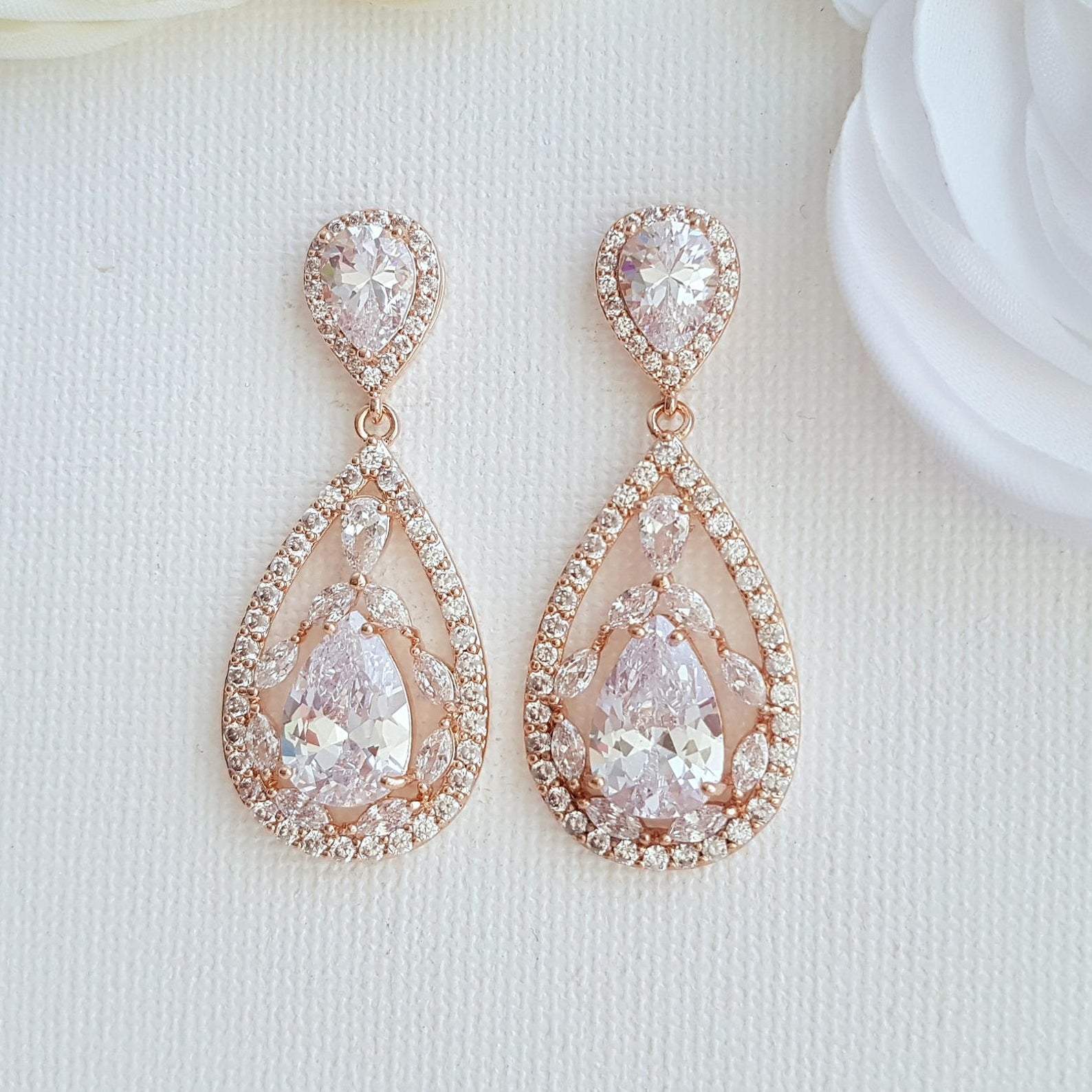 Rose gold Plated Drop Earrings for Brides-Esther