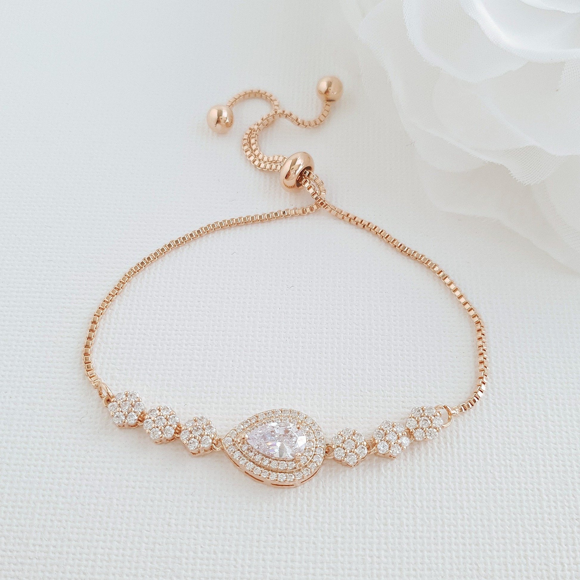 These beautiful & shiny rose gold slider bracelets are perfect for brides, bridesmaids & women to instantly add some glamour. This sliding bracelet design is comfortable with a secure fit for both small and big wrist sizes.