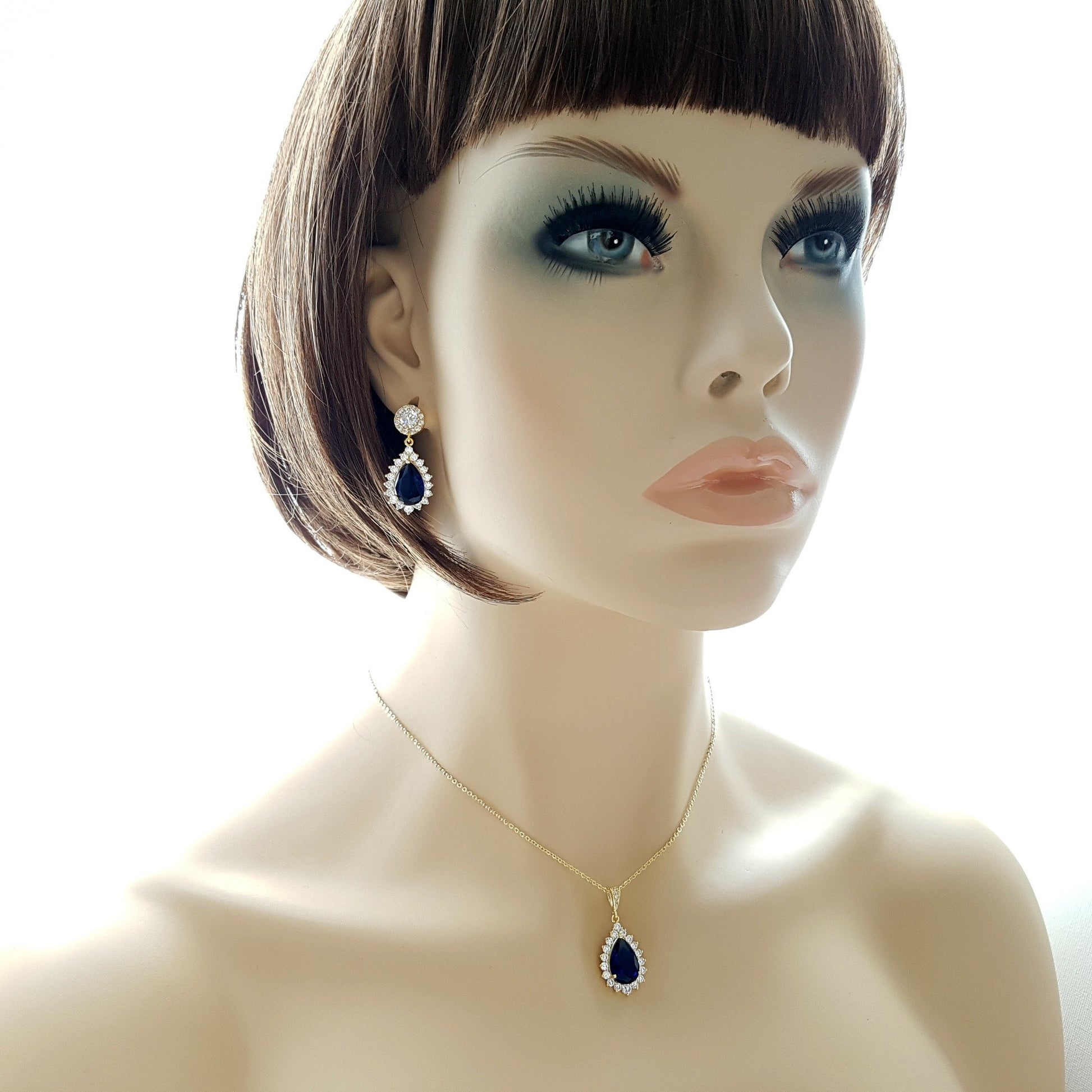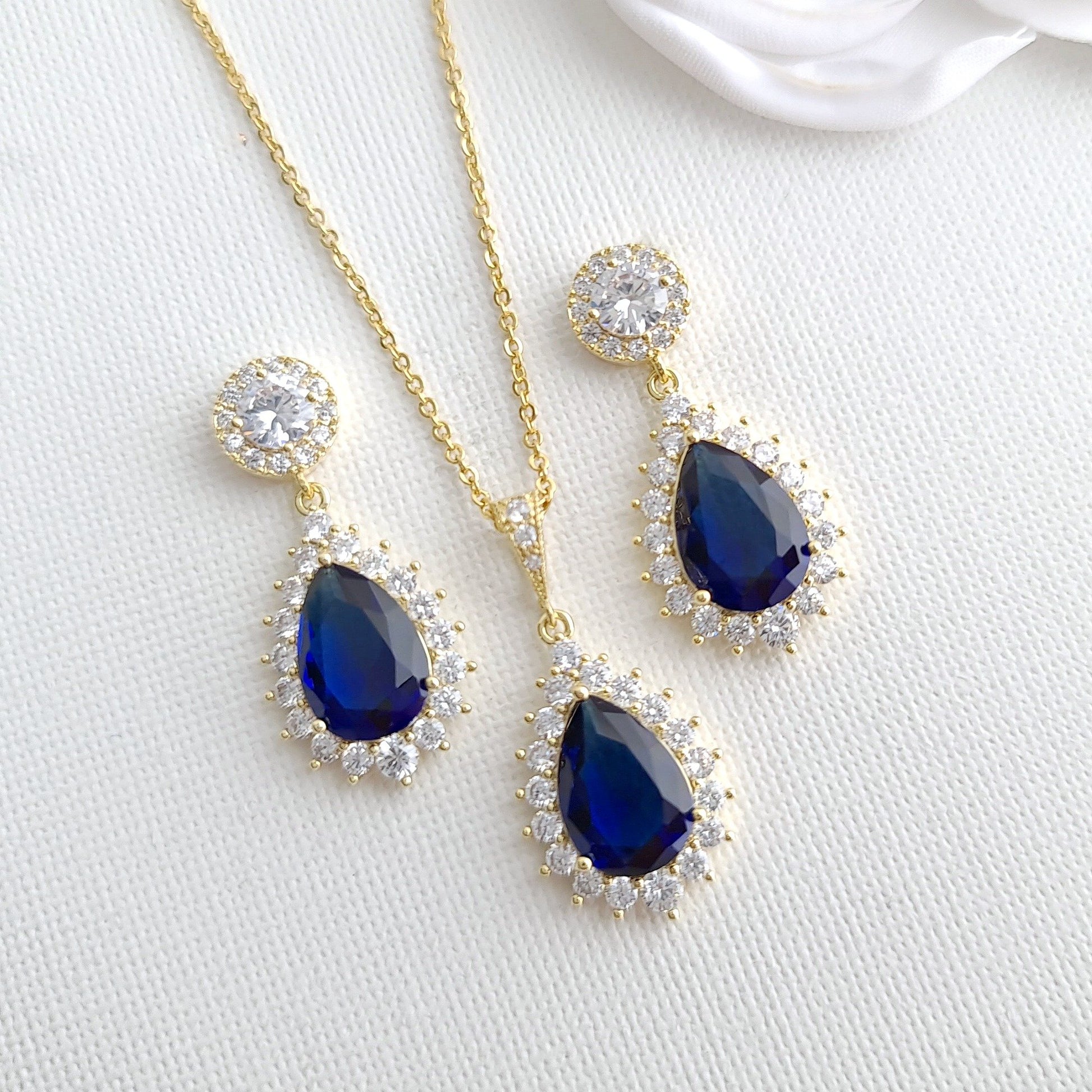 Sapphire Blue Stone Earrings Necklace Set-Aoi