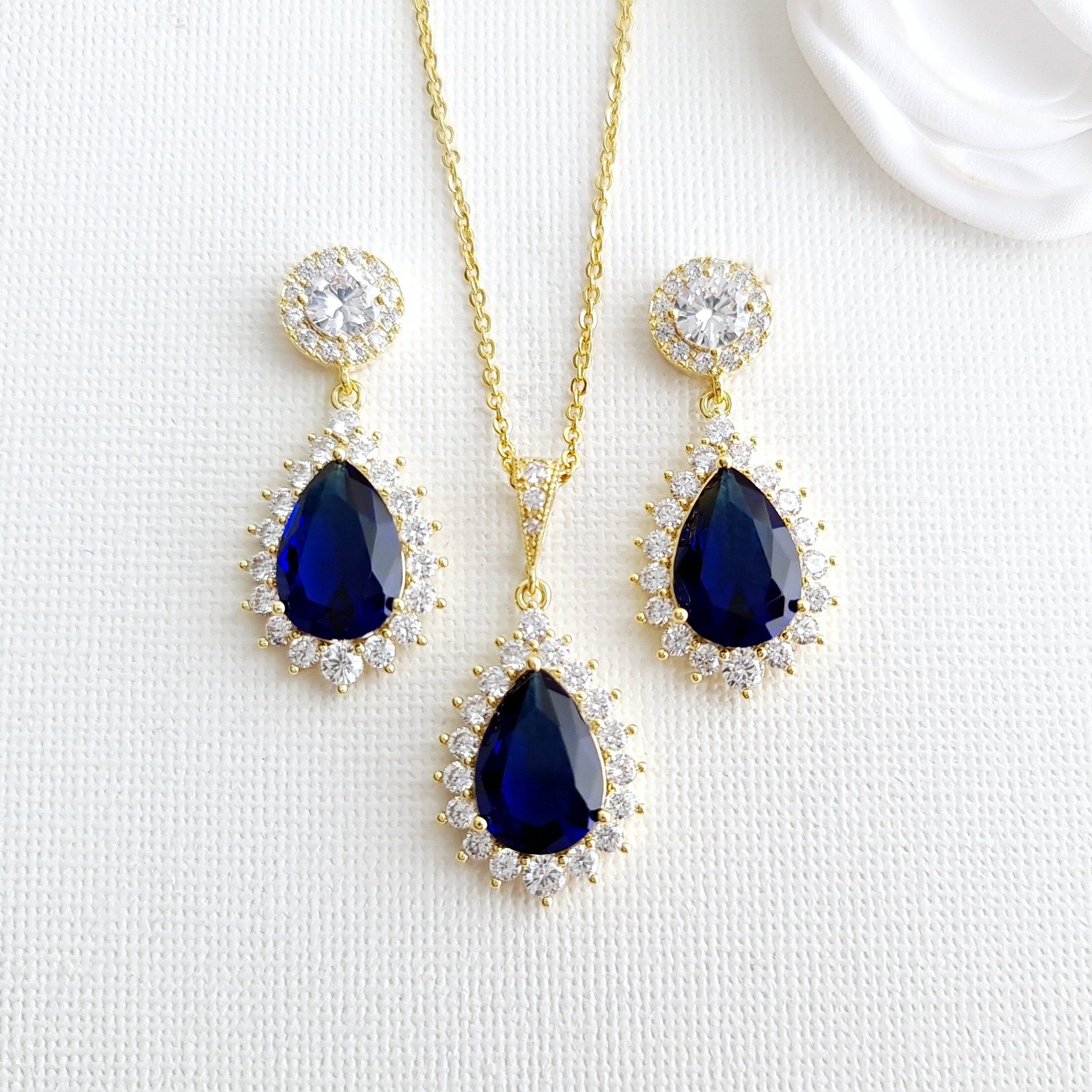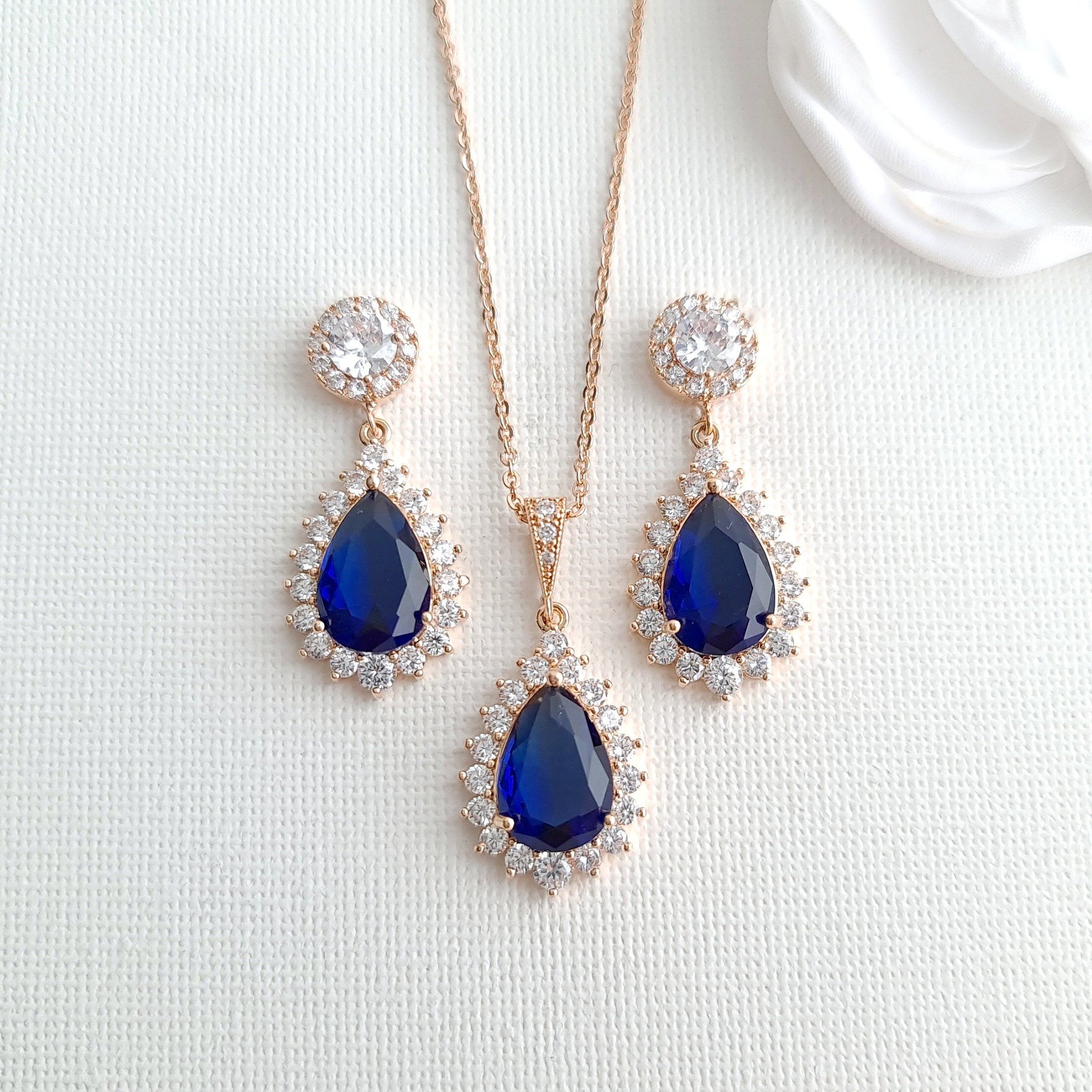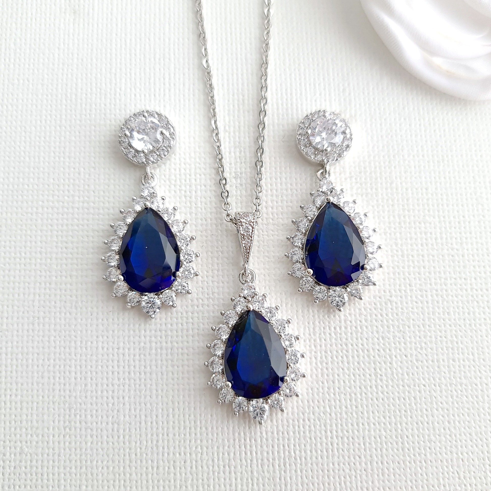 If you are looking for matching earrings, necklace set in blue color, this sapphire blue store jewelry set with matching earrings, necklace set.