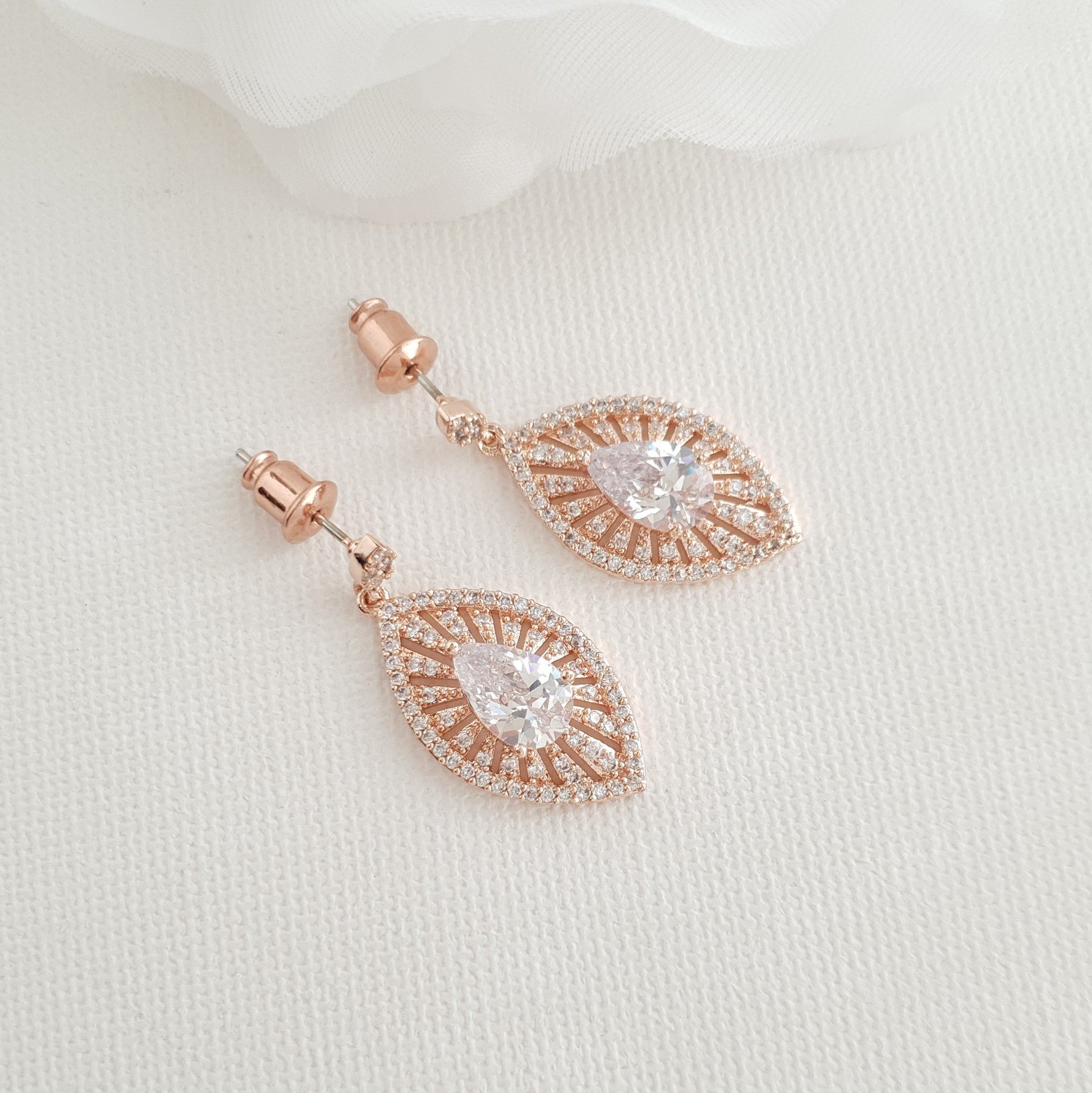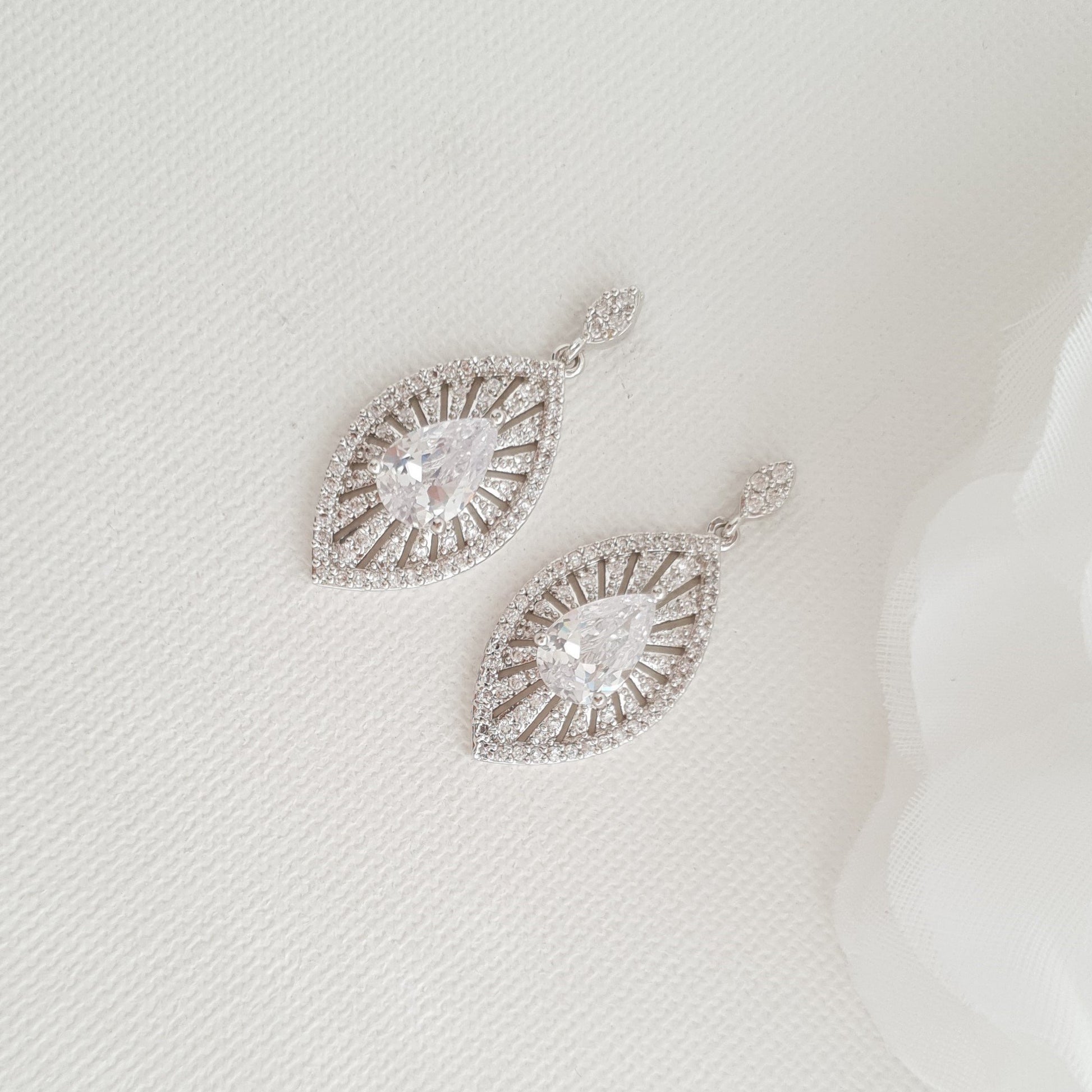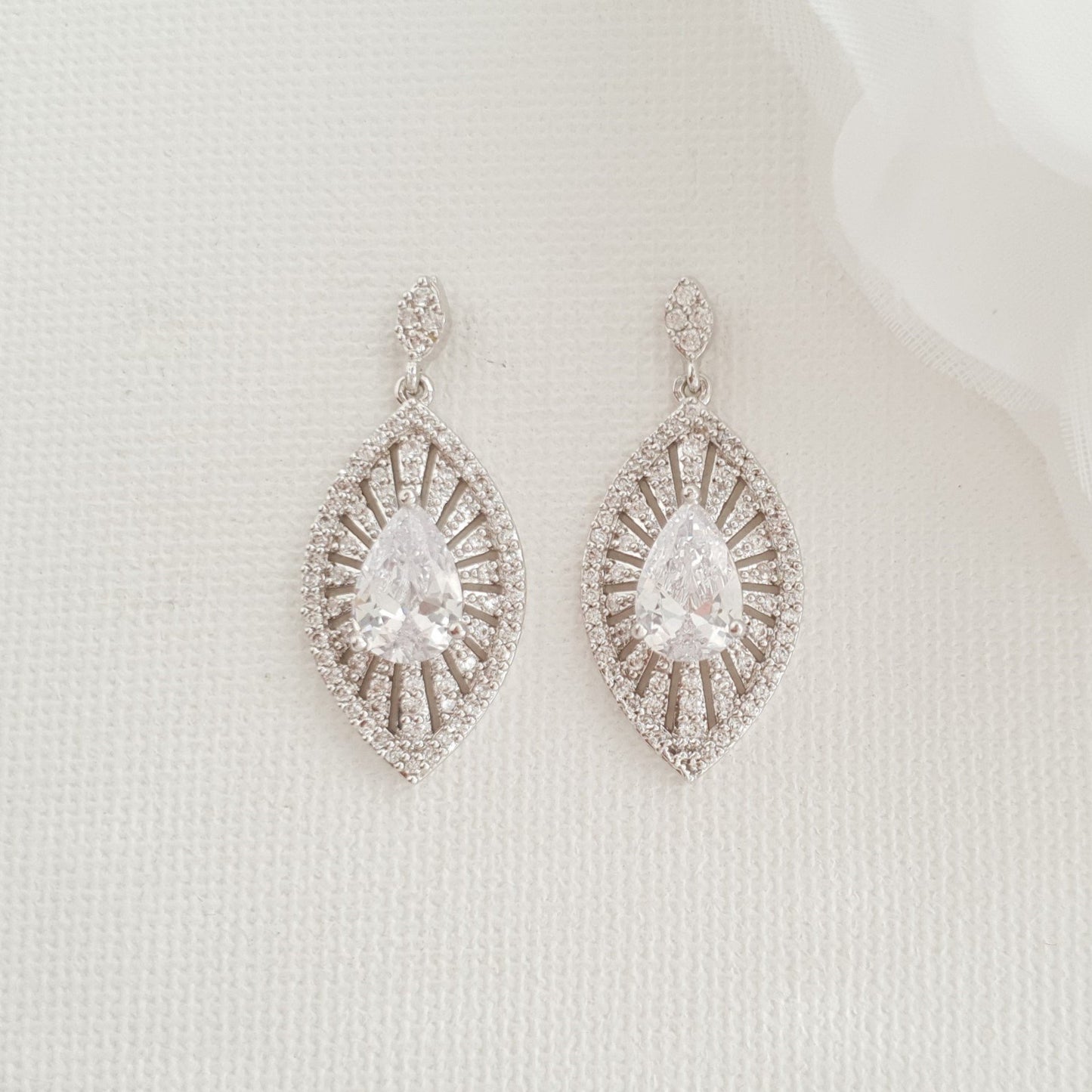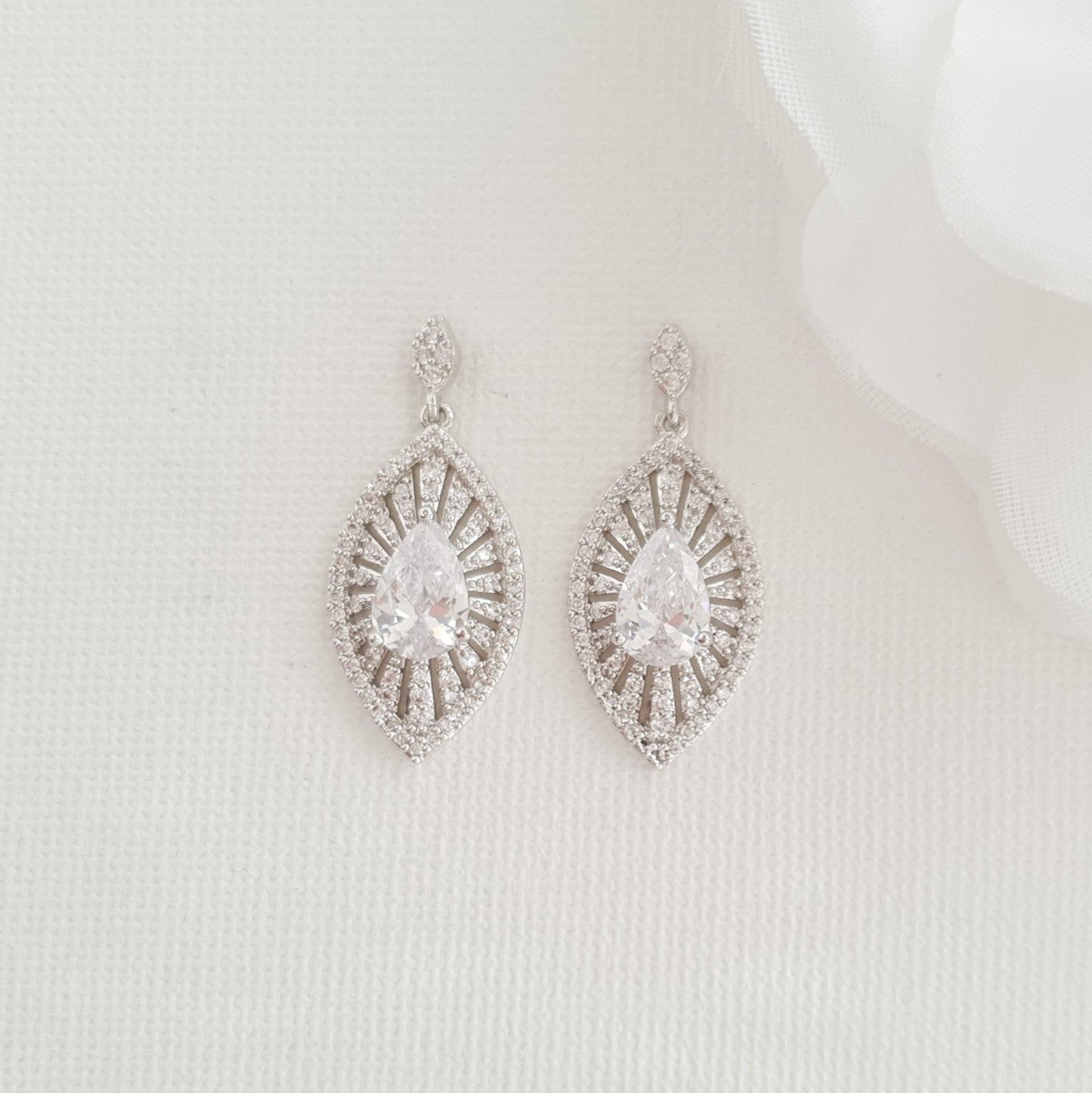 If you are looking for a short drop bridal earrings, that sparkling for brides and bridesmaids. This Zoye drop earring is a must consider an item for your wedding day look. These drop earrings are lightweight and comfortable to wear on the wedding day or reception. The big advantage of these drop earrings is that it can be worn on any occasion after the wedding too and bridesmaids will love it and cherish this gift forever.