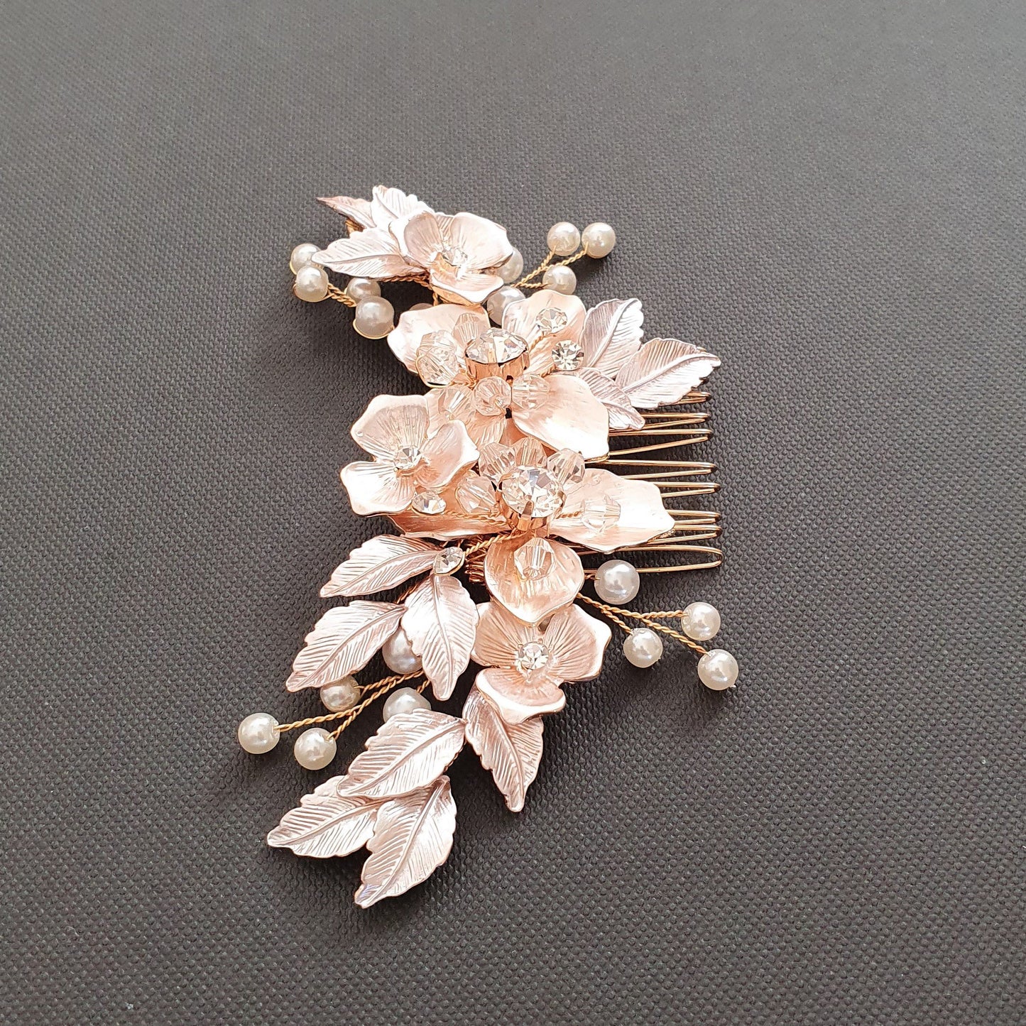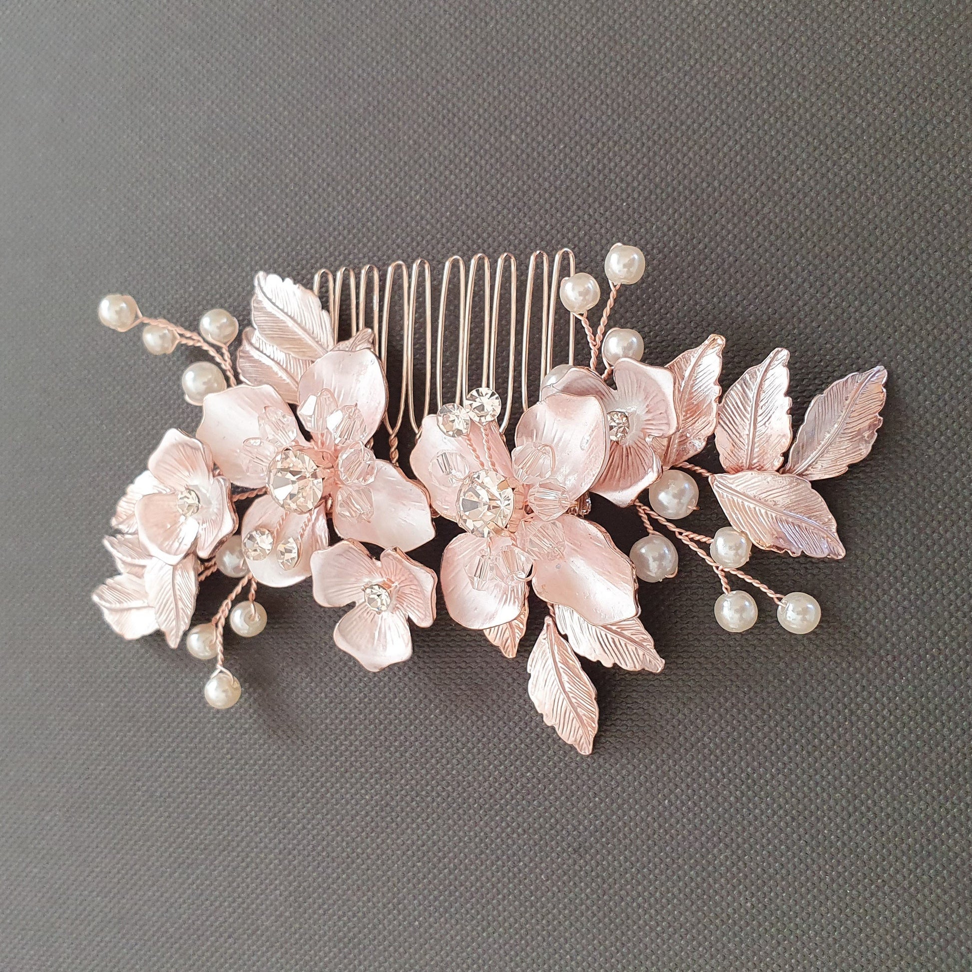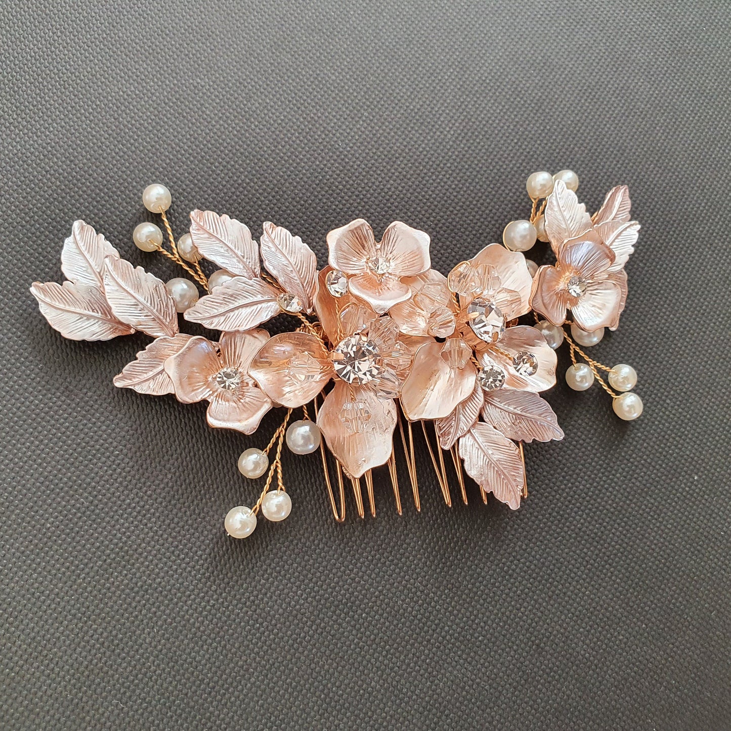 This bridal hair comb can be easily combined with other silver wedding day jewelry, It can easily flow with your plain or floral-patterned wedding dresses. The bridal hair comb can be purchased in three tones of silver, gold, and rose gold tones to suit and match your style.