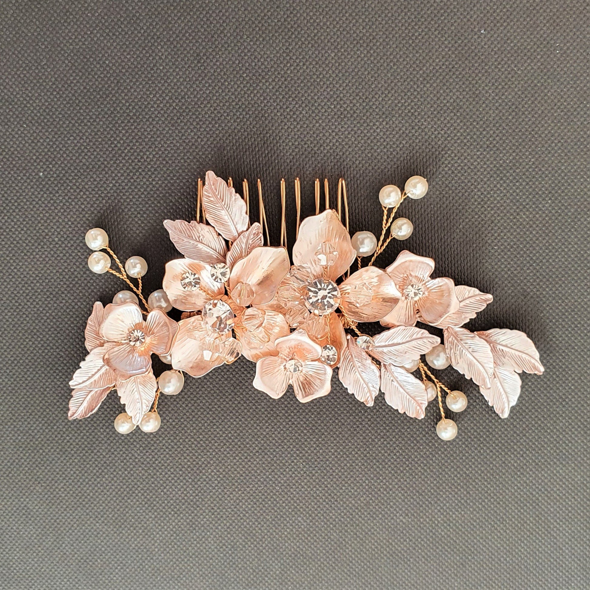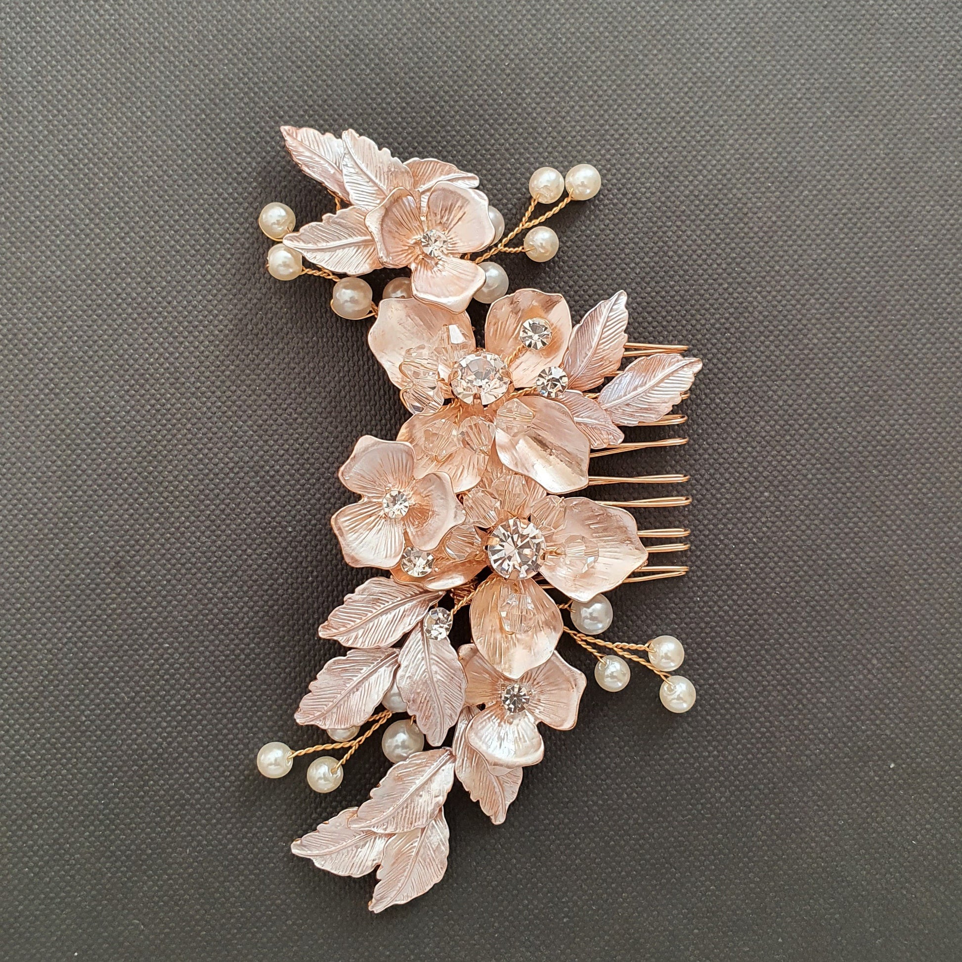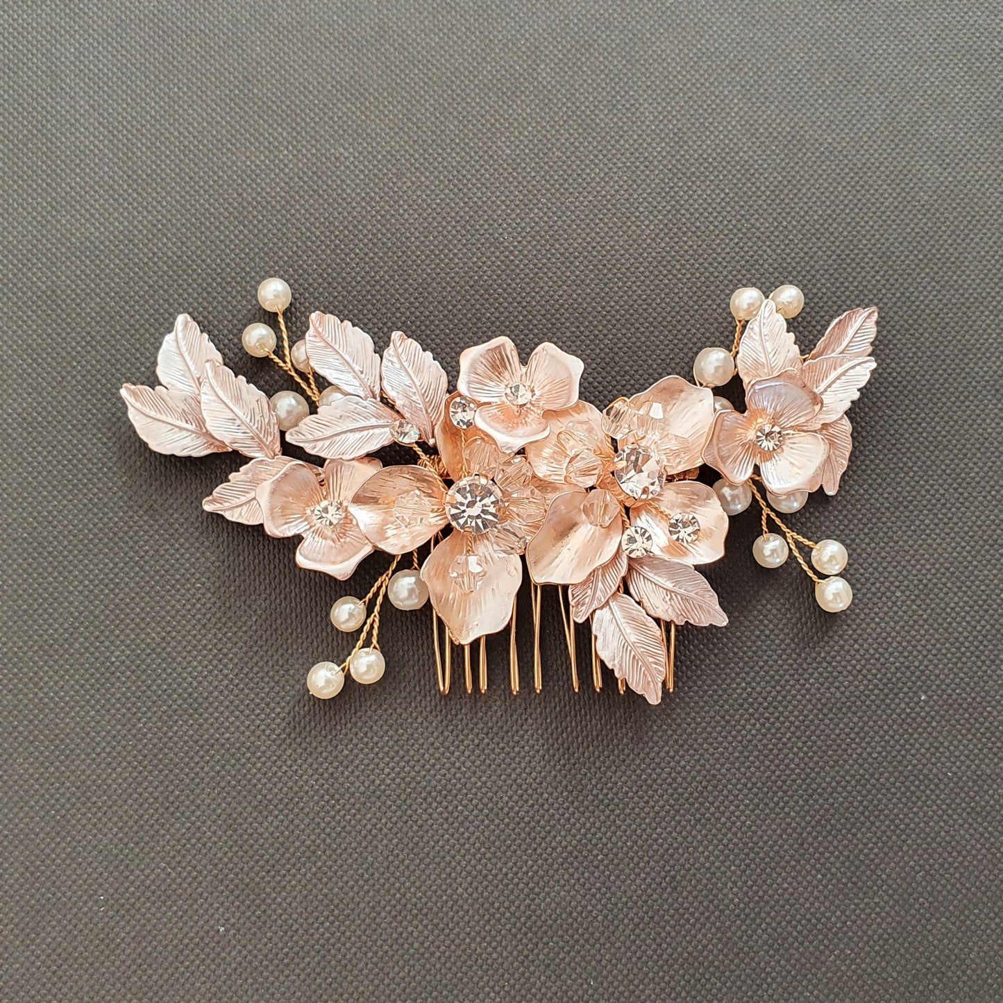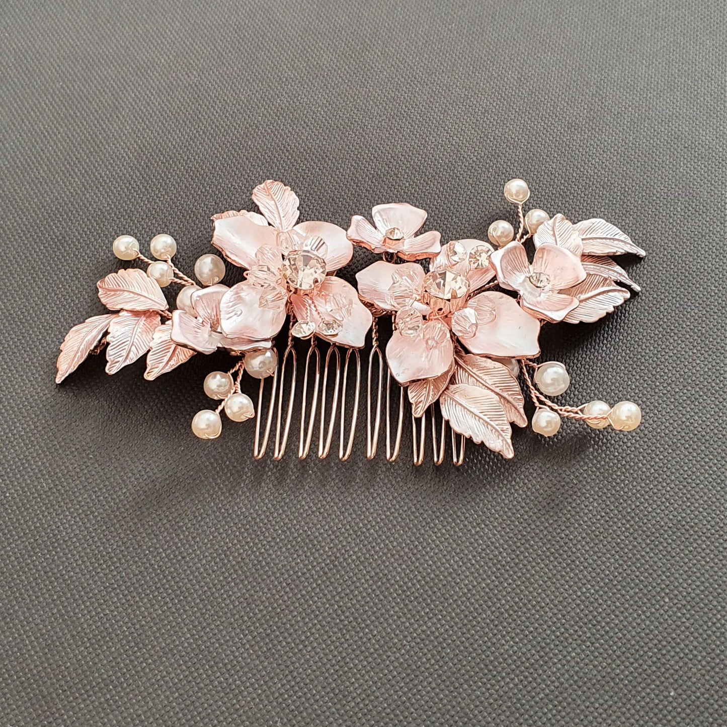 This bridal hair comb can be easily combined with other silver wedding day jewelry, It can easily flow with your plain or floral-patterned wedding dresses. The bridal hair comb can be purchased in three tones of silver, gold, and rose gold tones to suit and match your style.