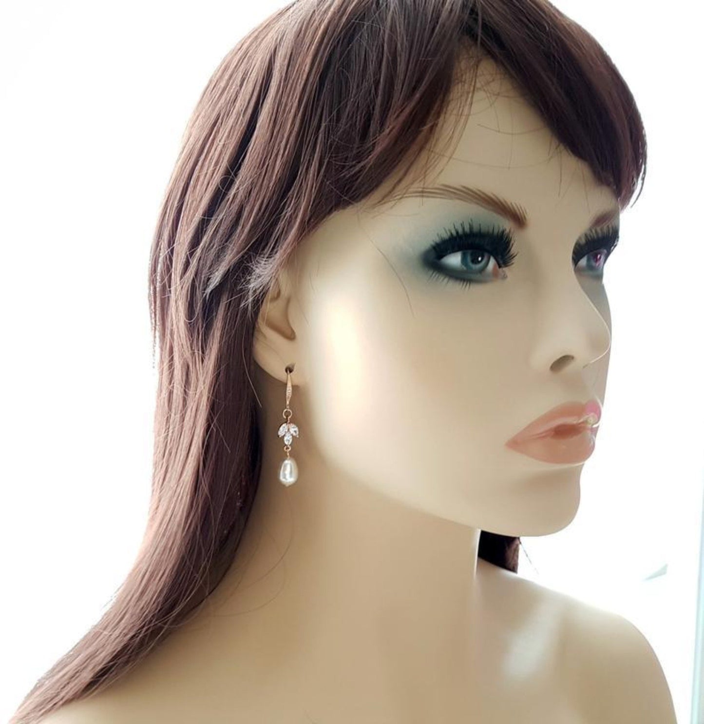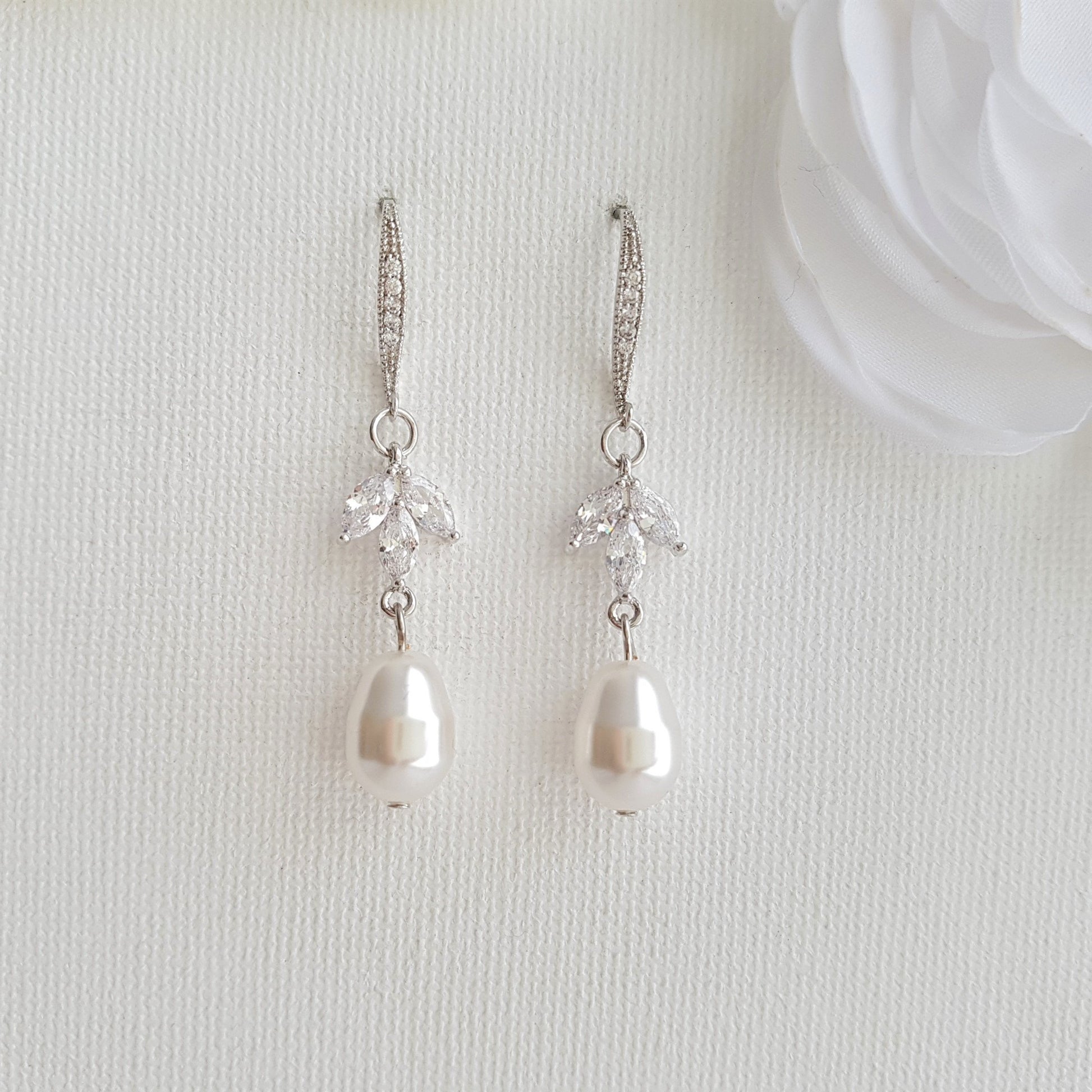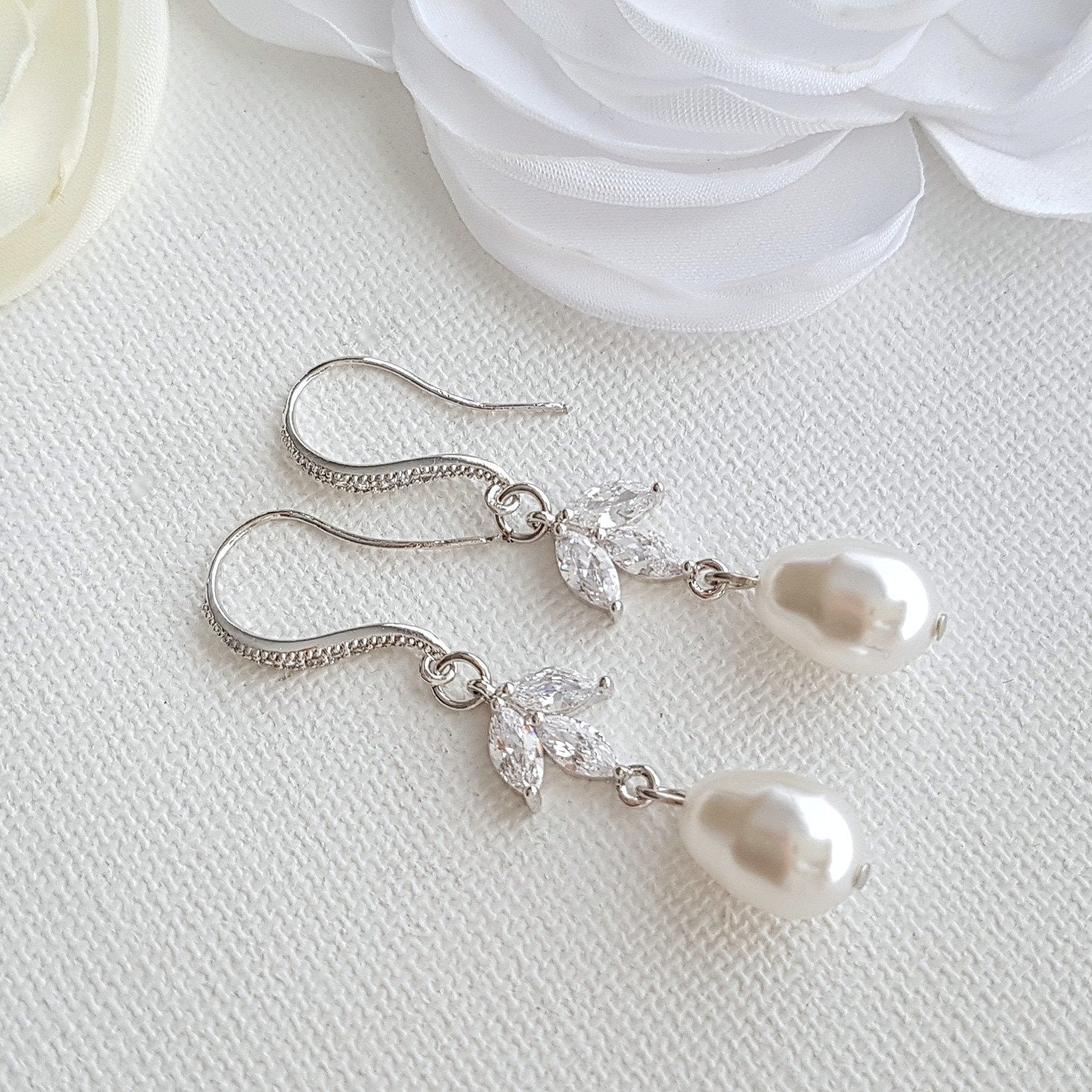 Earrings:- Simple, and lightweight pretty dangle earrings made with ear hooks that are combined with marquise cubic zirconia and pearls. The length of the earrings 1 6/8 inches or 4.5 cms.