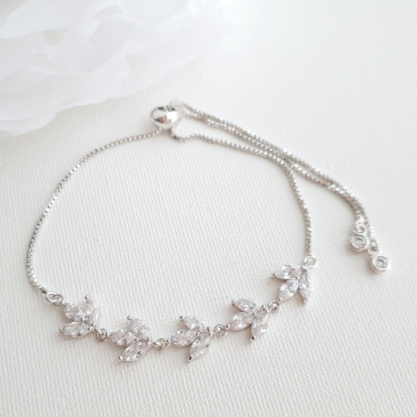 This simple bridal jewelry set is most elegant, the set consists of 3 pieces of dangly earrings, a necklace with or without a backdrop, and a matching bracelet. This simple jewelry set adds a sparkly and fine touch to your wedding dress and wedding day look. This set is available in three finishes of silver, gold, and rose gold tones/ platings. Detail description and measurements of each piece of this 3 pcs jewelry set.