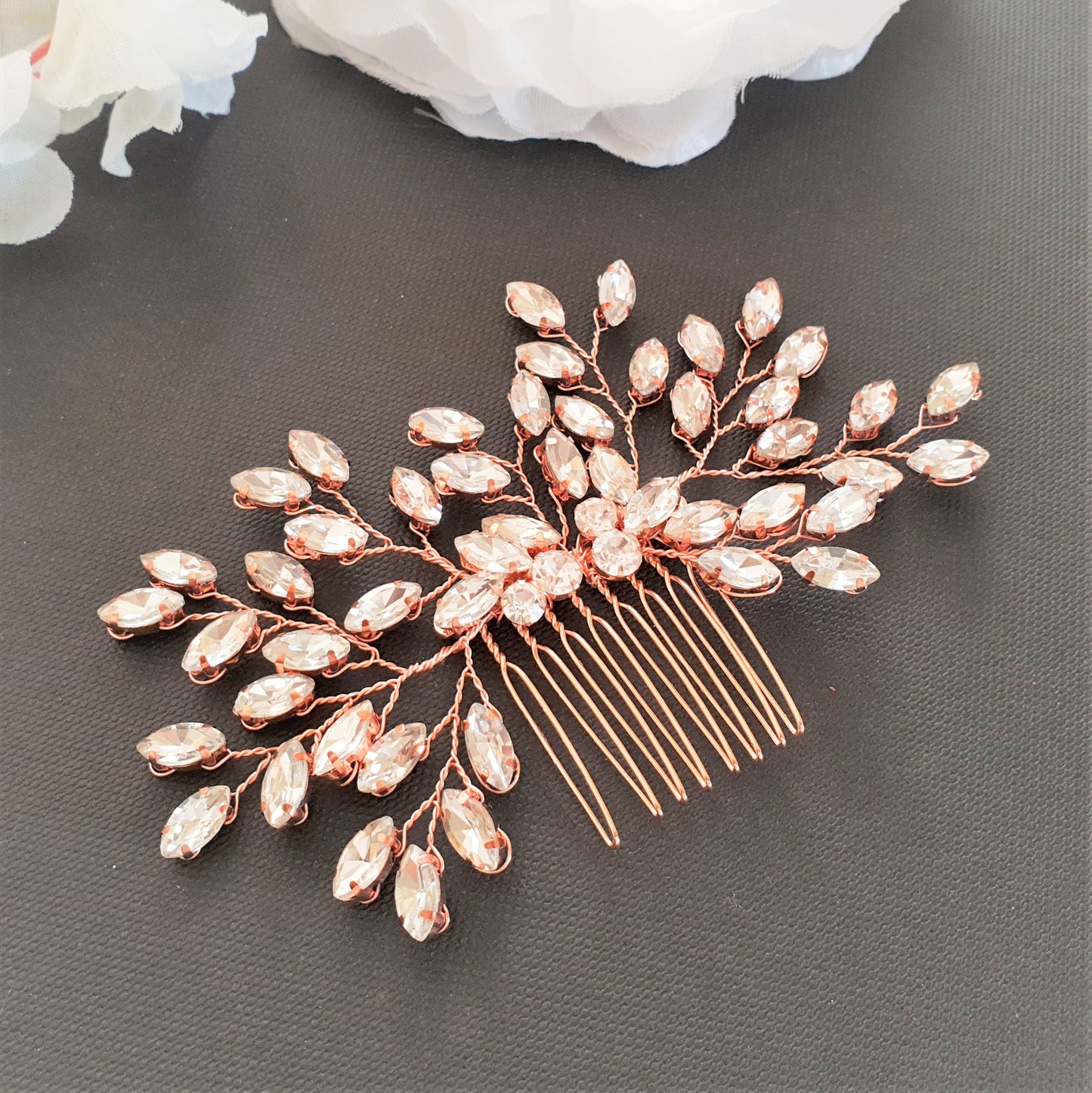 Simple Crystal Leaf Hair Comb for Brides-Pasque