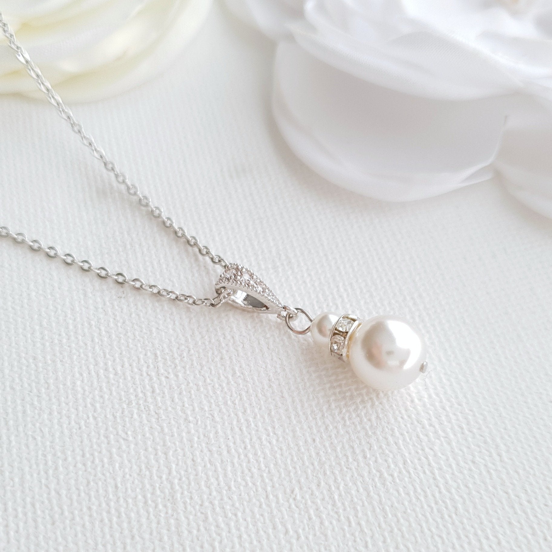A single pearl pendant necklace for weddings are created with the soft glow of pearls, a Simple and delicate necklace for brides, bridesmaids, flower girls and woman for everyday wear.