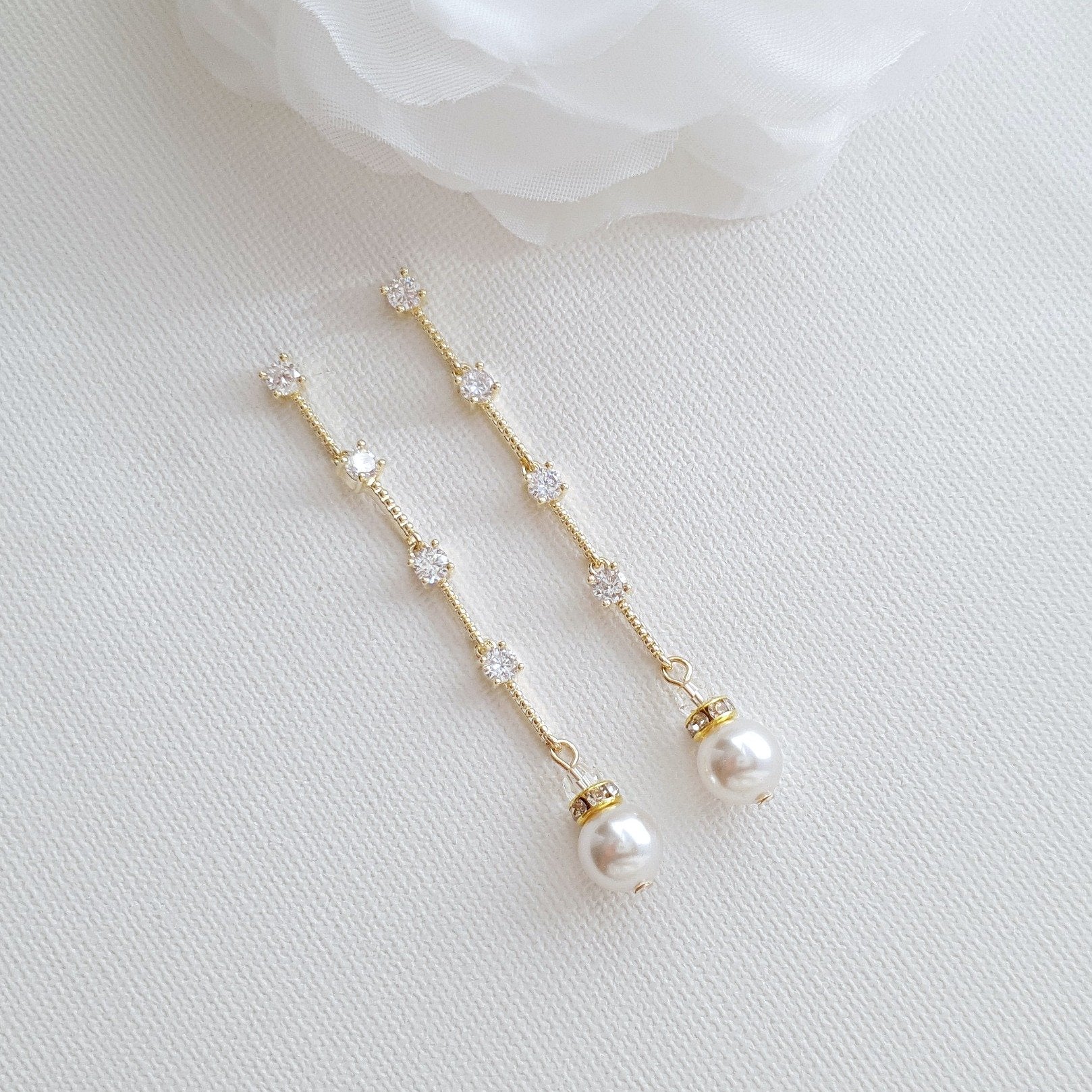 Slim & Long Pearl Earrings for Weddings-Ginger