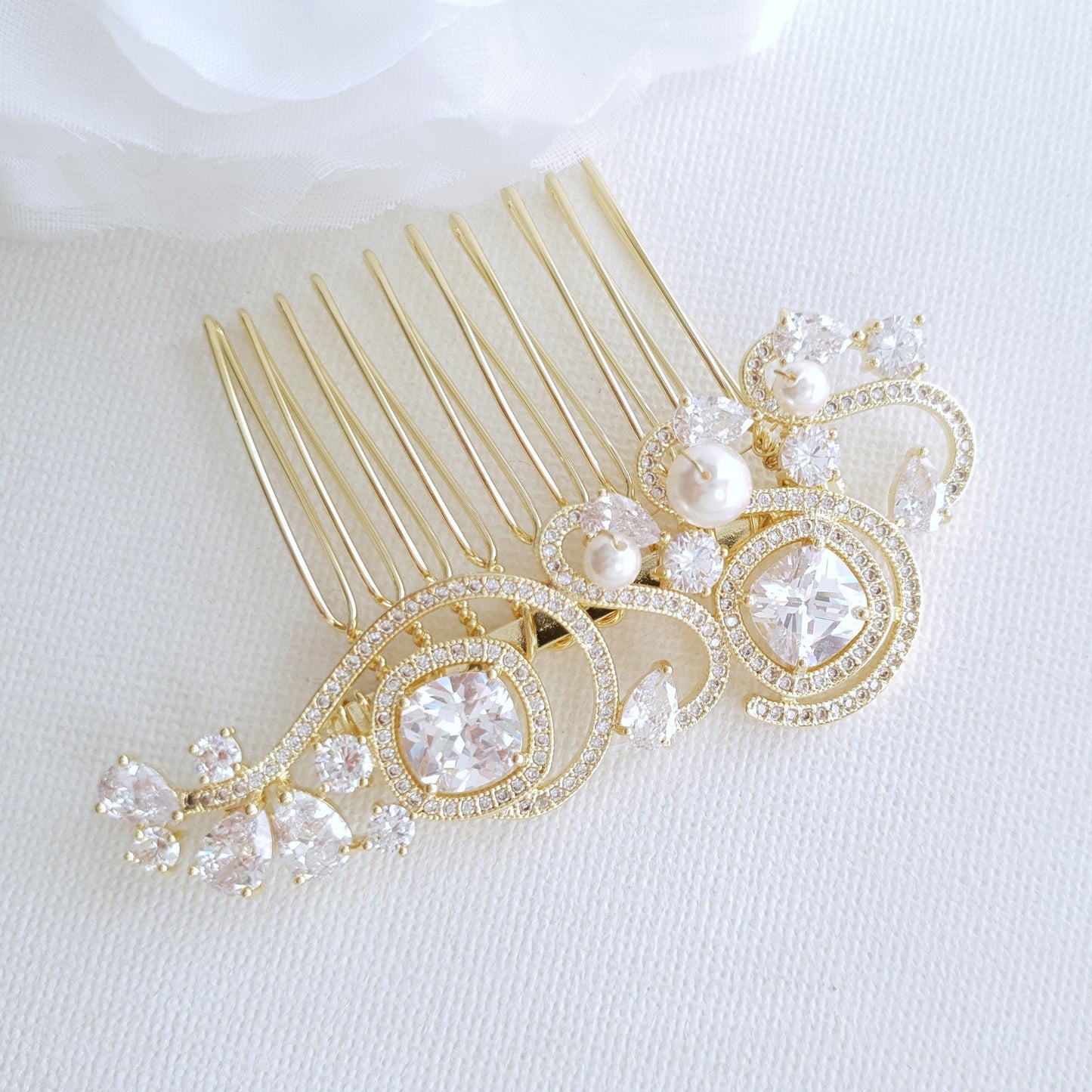 Light Yellow Gold Color,14K Gold Plated Small Bridal Hair Comb