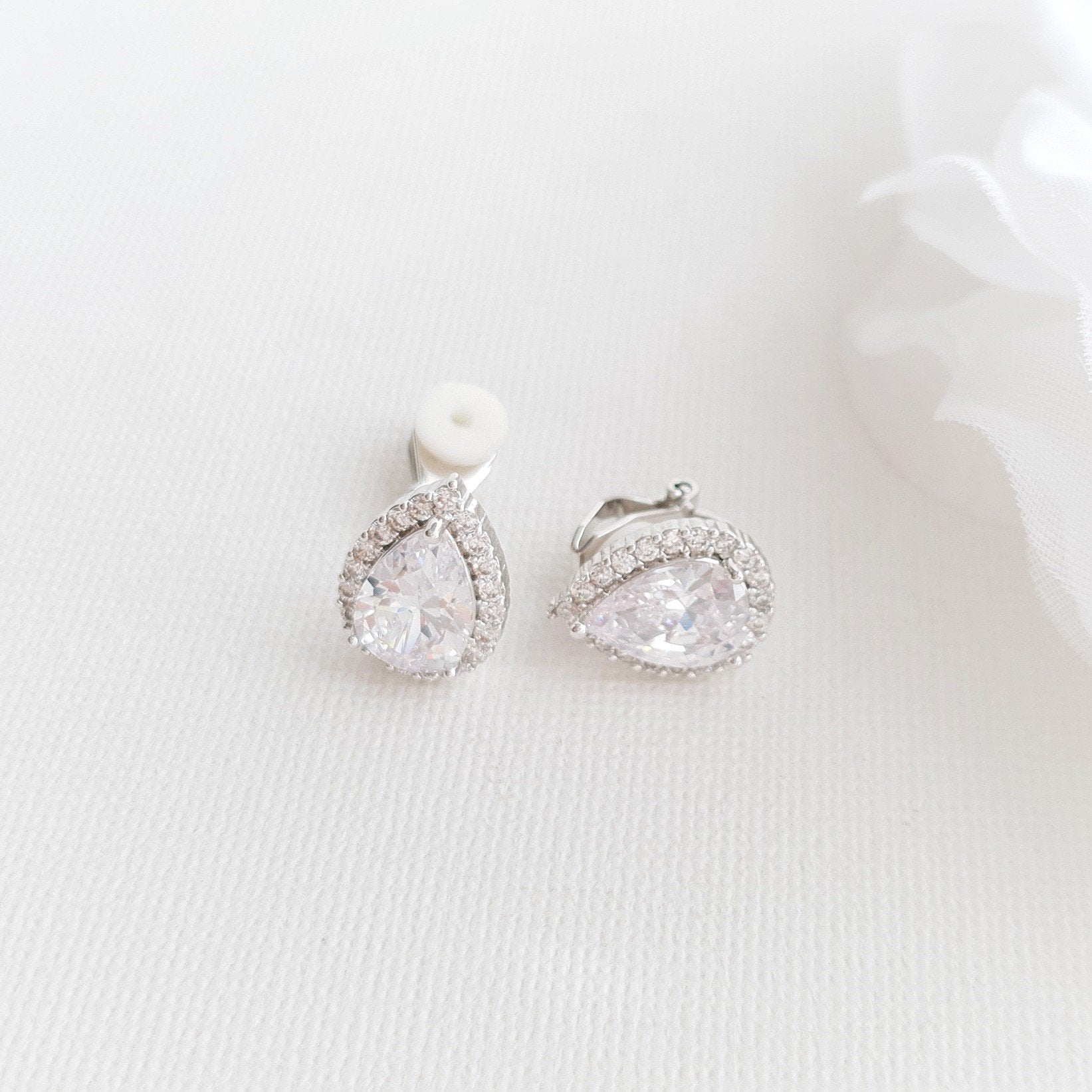 Teardrop Clip On Stud Earrings- Emma
