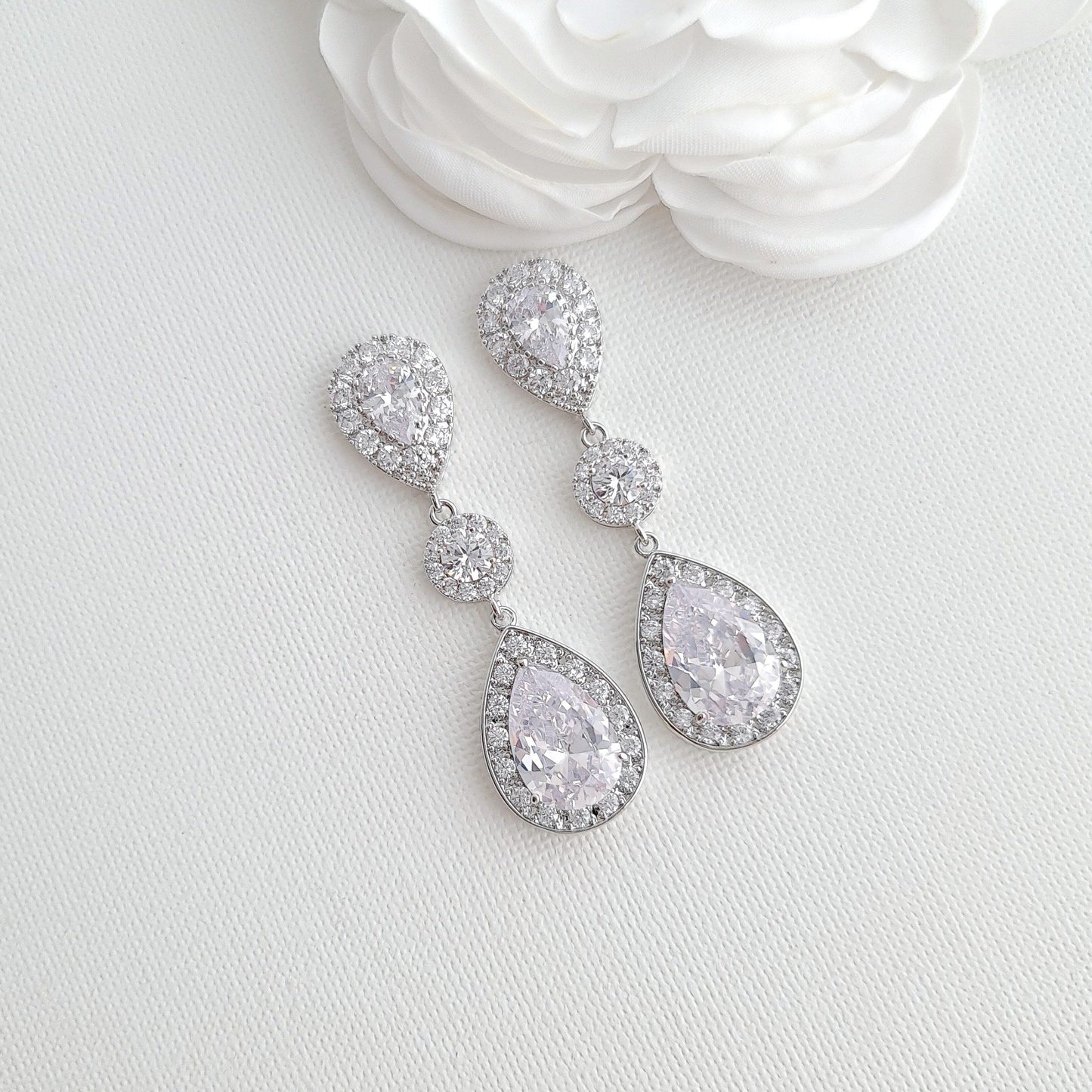 Teardrop Cubic Zirconia Rose Gold Bridal Earrings-Penelope
