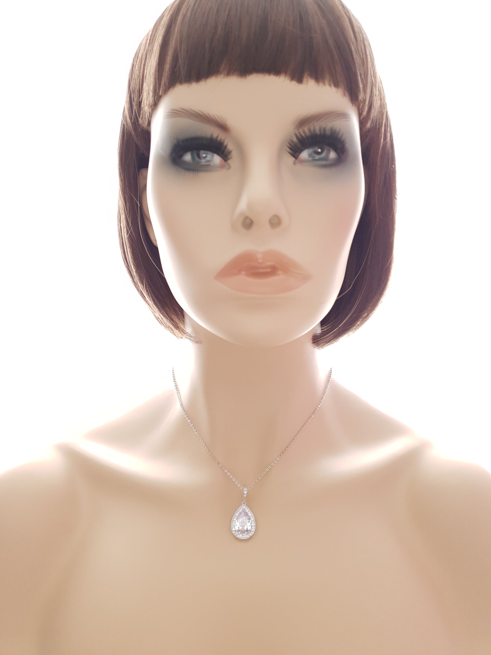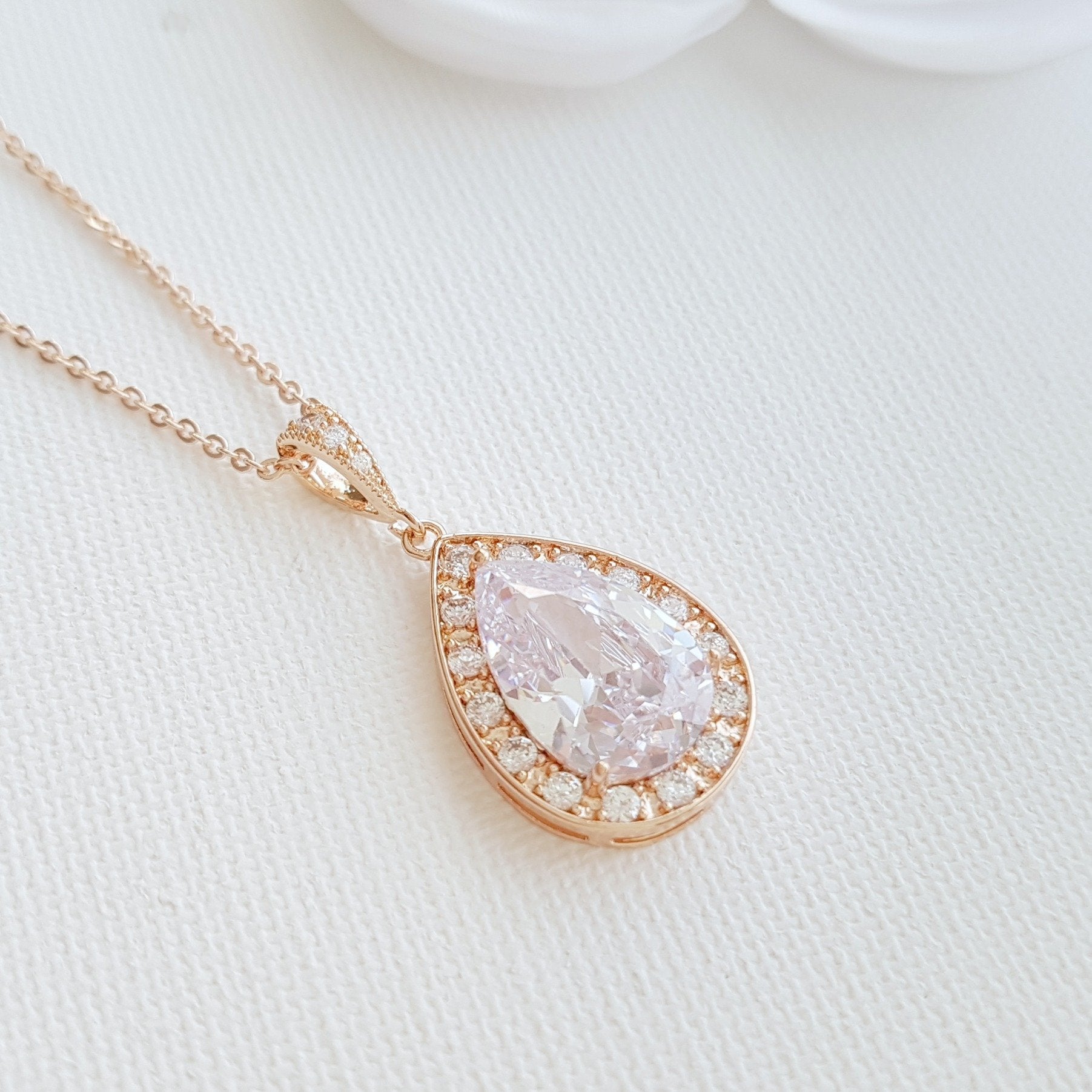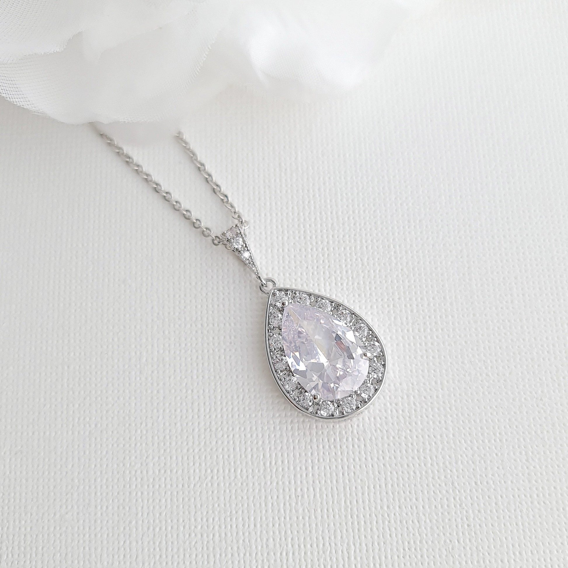 Teardrop Necklace in 14K Gold & Cubic Zirconia for Brides & Bridesmaids-Evelyn