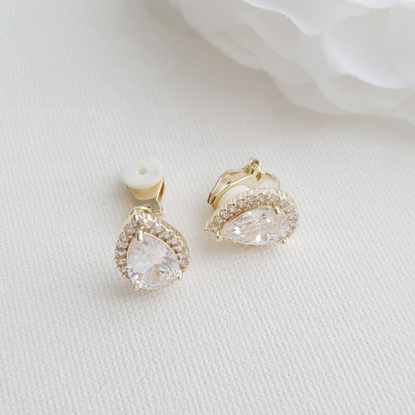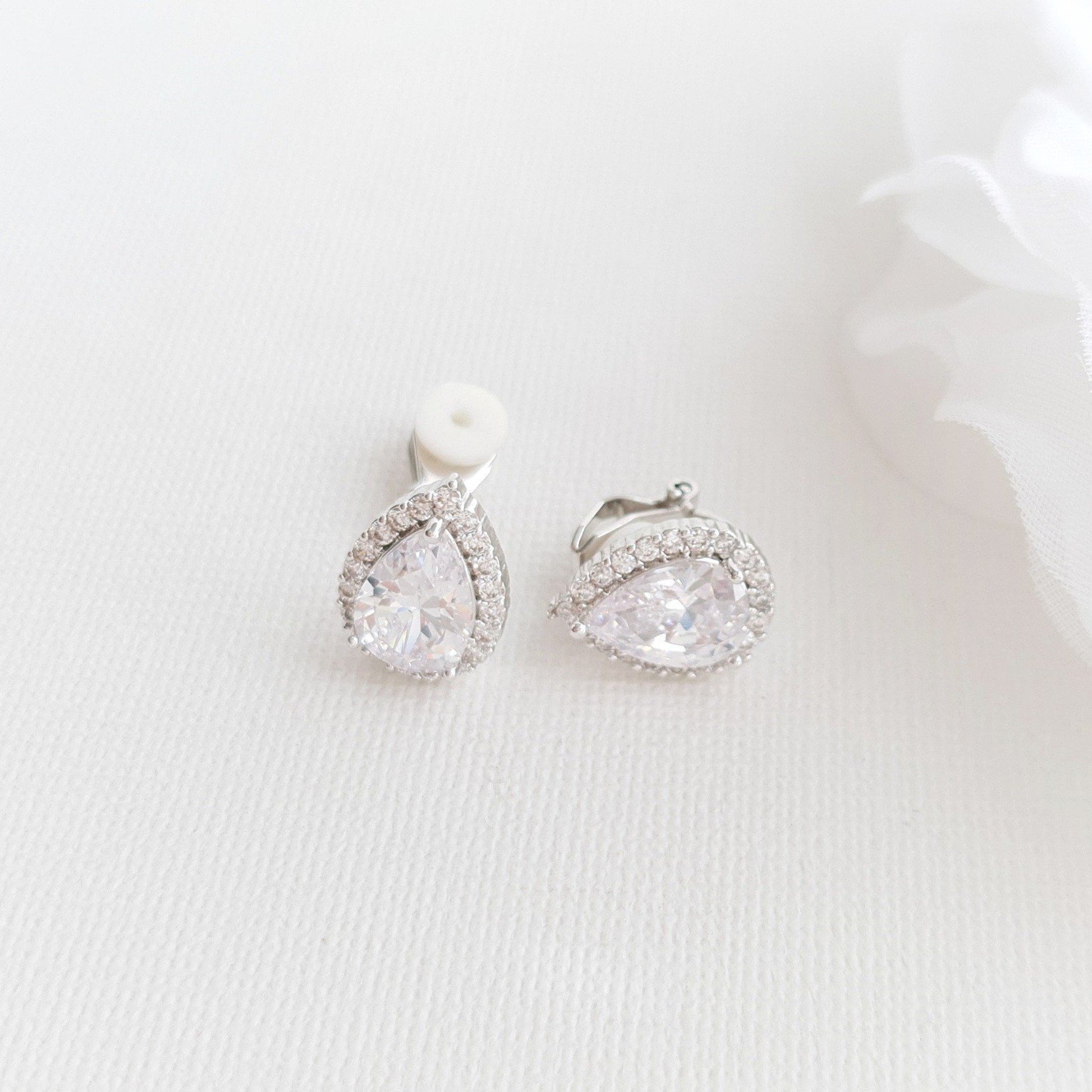 Teardrop Stud Earrings with Clip On-Emma