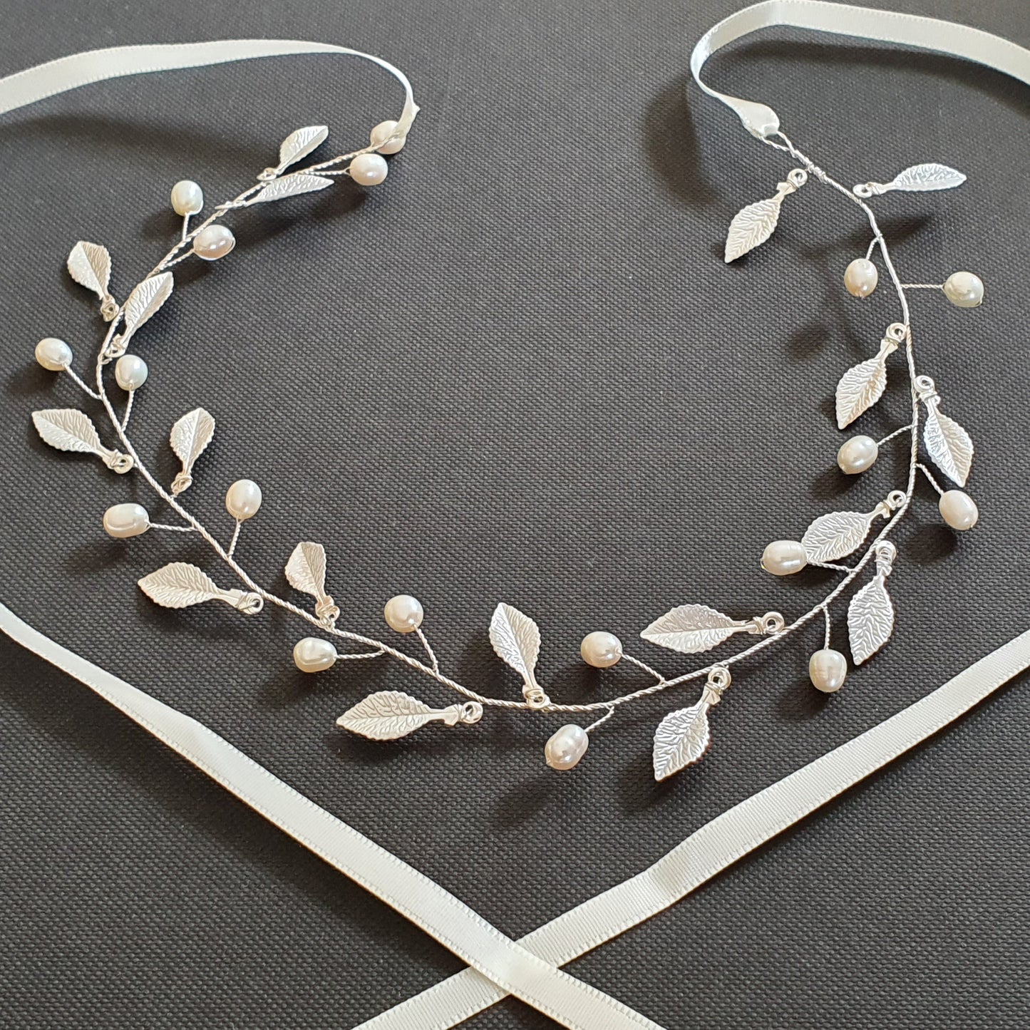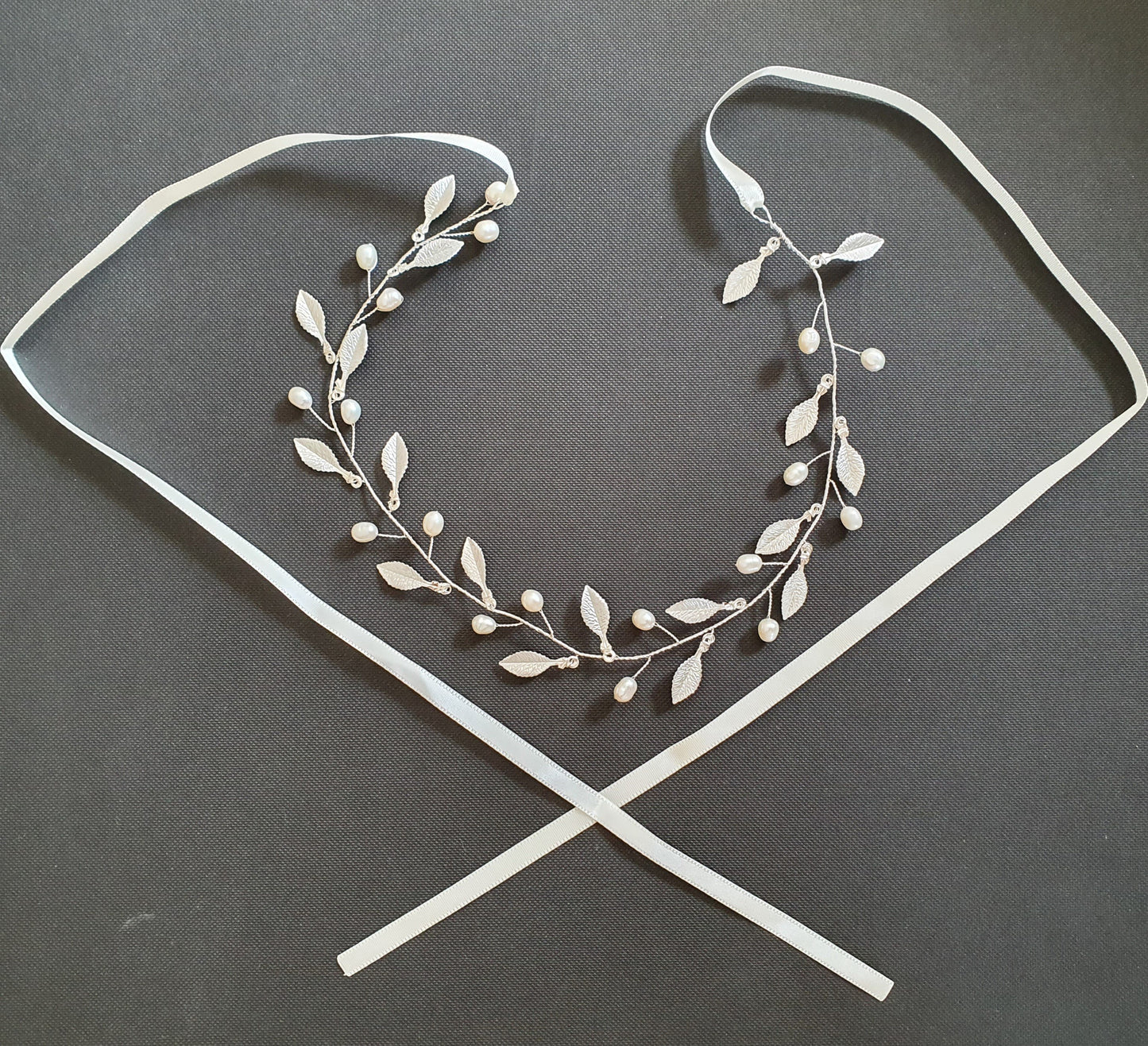 This gold leaf headpiece can be used as a bridal headband without the ribbon. The headpiece can be used with many hairstyles with long or short hairs.