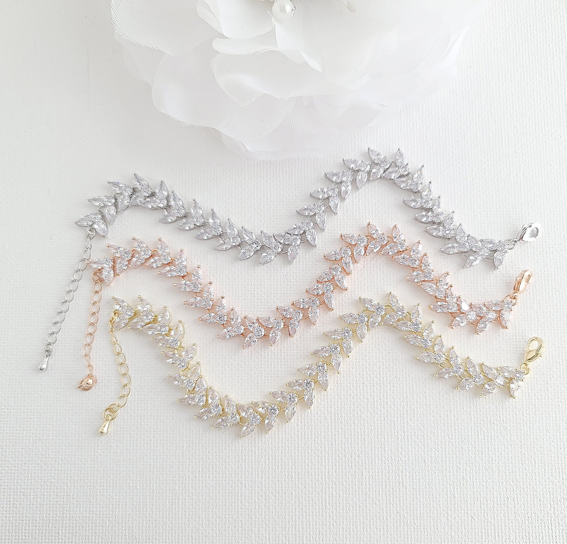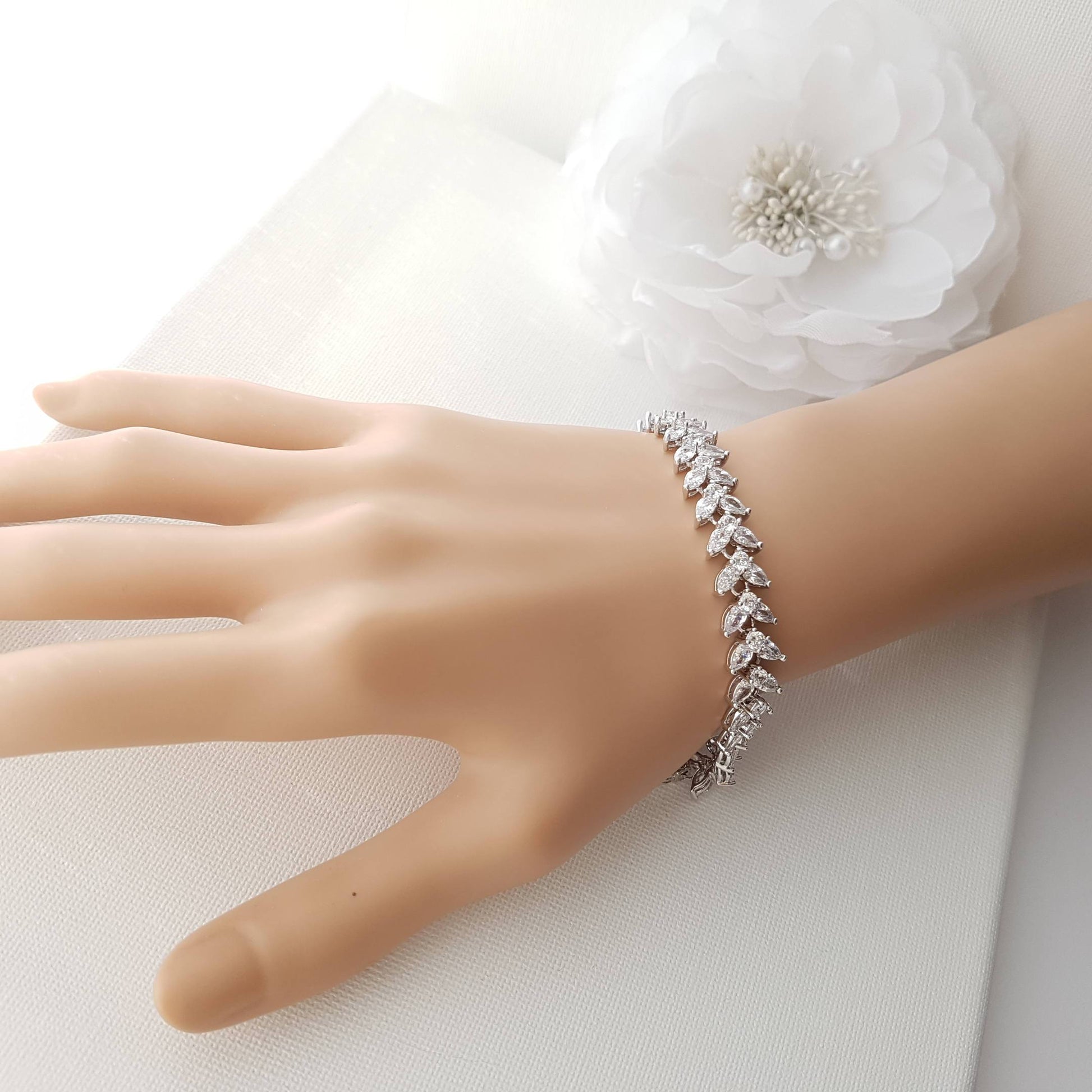 Wedding Bracelet with Marquise Cut Cubic Zirconia-Katie