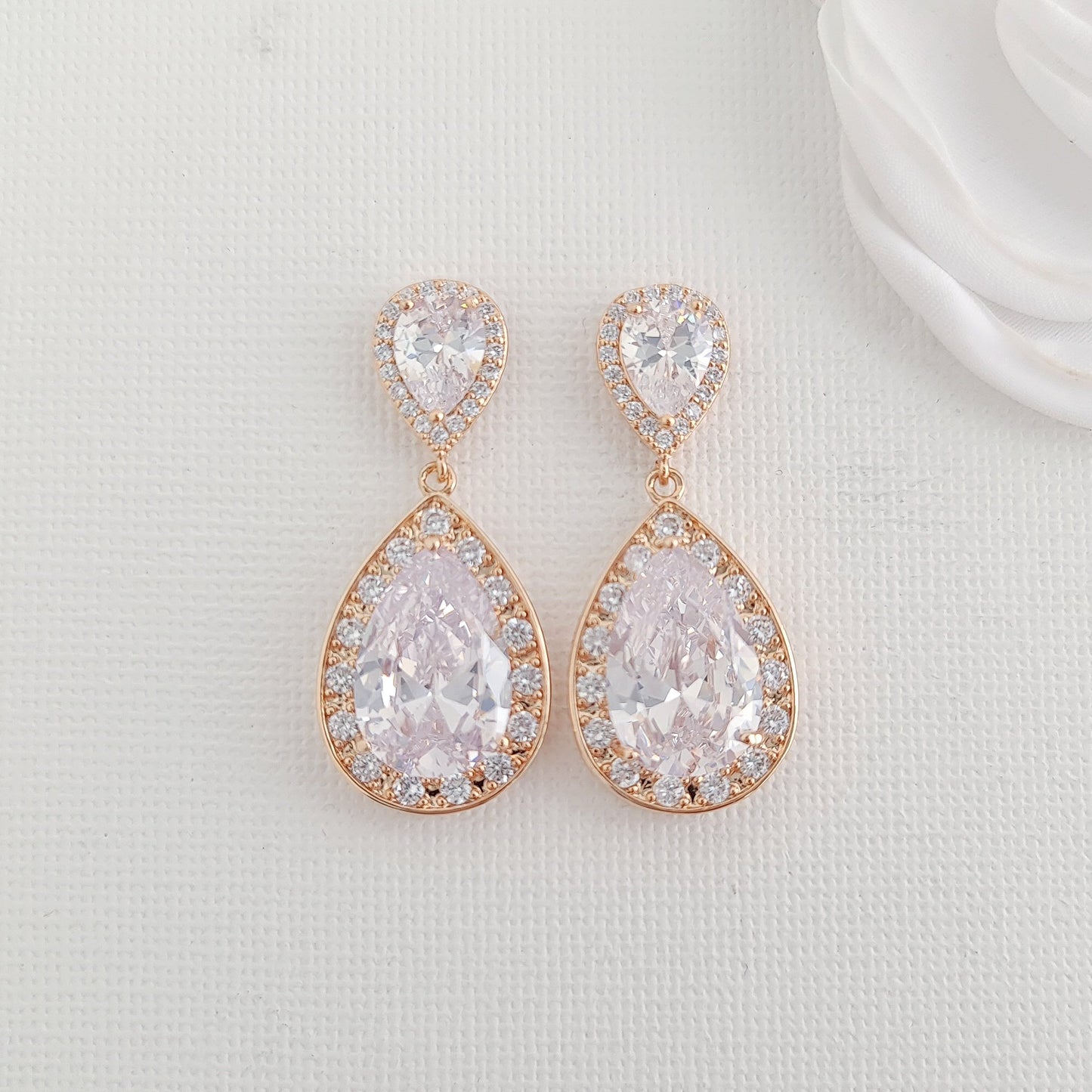 Wedding Earrings for Brides, Bridesmaids in Teardrops-Evelyn