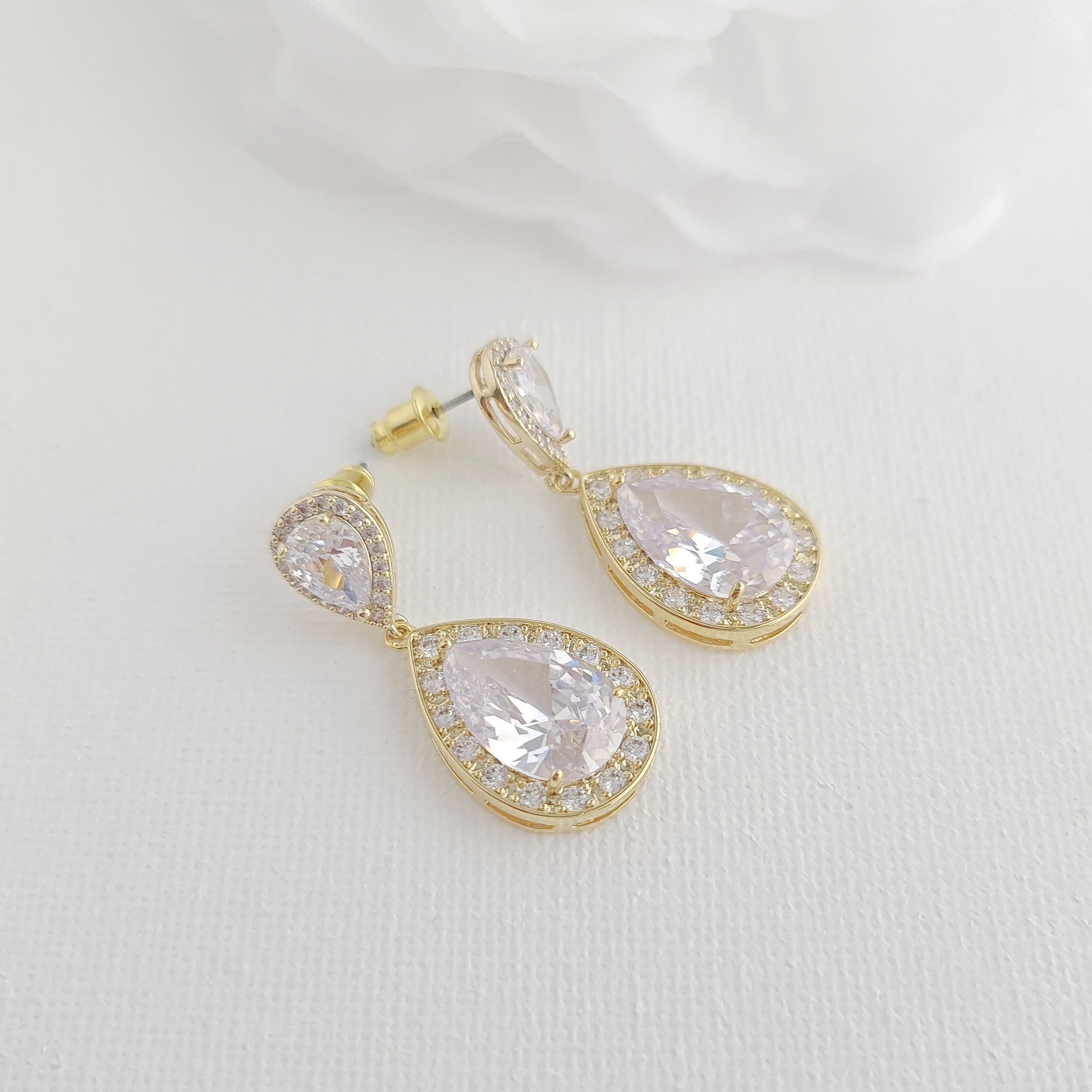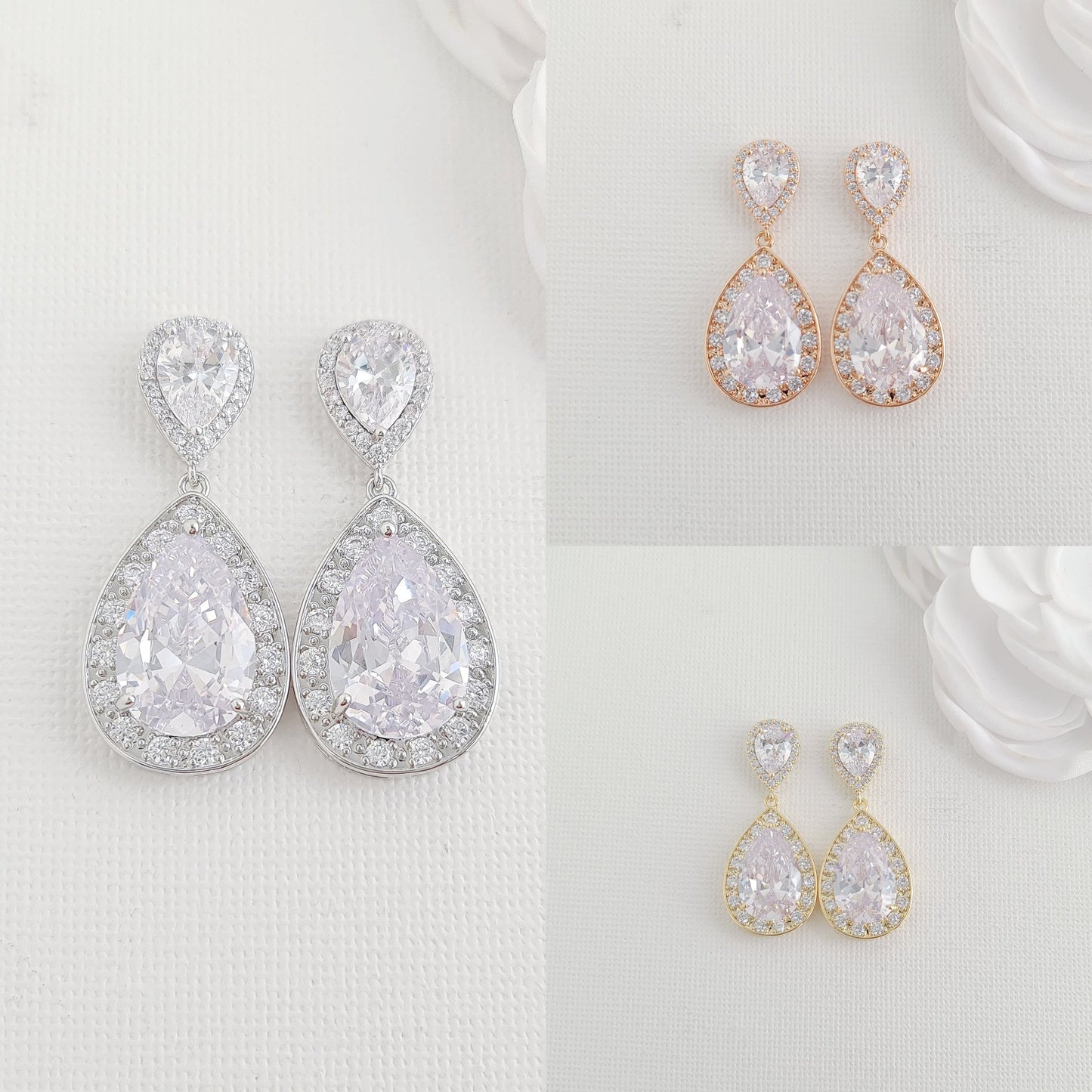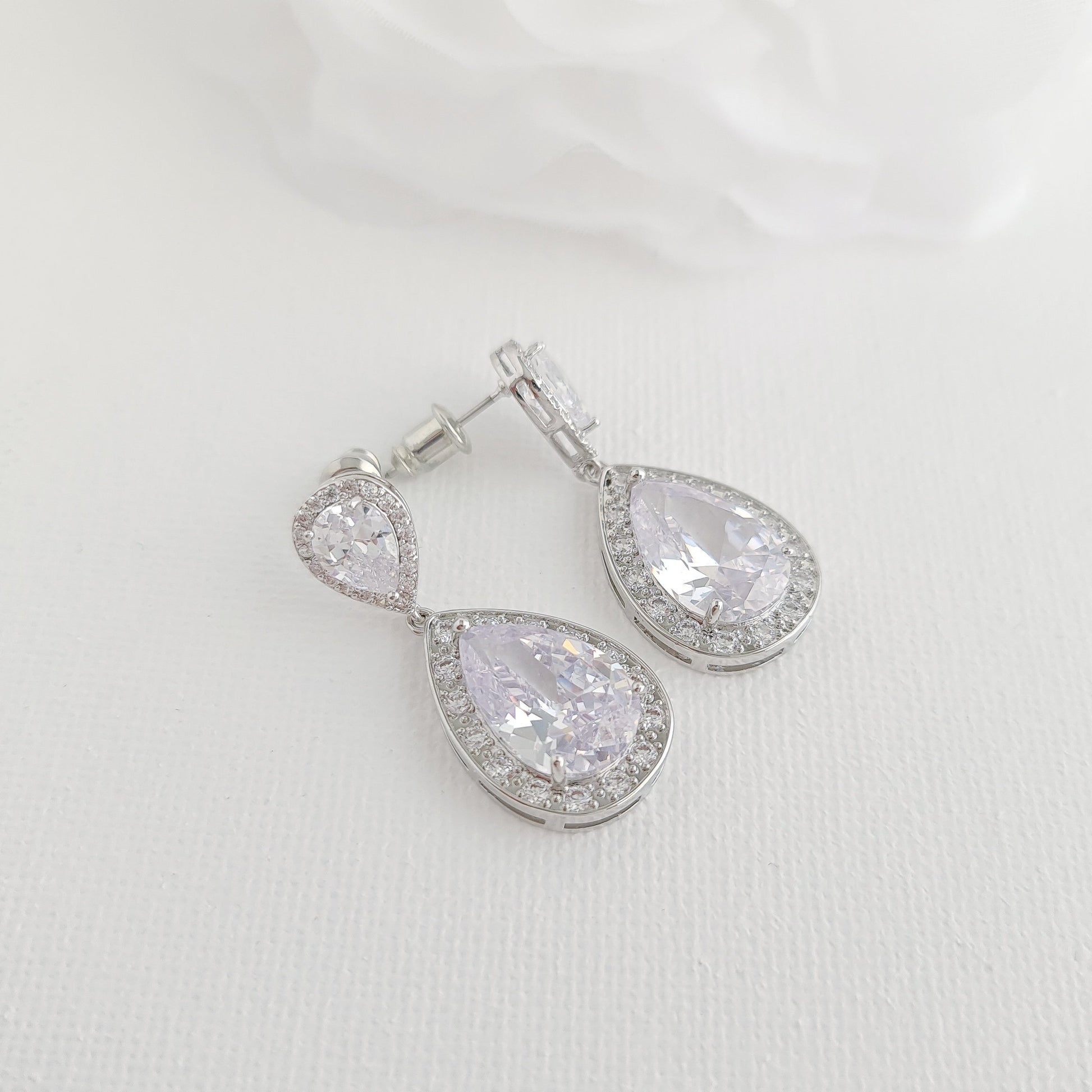 Classic Design, Teardrop Shaped CZ Wedding Earrings for Brides & Bridesmaids