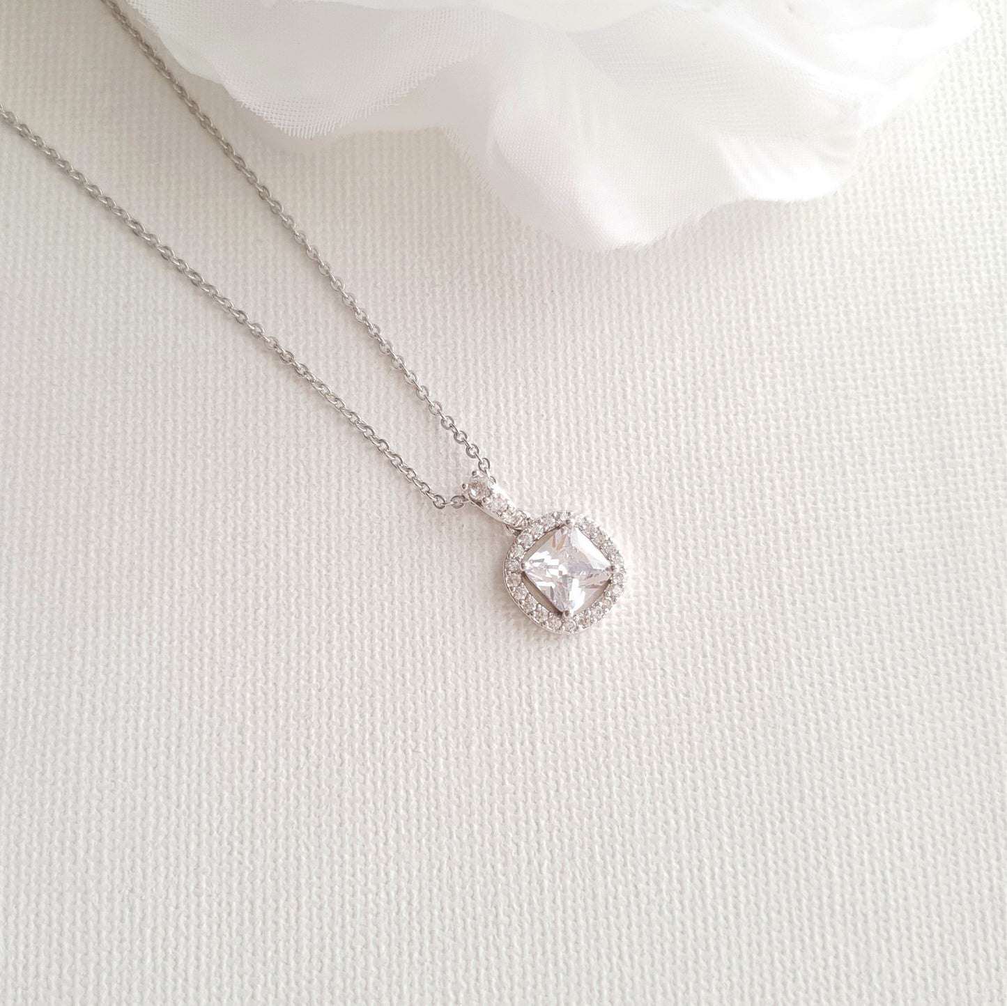 Necklace- A matching pendant necklace to the earrings with a cubic zirconia necklace bail. The necklace is available in two lengths of 16 inches and 18" inches. The necklace comes with a lobster clasp and an extension chain that can be used to adjust the length.