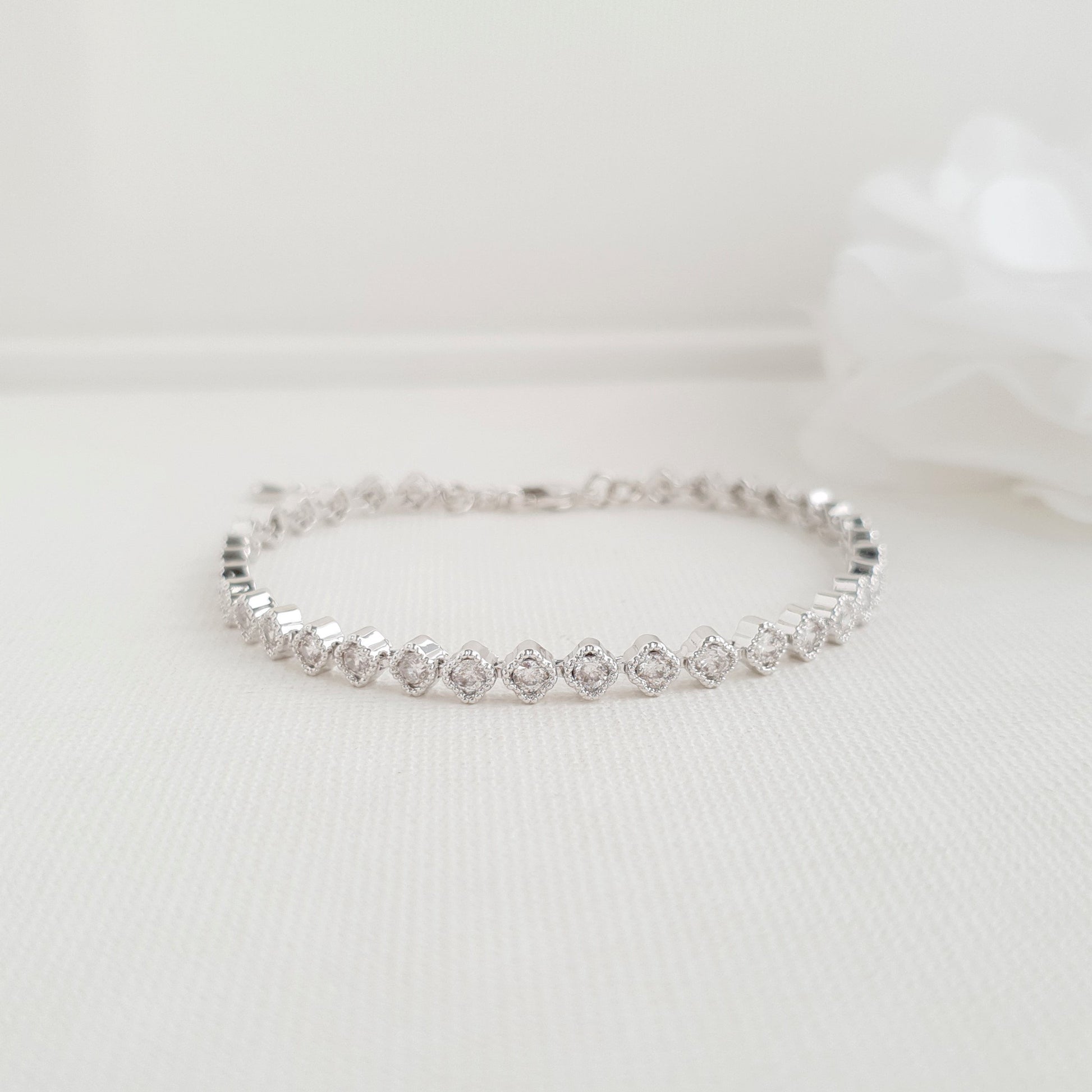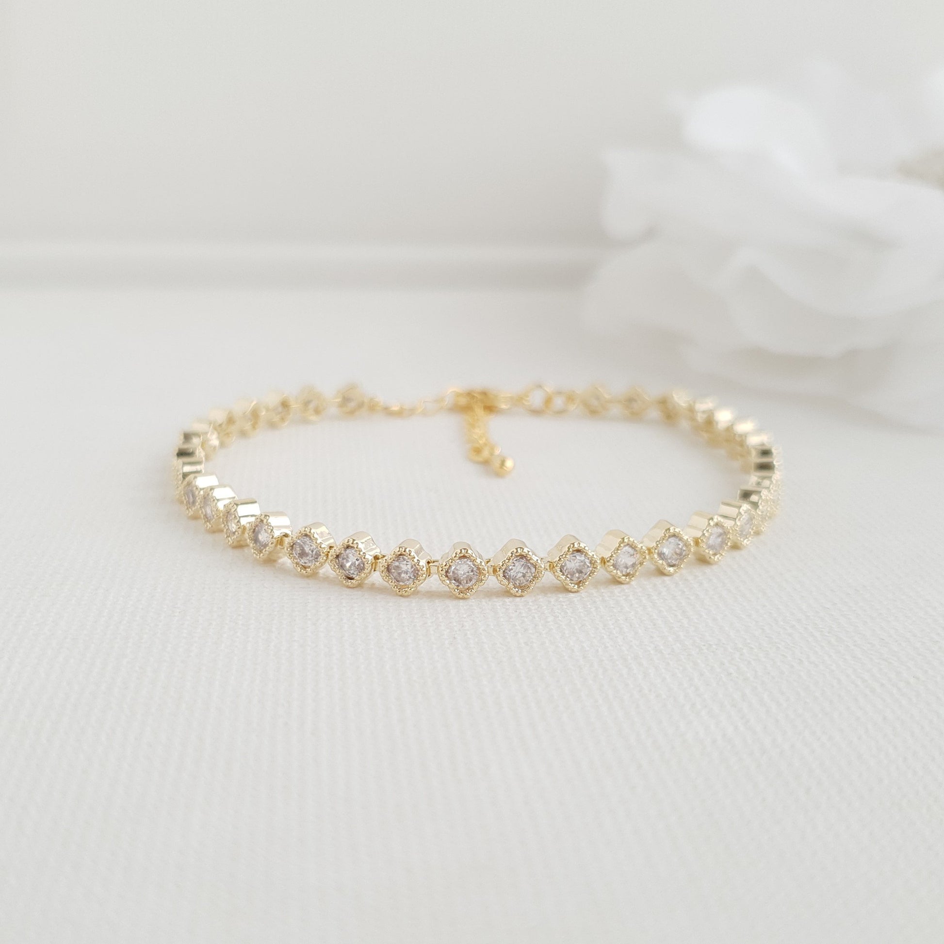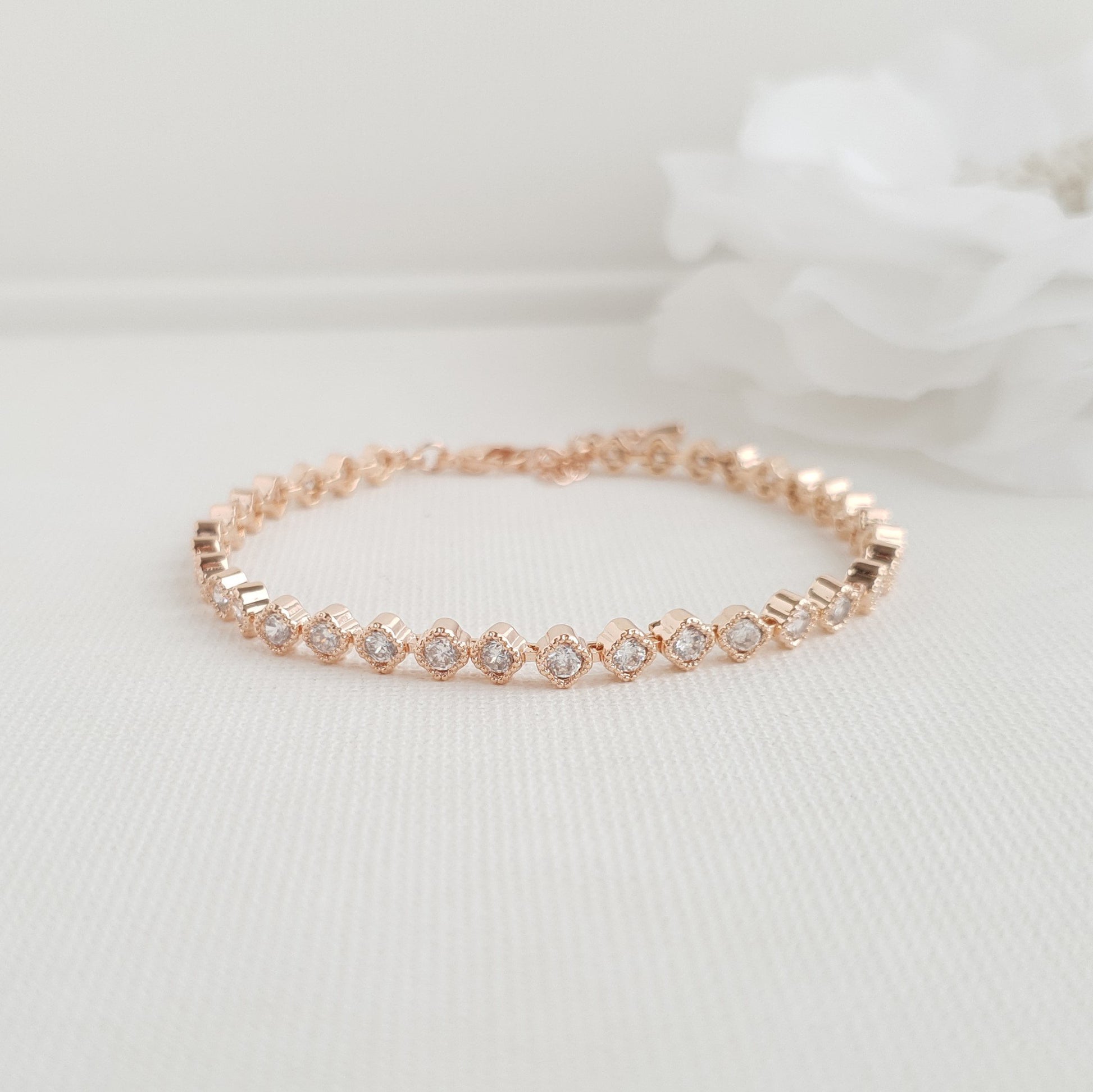 Pretty Rose Gold Tennis Bracelet, Wrist Wear that's Thin & Sparkly for Brides