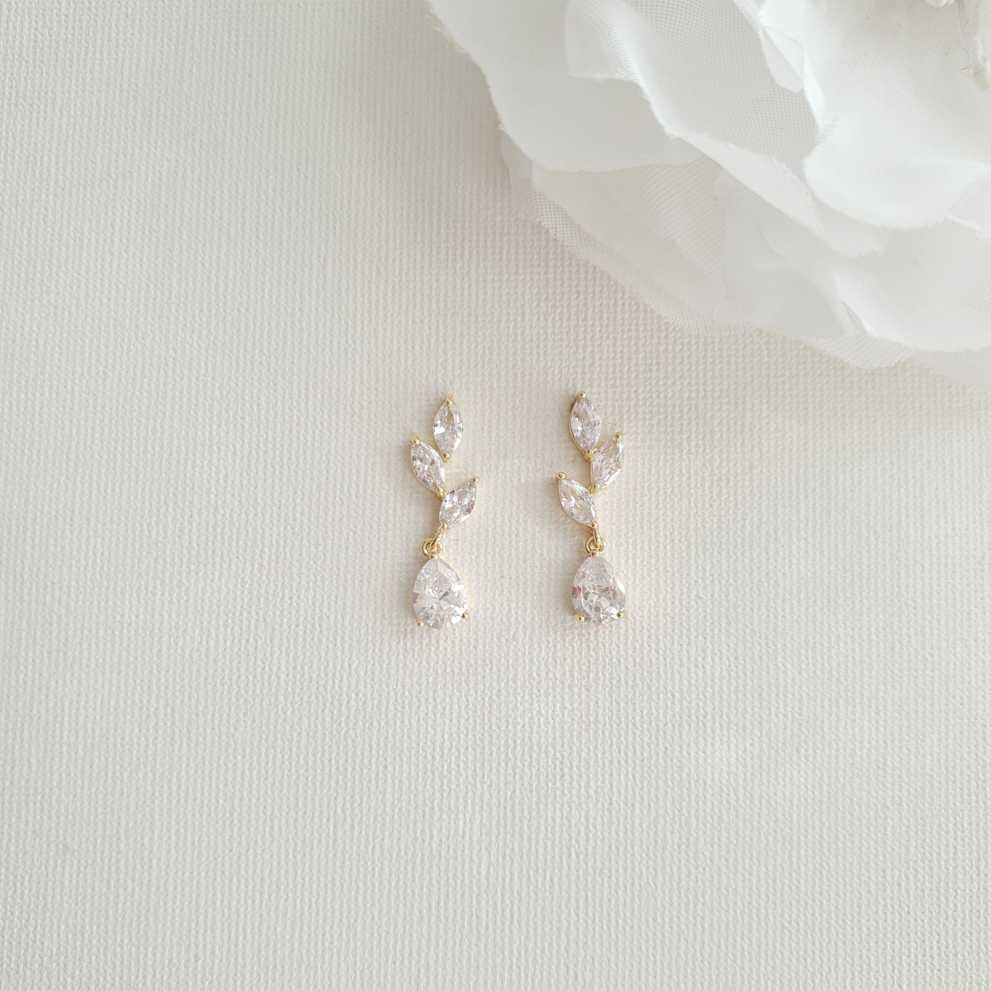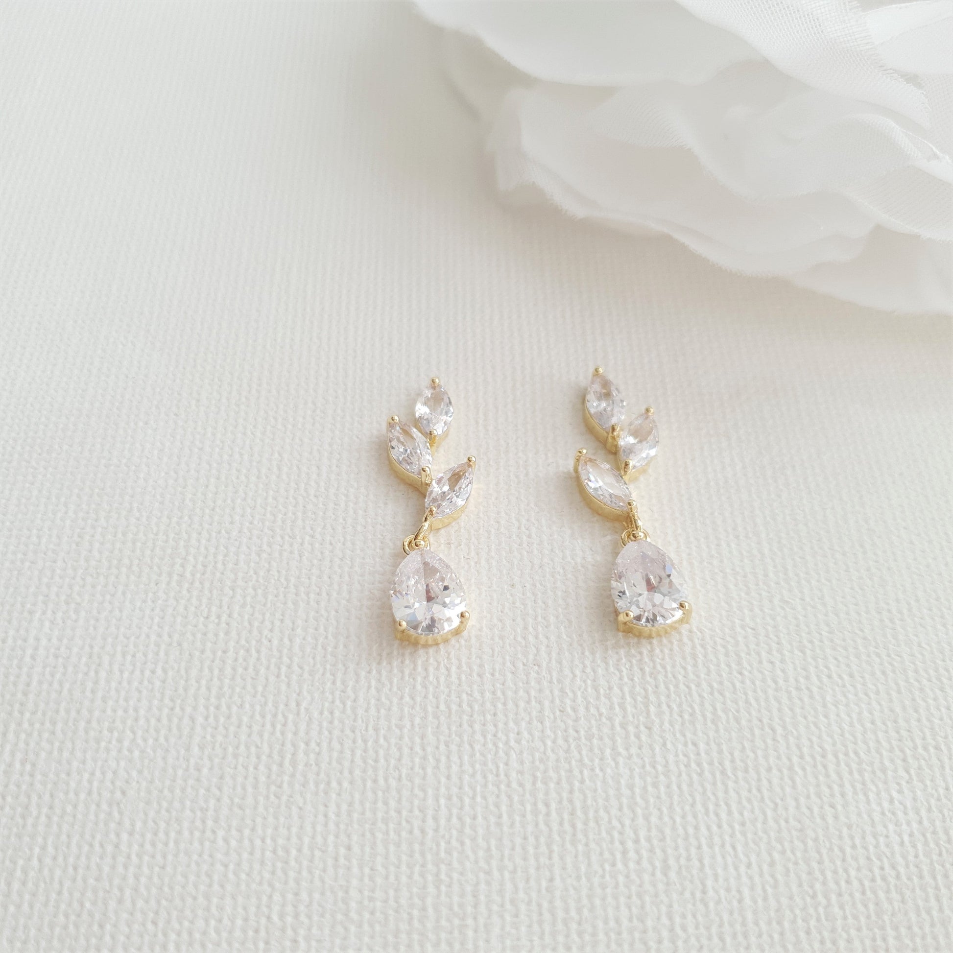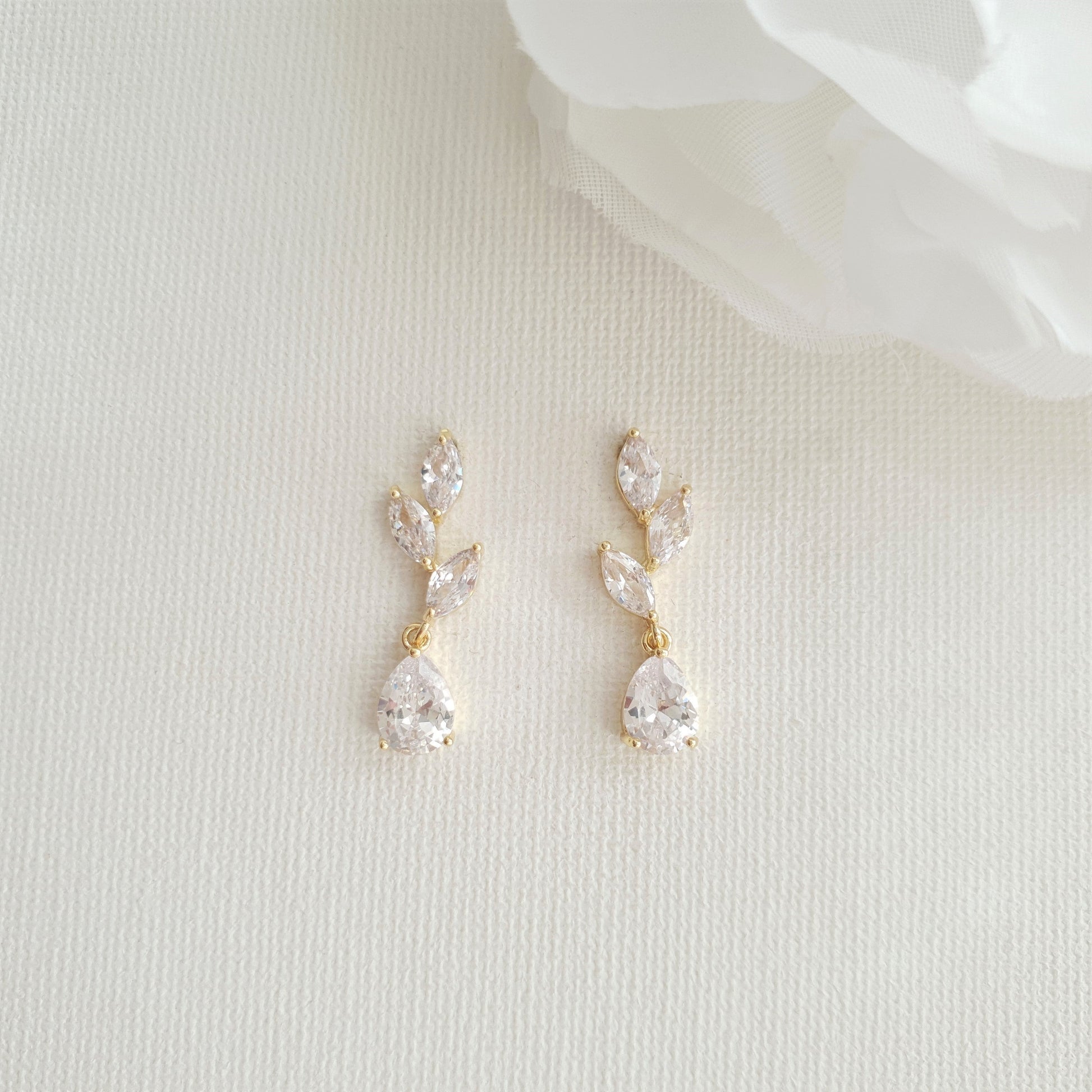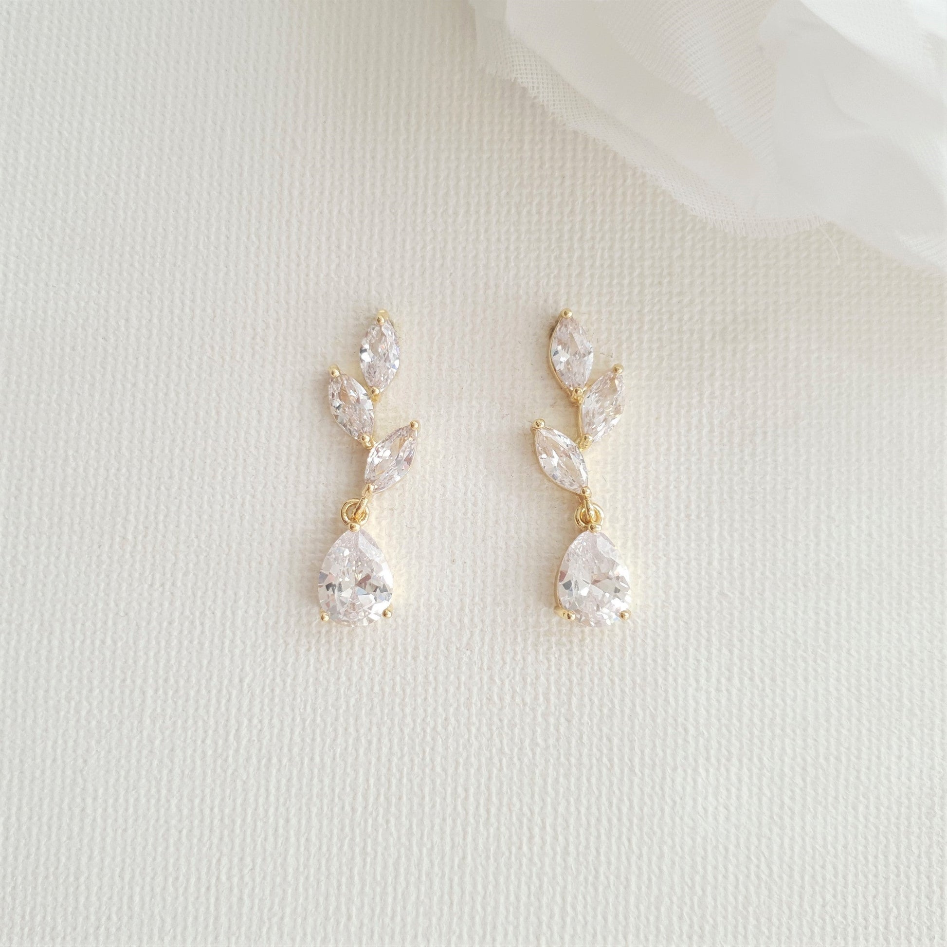 These small drop earrings are made of cubic zirconia, lightweight, comfortable and sparkly, The earrings are also available in yellow gold and silver to choose from.