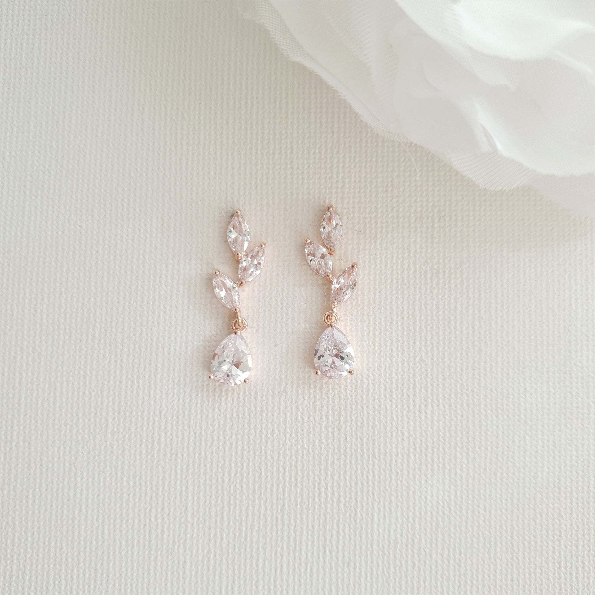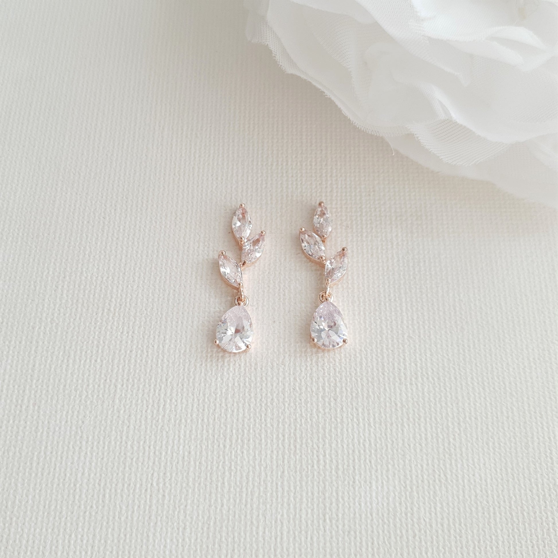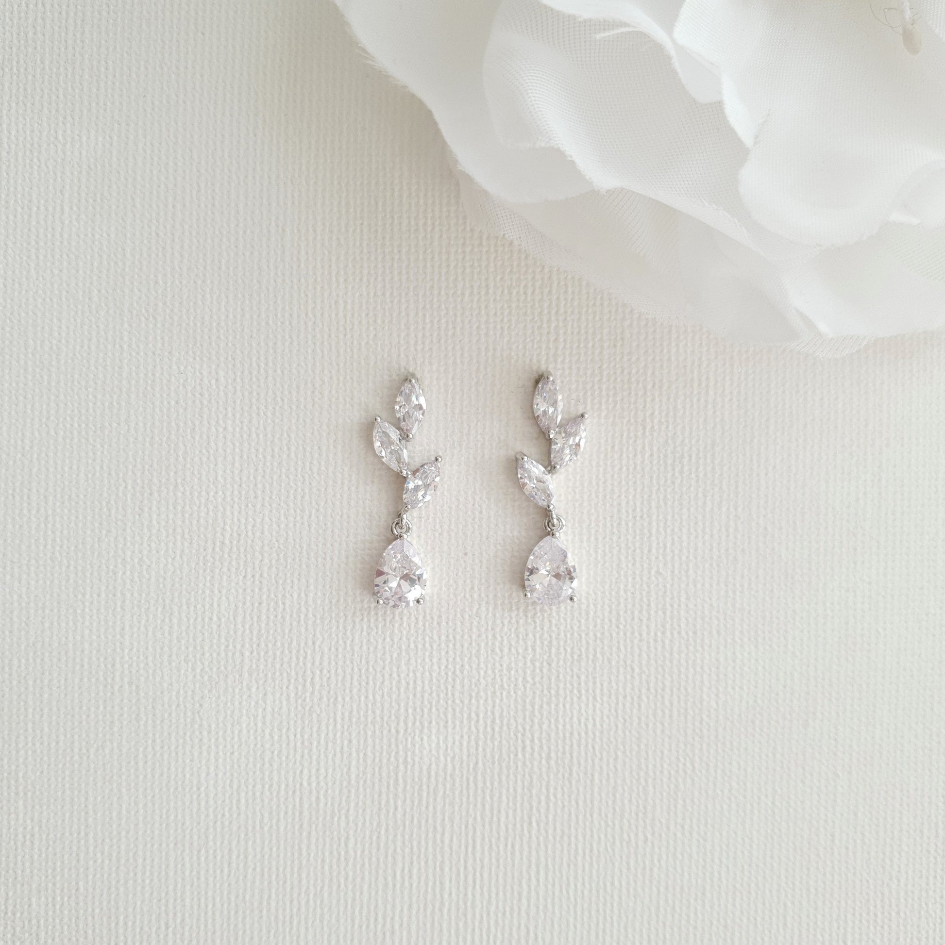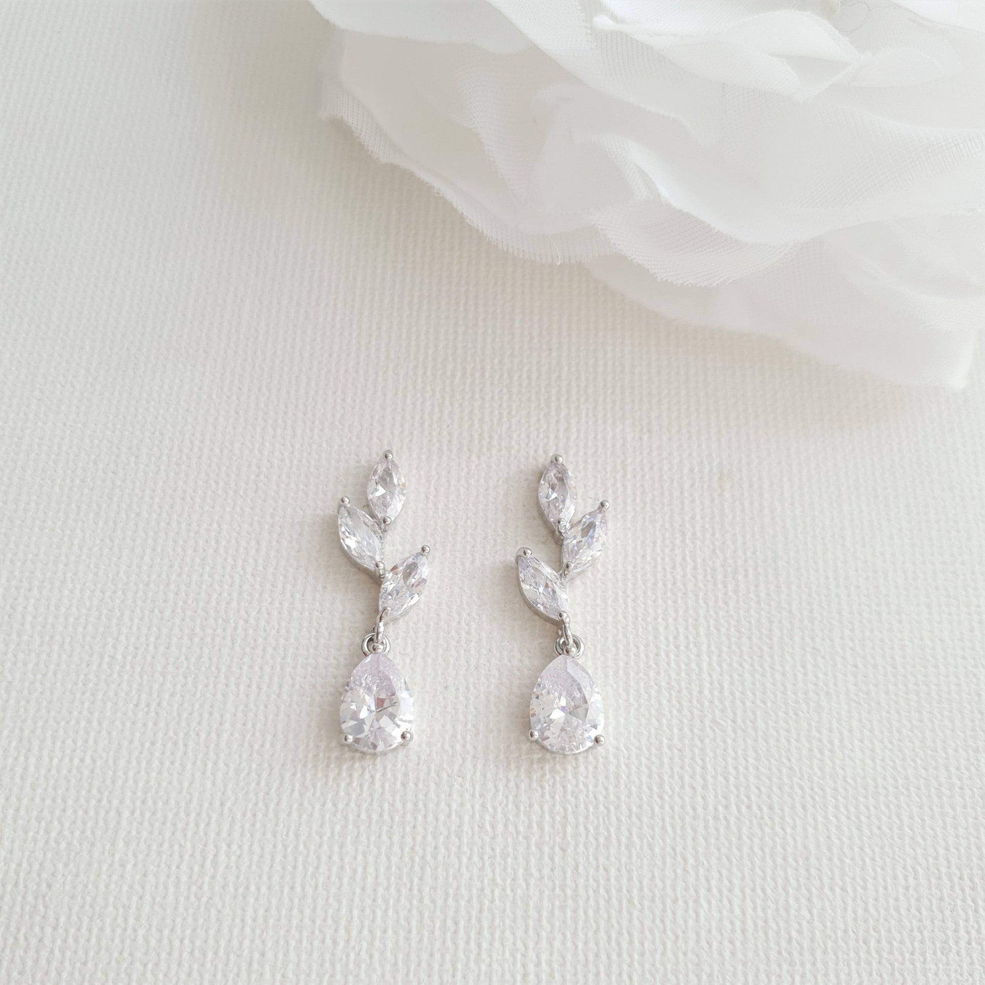 These small drop earrings are made of cubic zirconia, lightweight, comfortable and sparkly, The earrings are also available in yellow gold and silver to choose from.