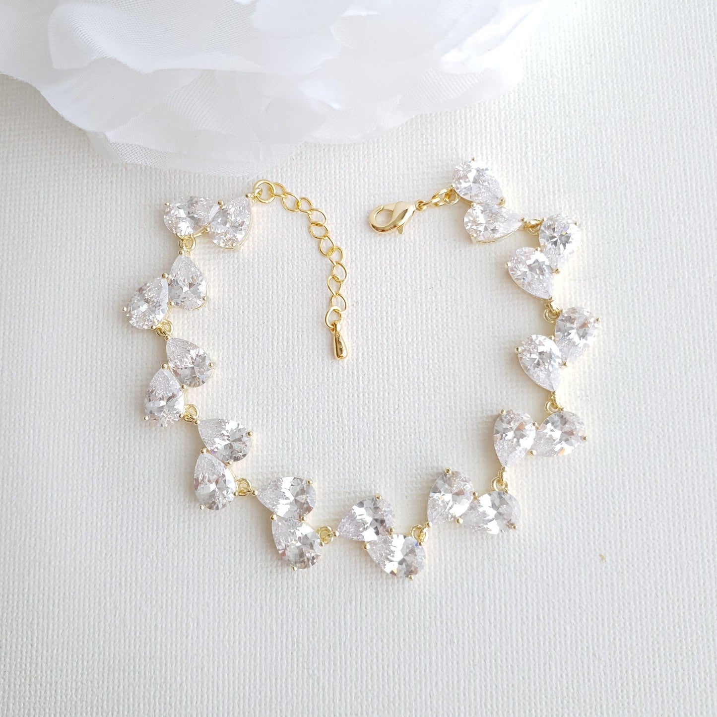 Yellow Gold Teardrop Bridal Bracelets- Clara