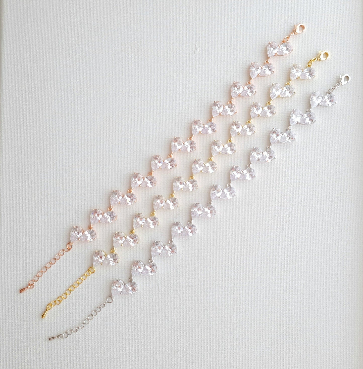 The zirconia bracelet is available in a silver/rhodium finish, rose gold finish, and 14k gold finish.